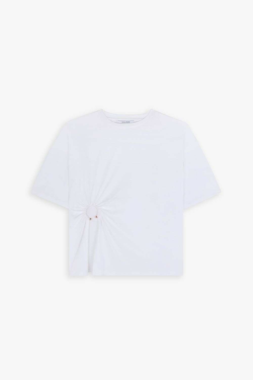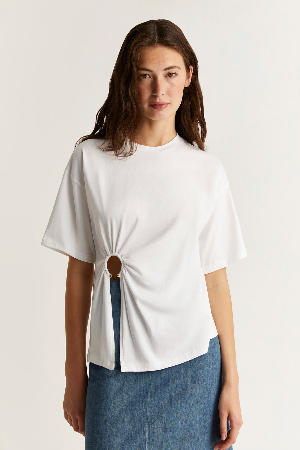 Camiseta con detalle de ojal en parte delantera y frunces.