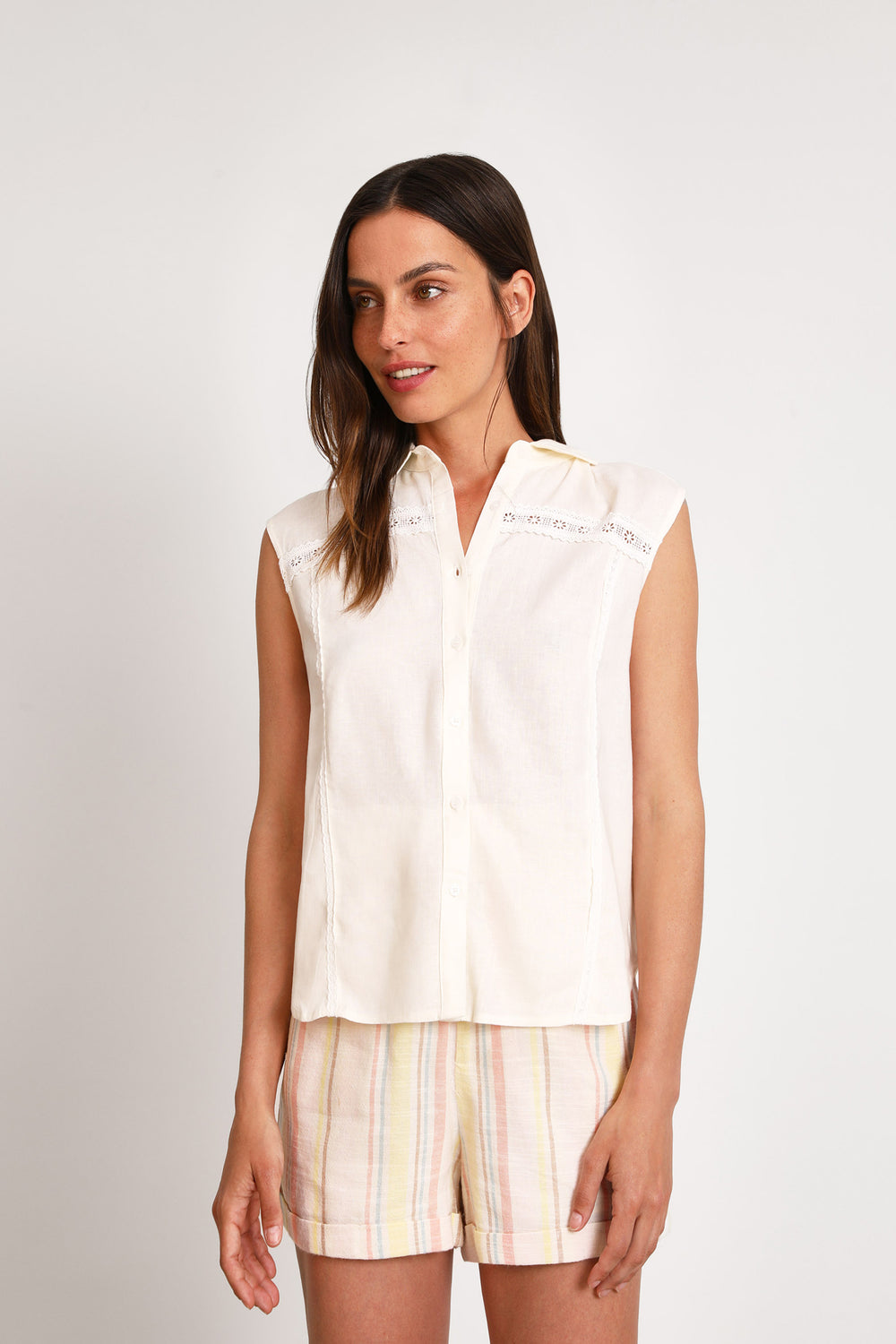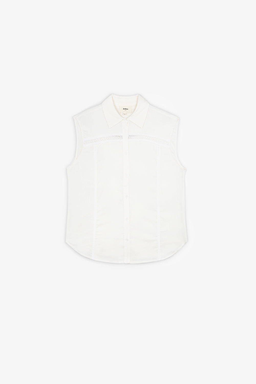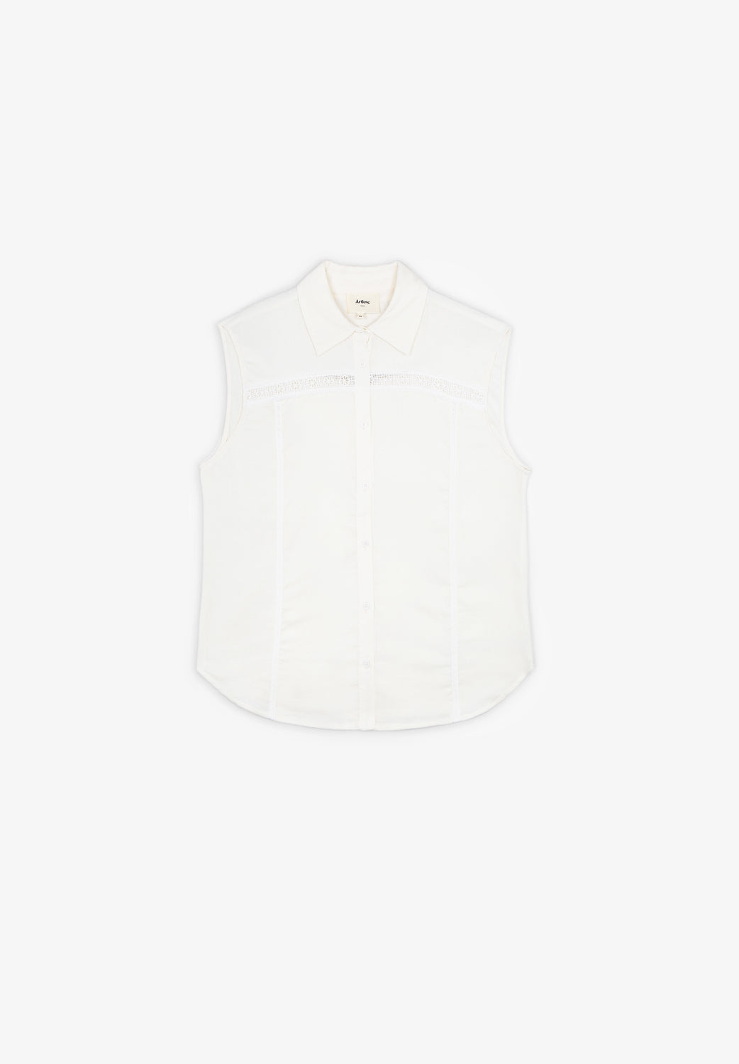 Camisa sin mangas Art Love confeccionada en tejido mezcla lino, viscosa y elastano.