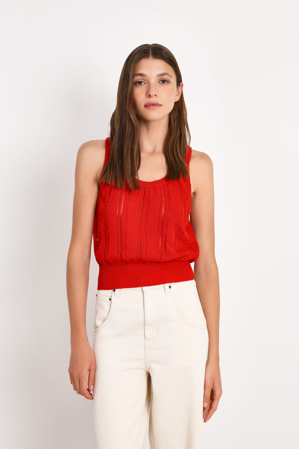 Top American Vintage confeccionado en tejido mezcla lino, algodón y fibras de poliamida.