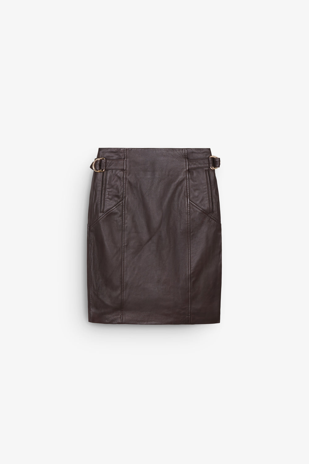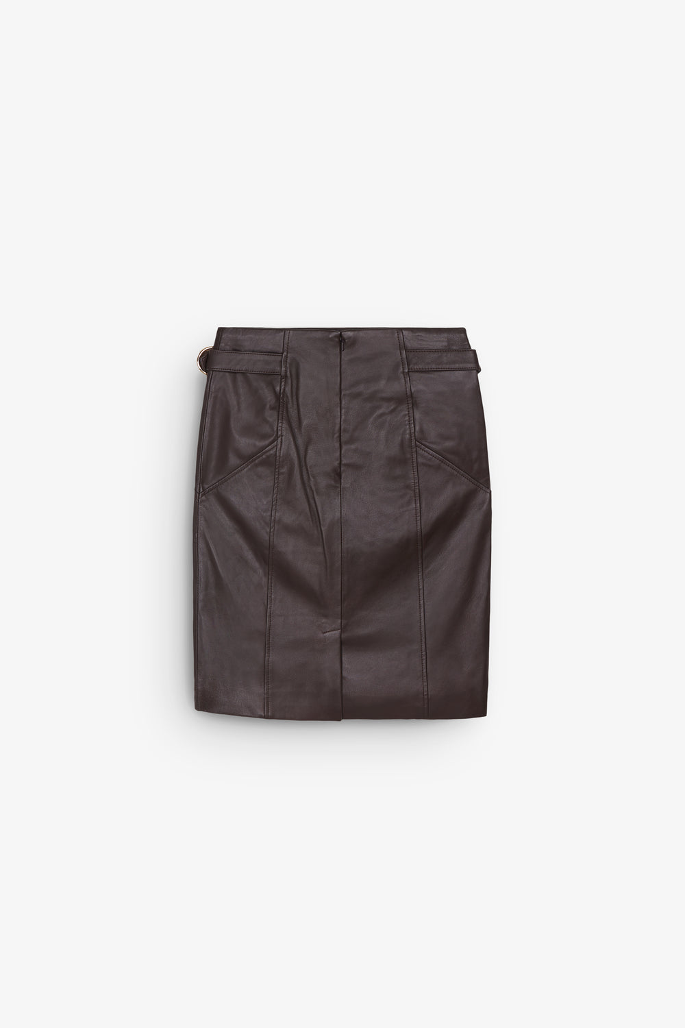 Falda midi Bash confeccionada en tejido 100% cuero.