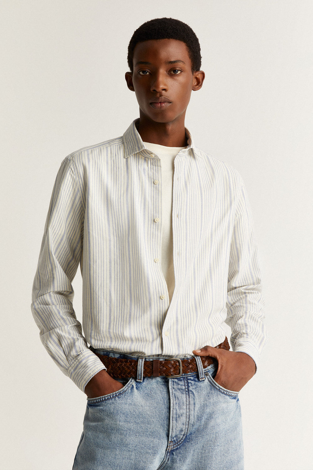 Camisa de rayas con detalle de calavera bordada a contraste en tapeta.