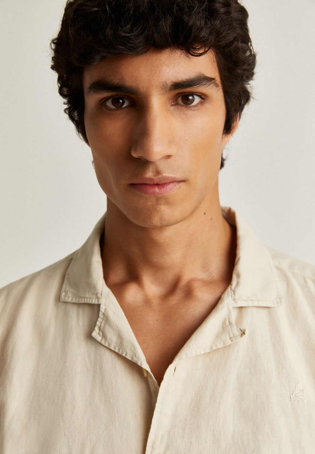 Camisa con calavera bordada a tono en pecho.