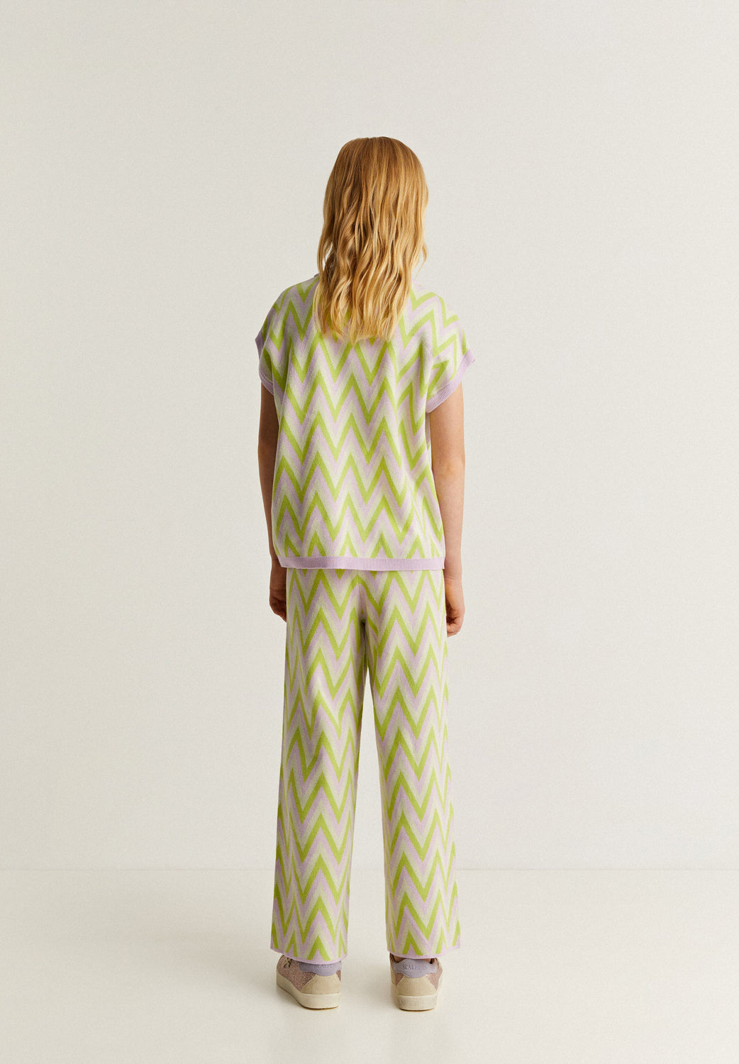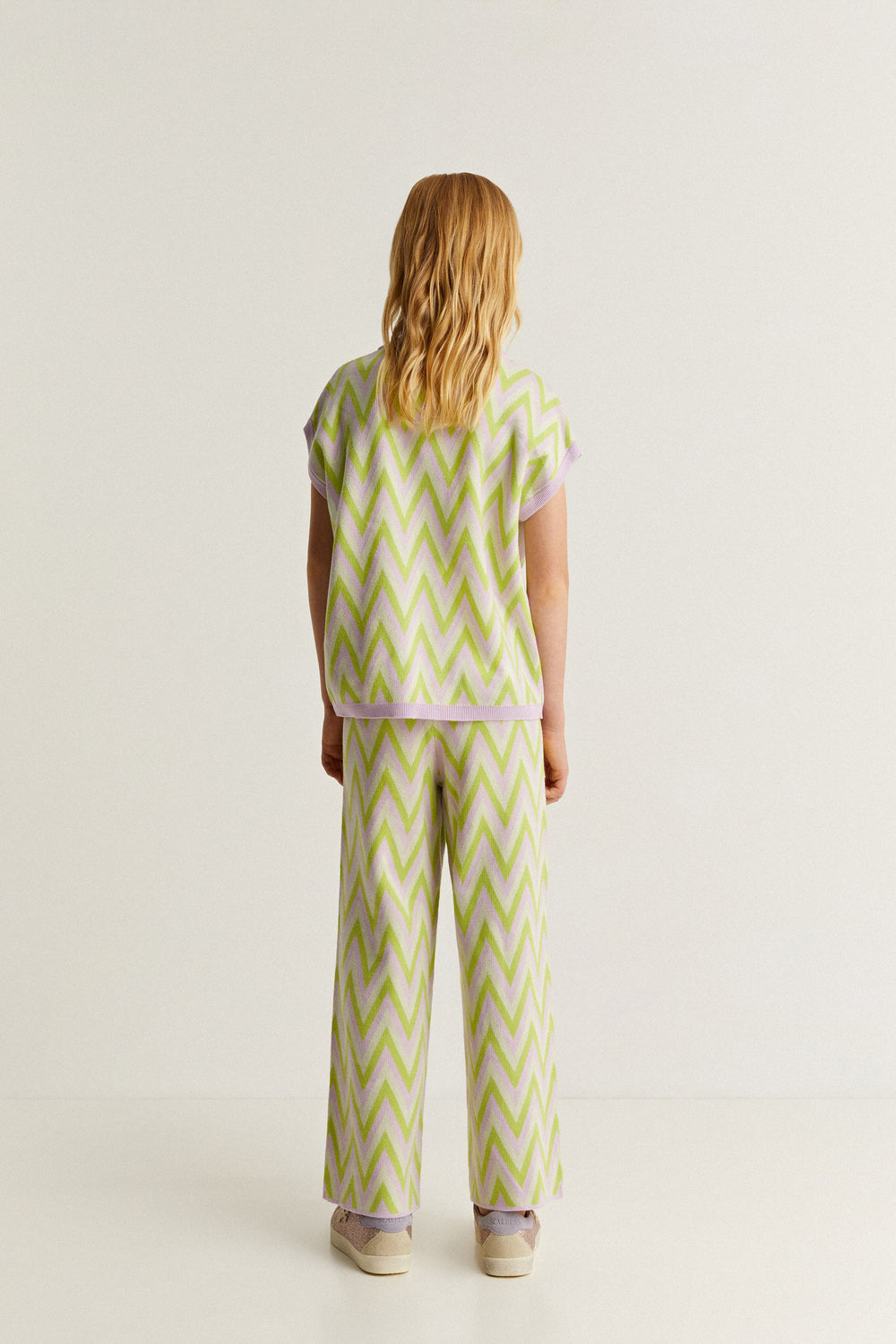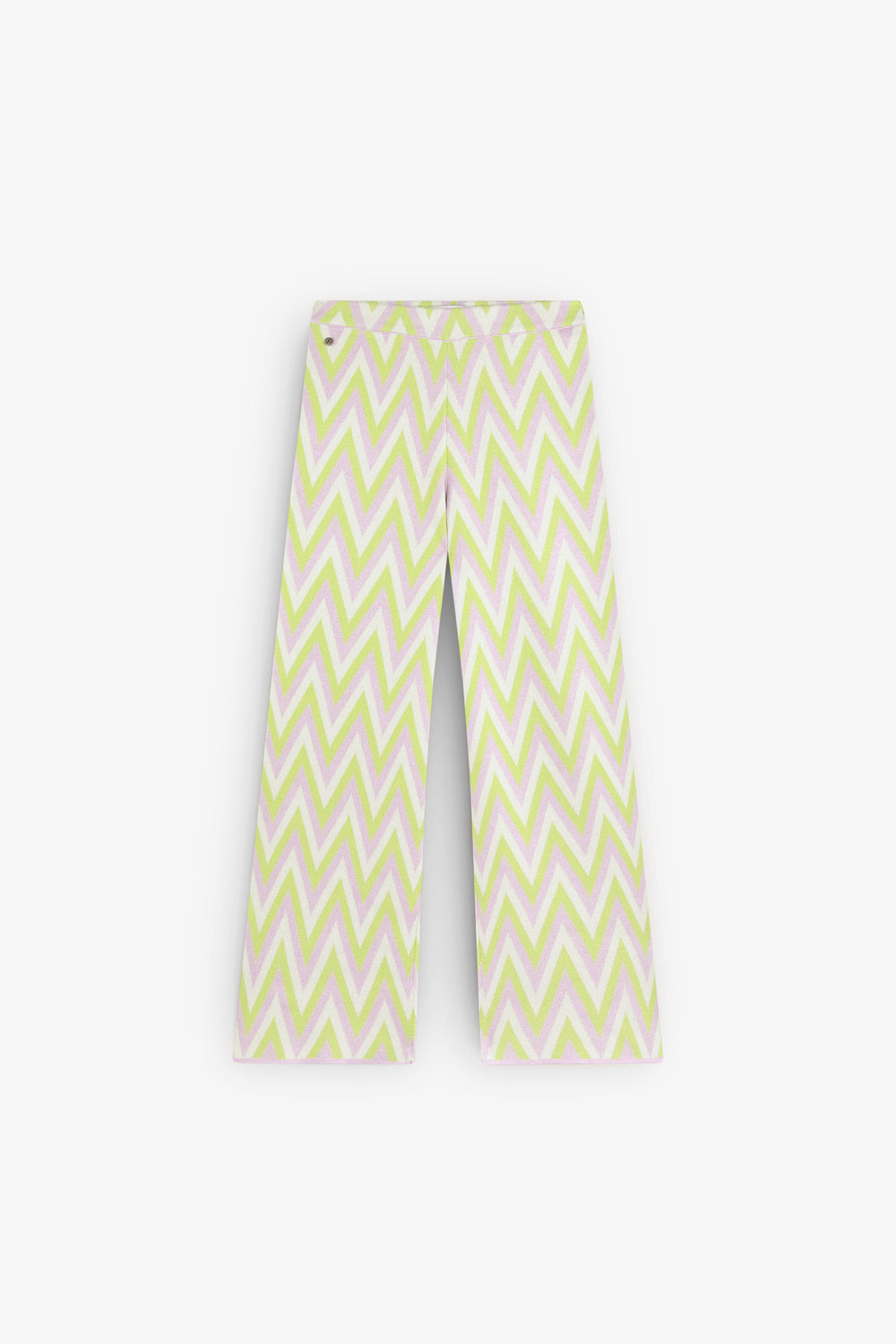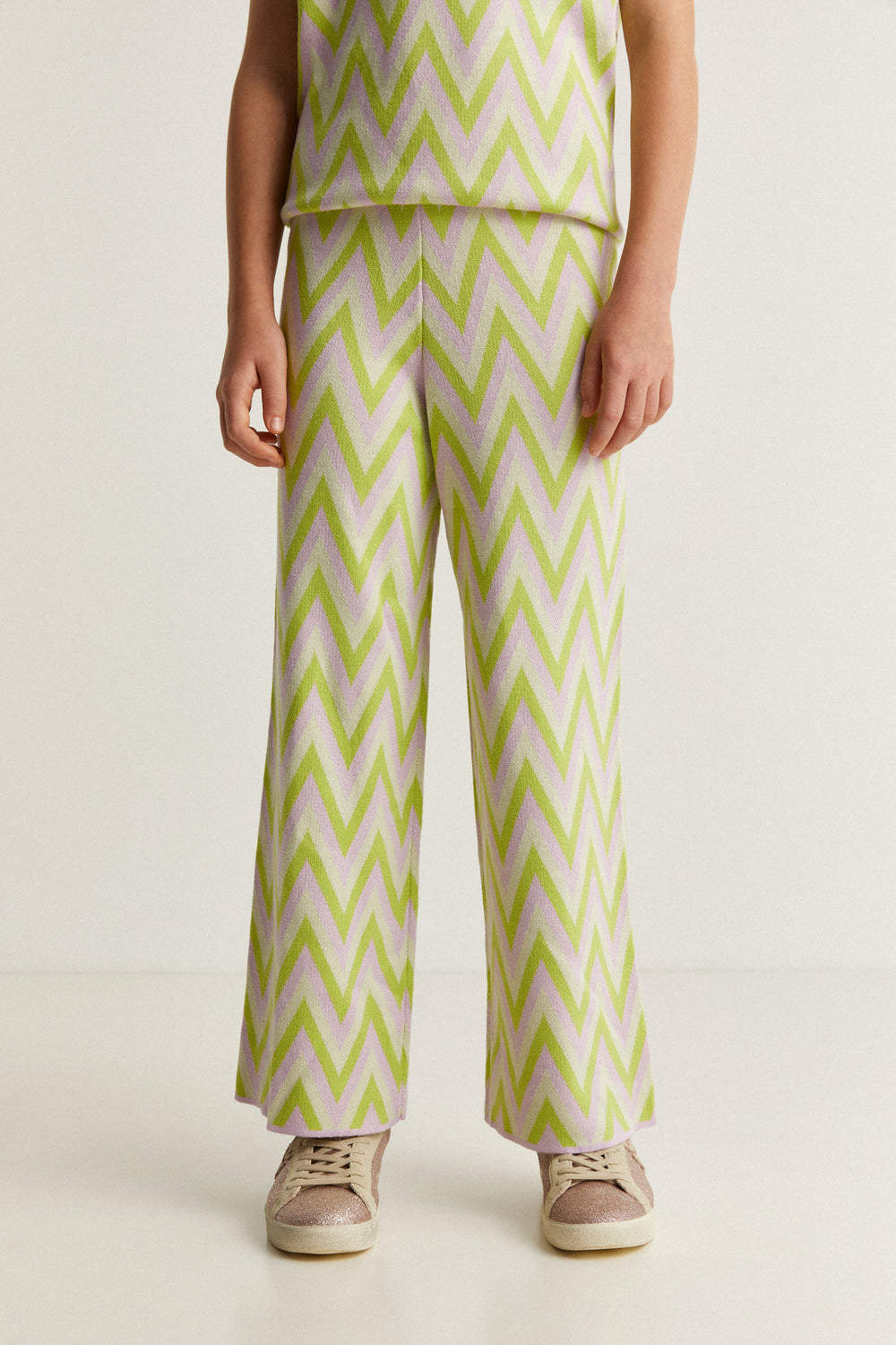 Pantalón de punto con estampado zigzag. Confeccionado en mezcla de algodón. Wide leg. Cinturilla elástica.