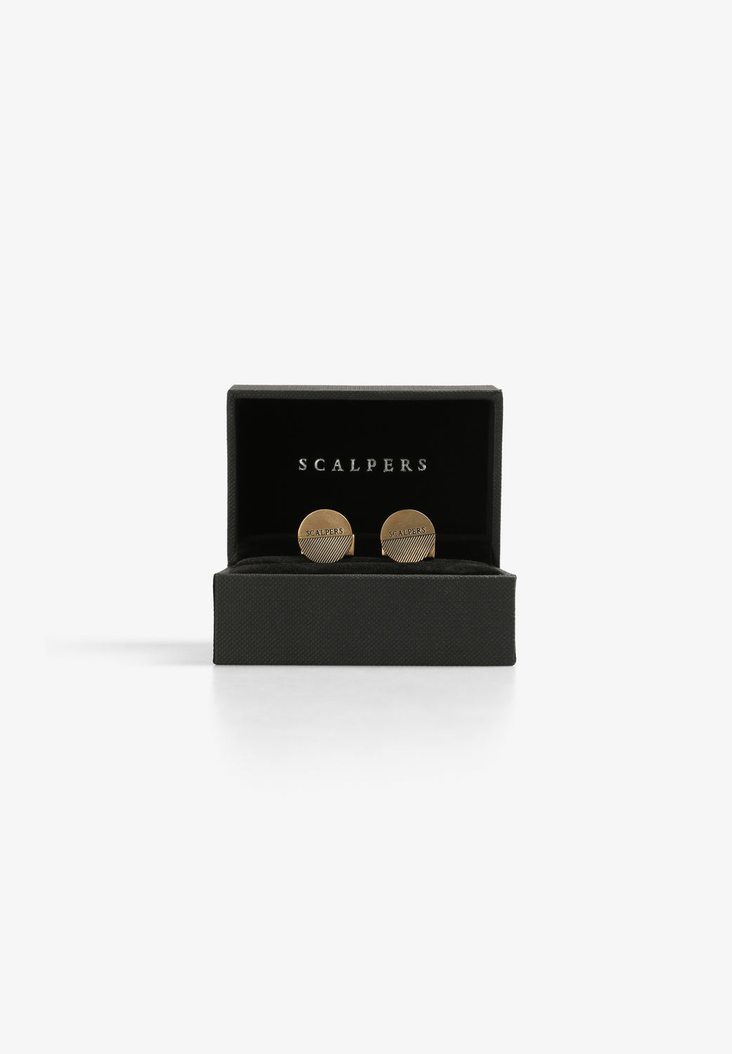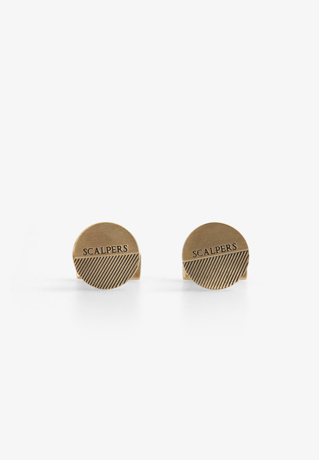 Gemelos redondos. Fabricados en metal. Logo grabado.