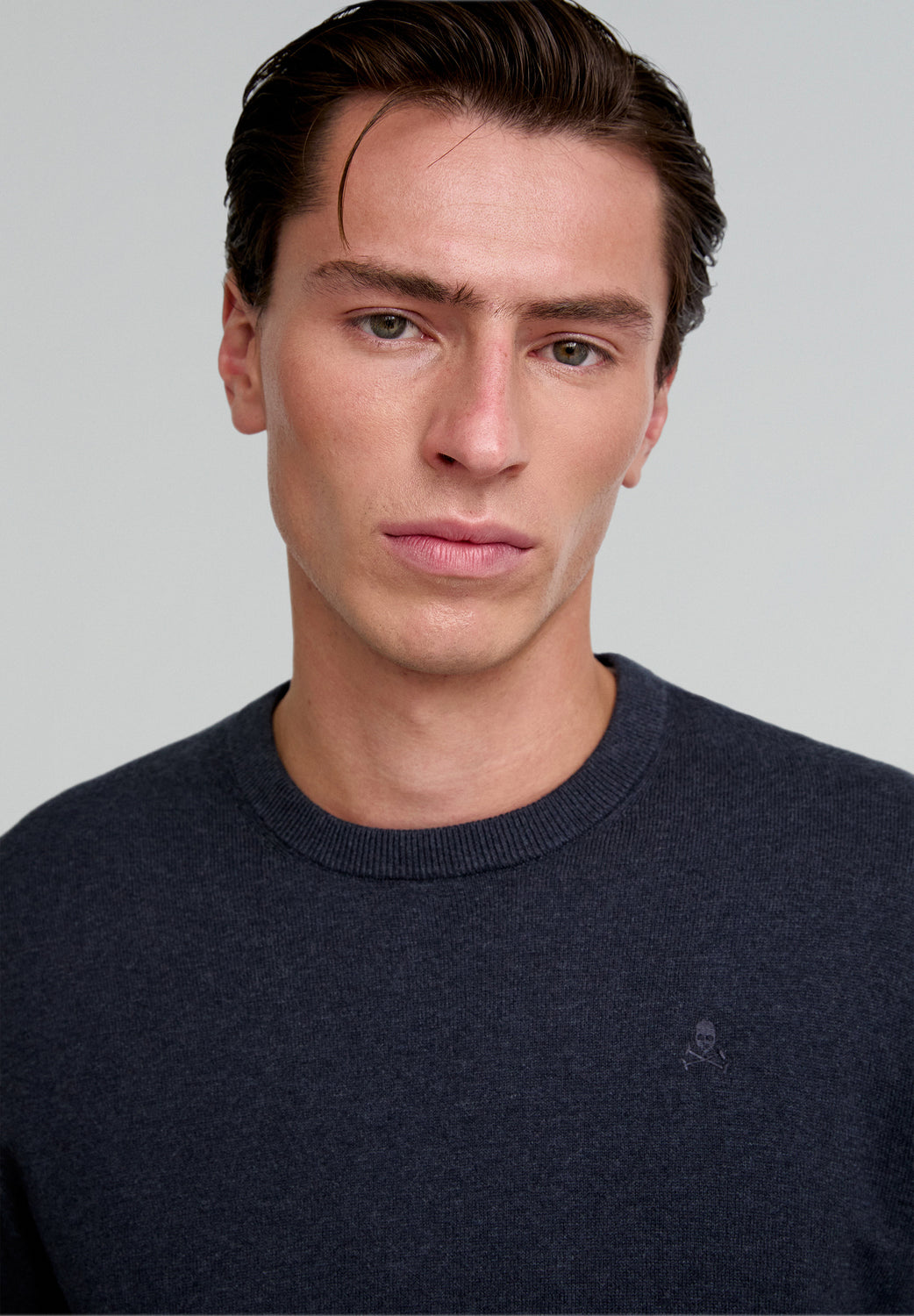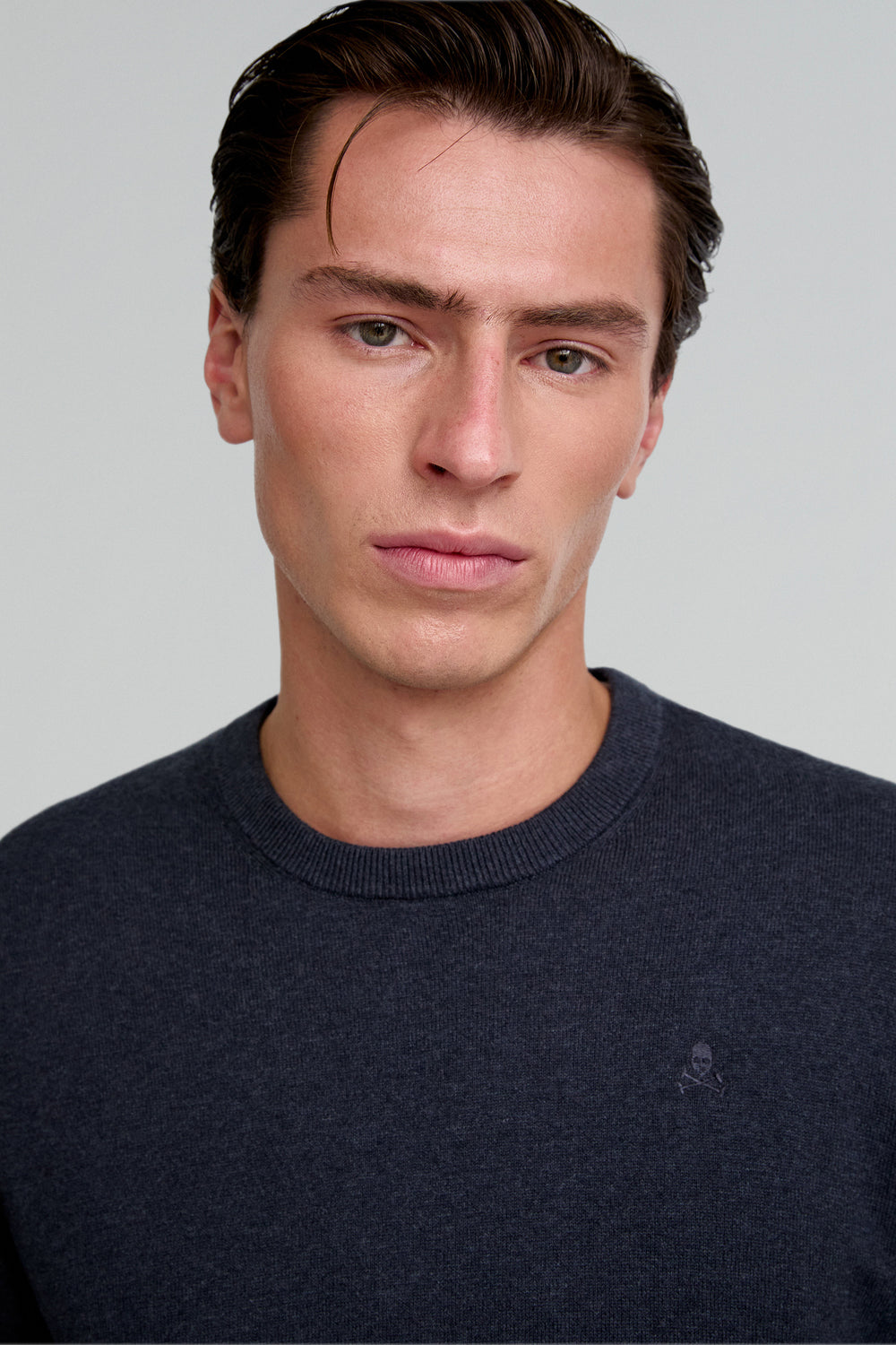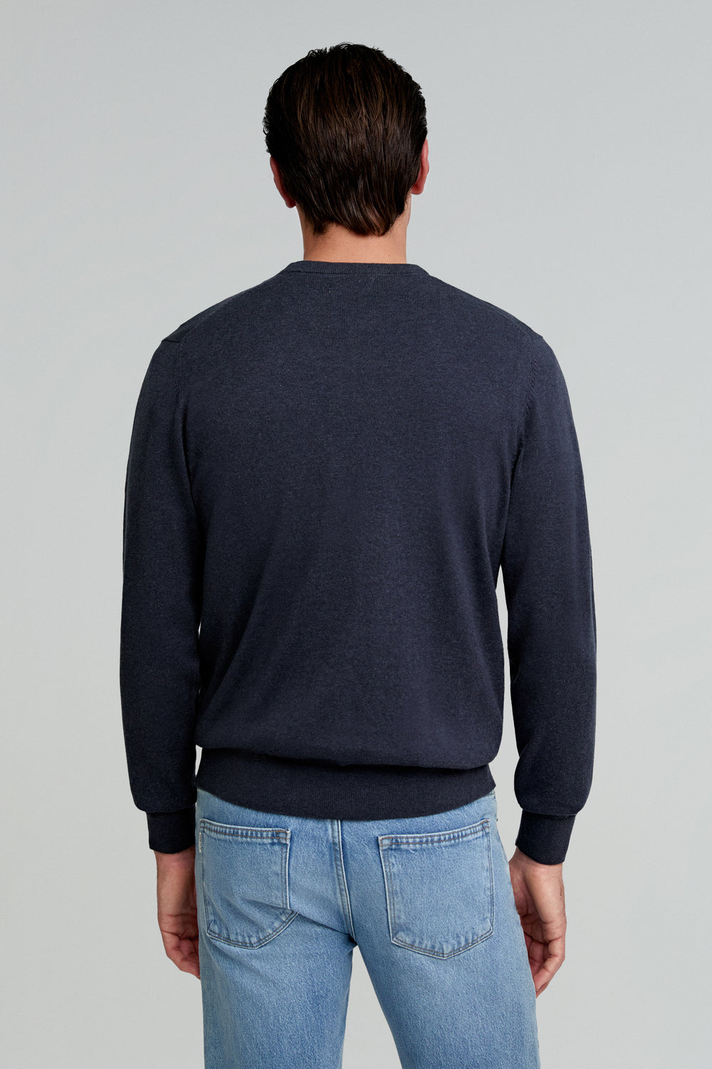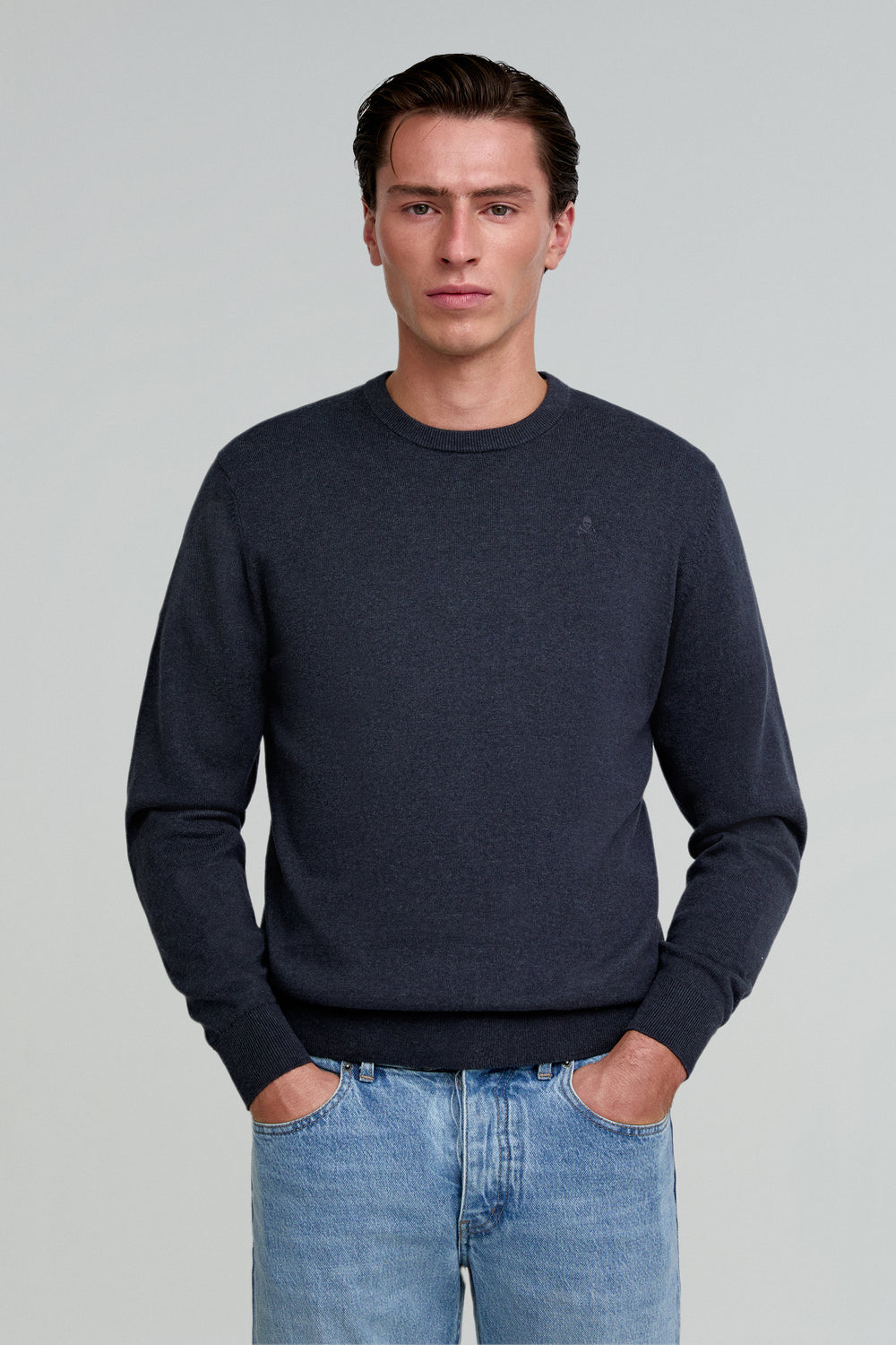 Jersey confeccionado en algodón BCI y cashmere. Regular fit, cuello redondo y manga larga.