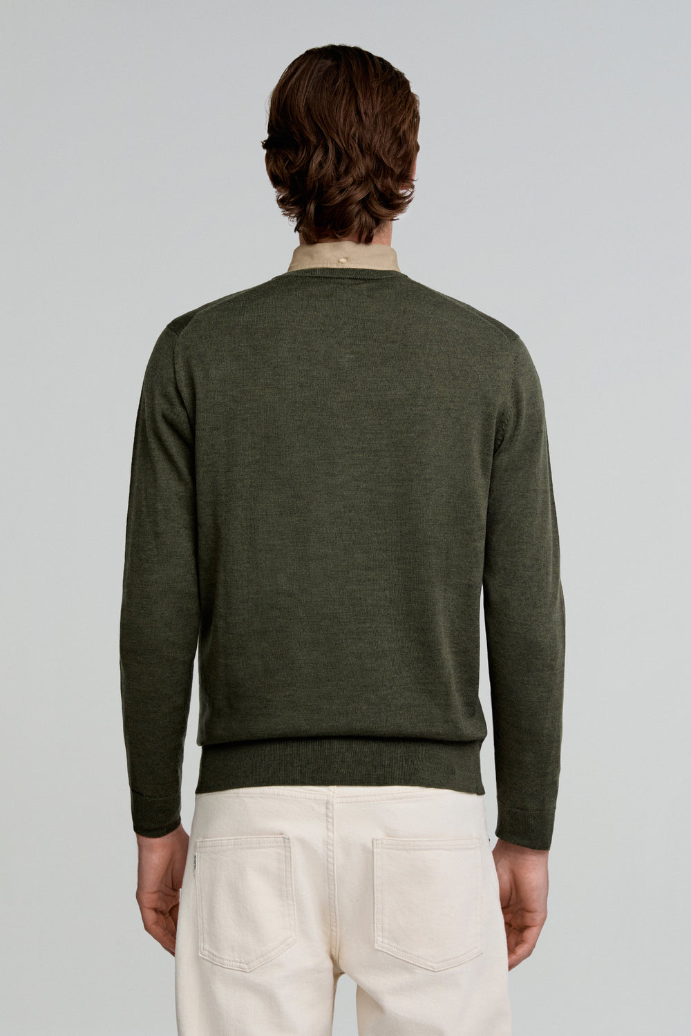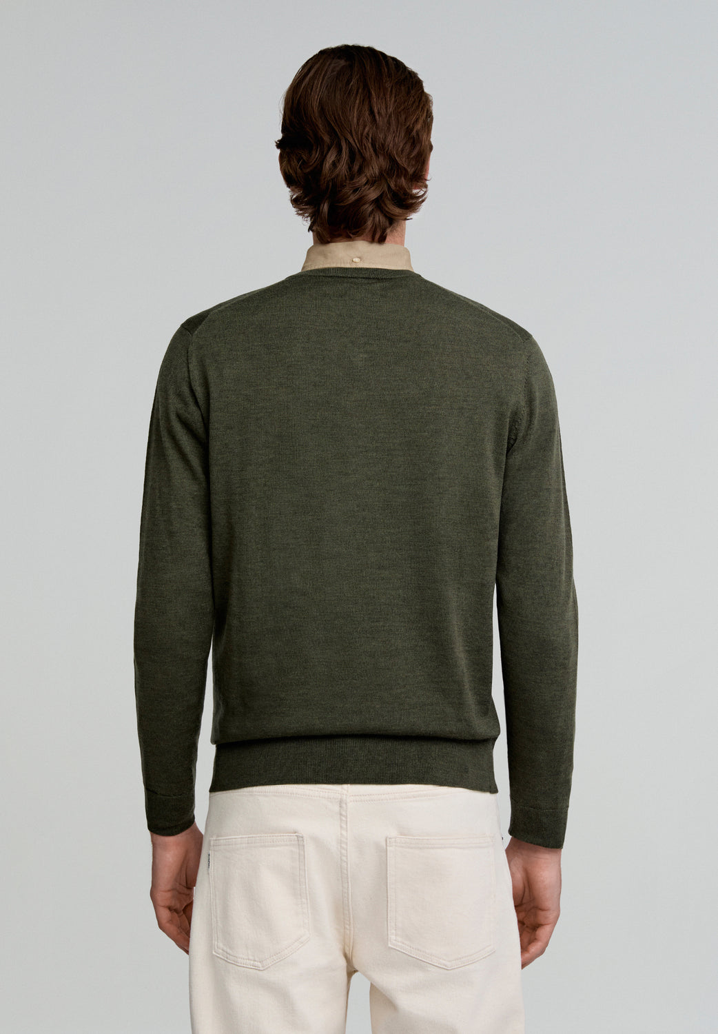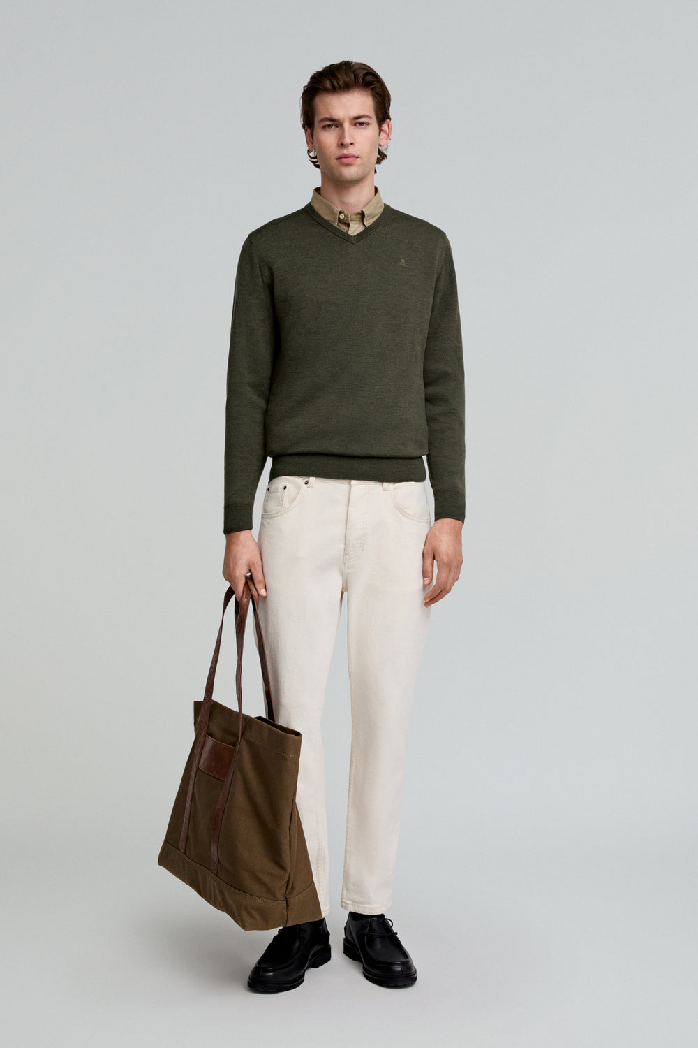 Jersey confeccionado en 100% lana merino. Regular fit, cuello de pico y manga larga. Calavera bordada a tono.