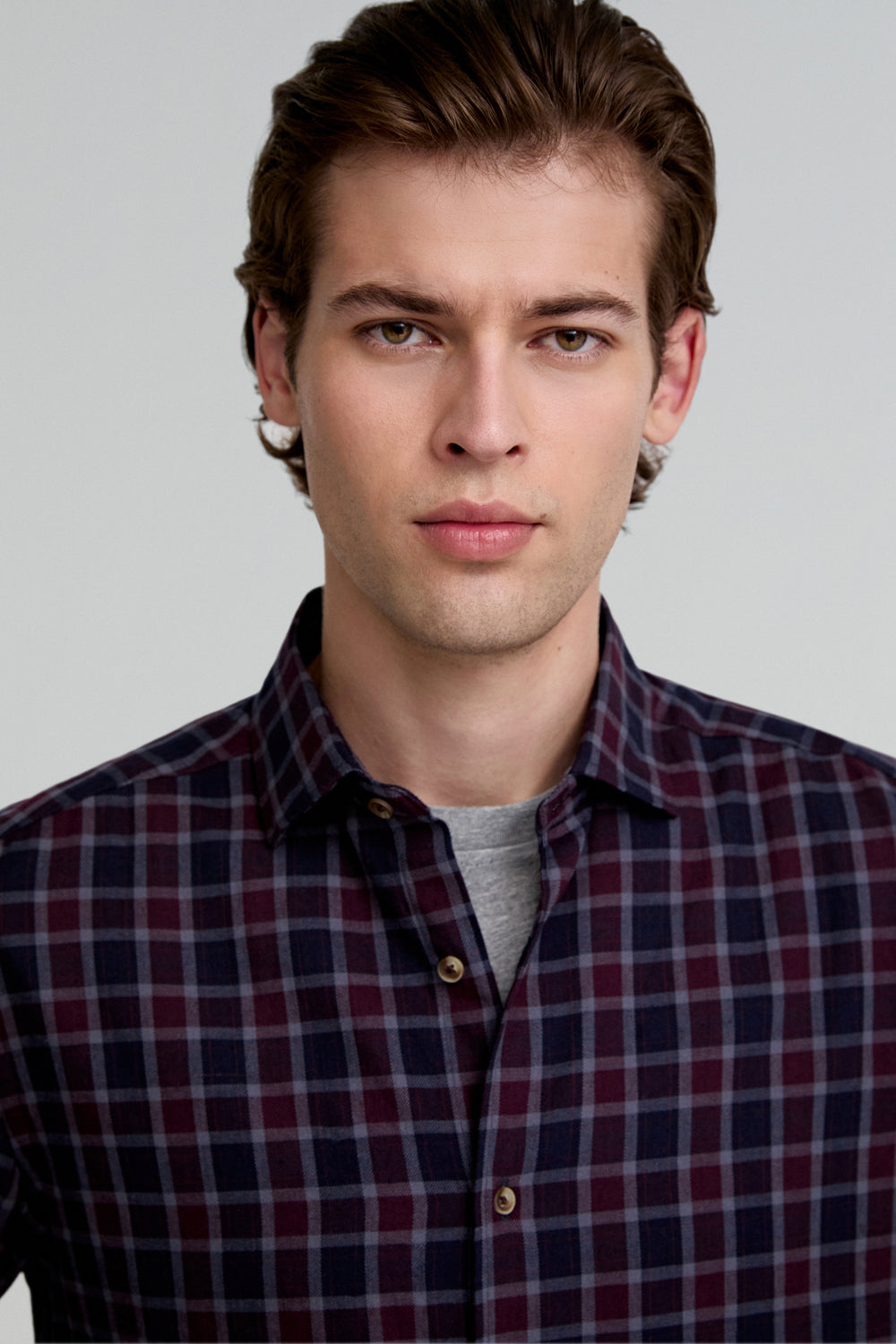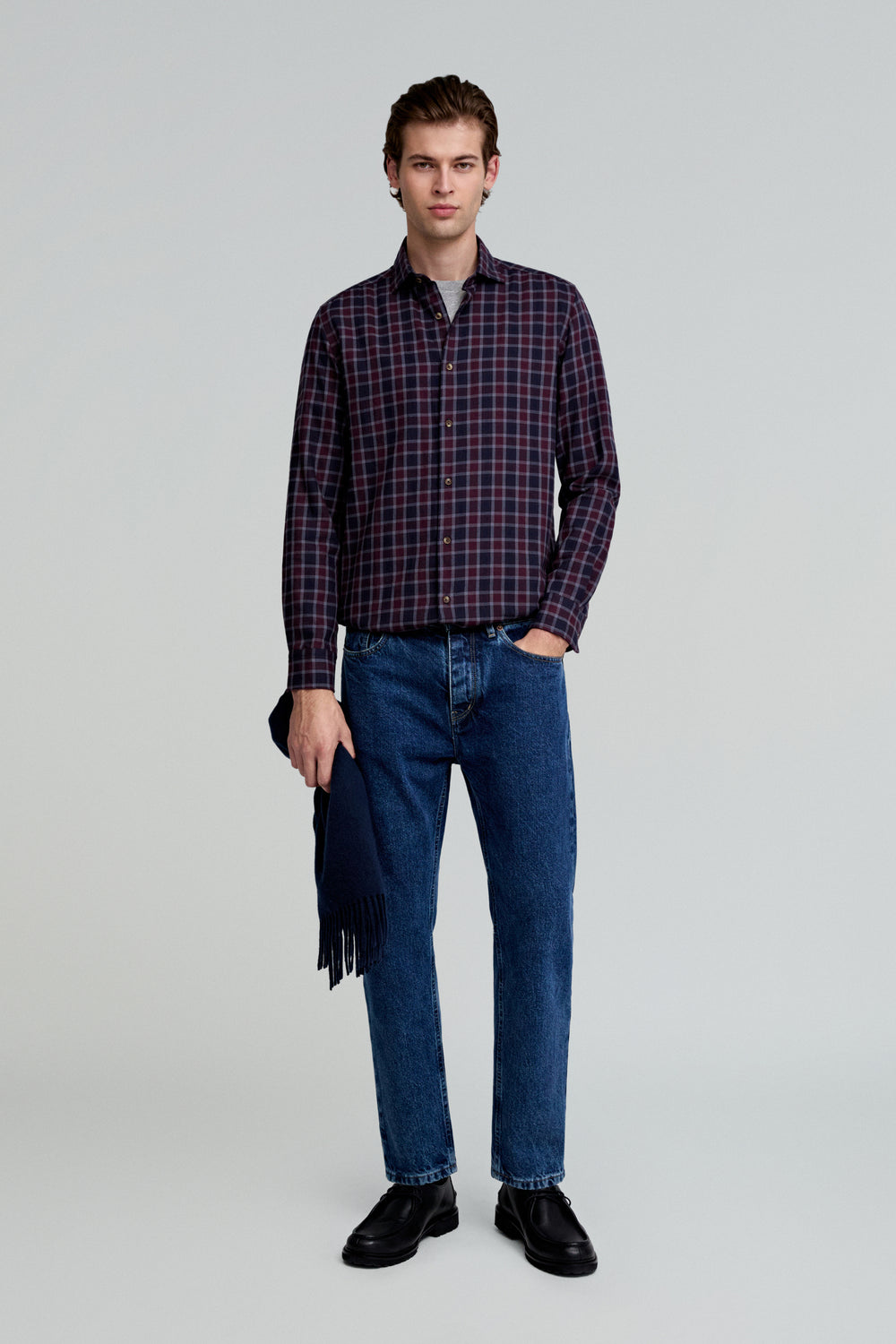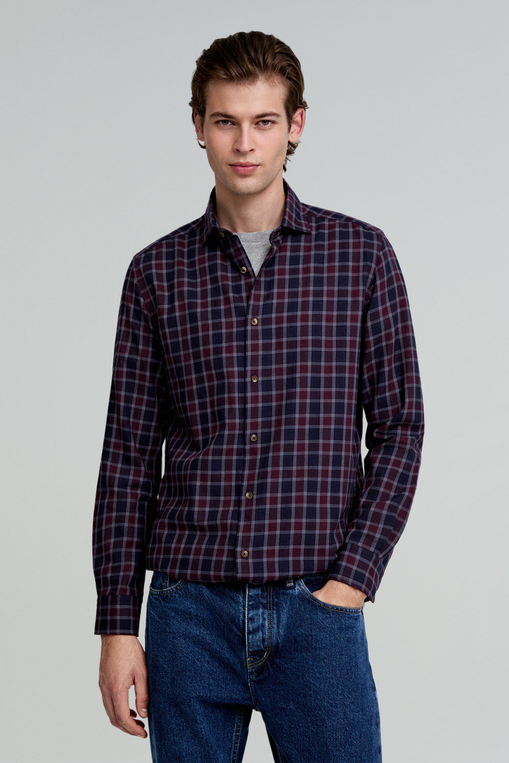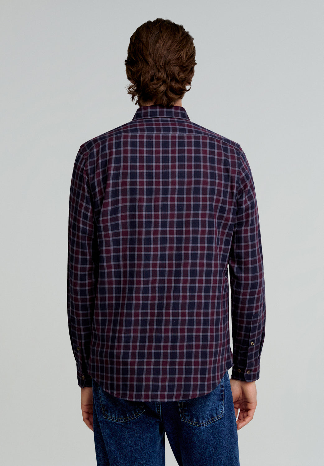 Camisa de cuadros tartán confeccionada en 100% algodón orgánico. Regular fit, cuello cutaway y cierre con botones. Manga larga terminada en puño con botón.