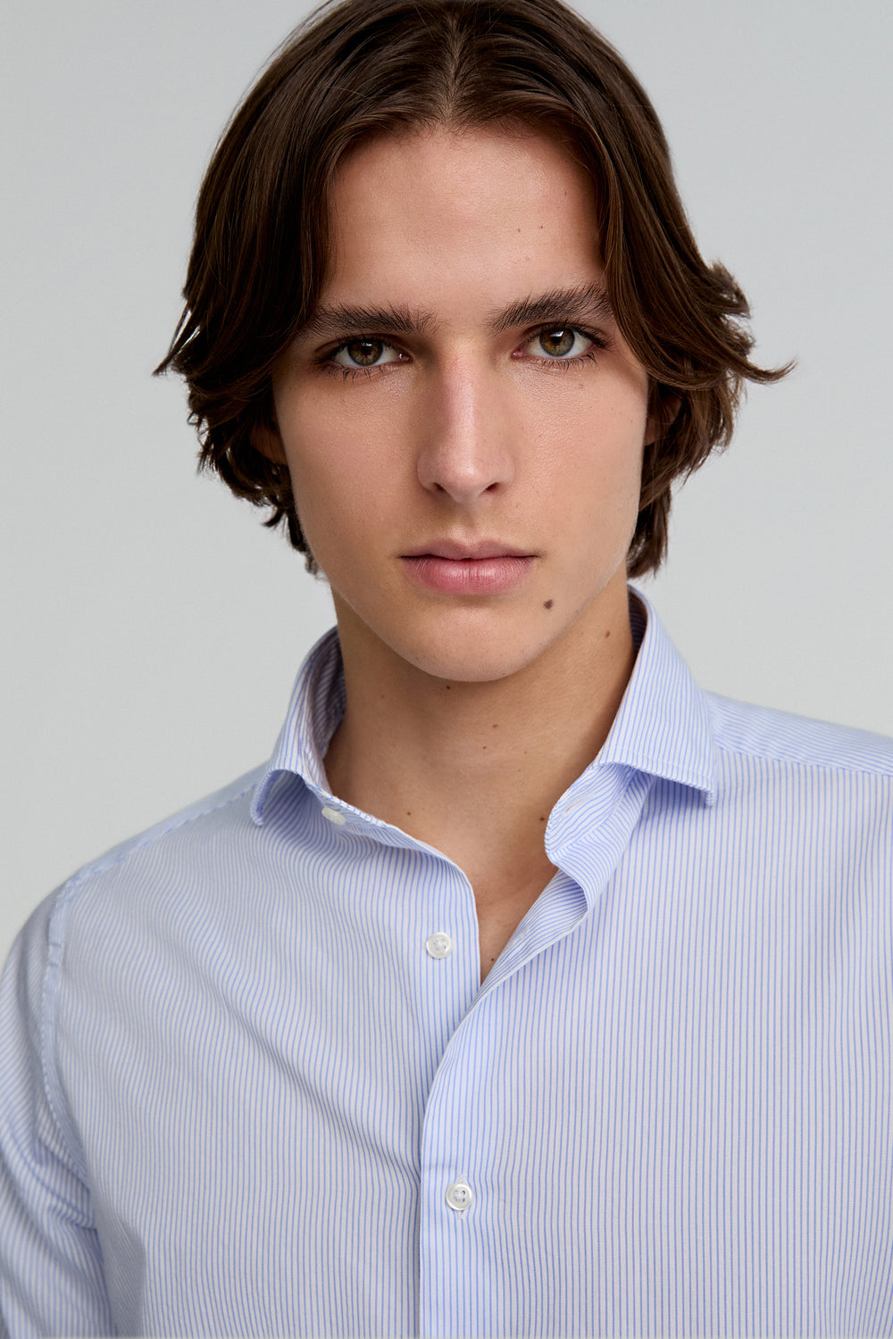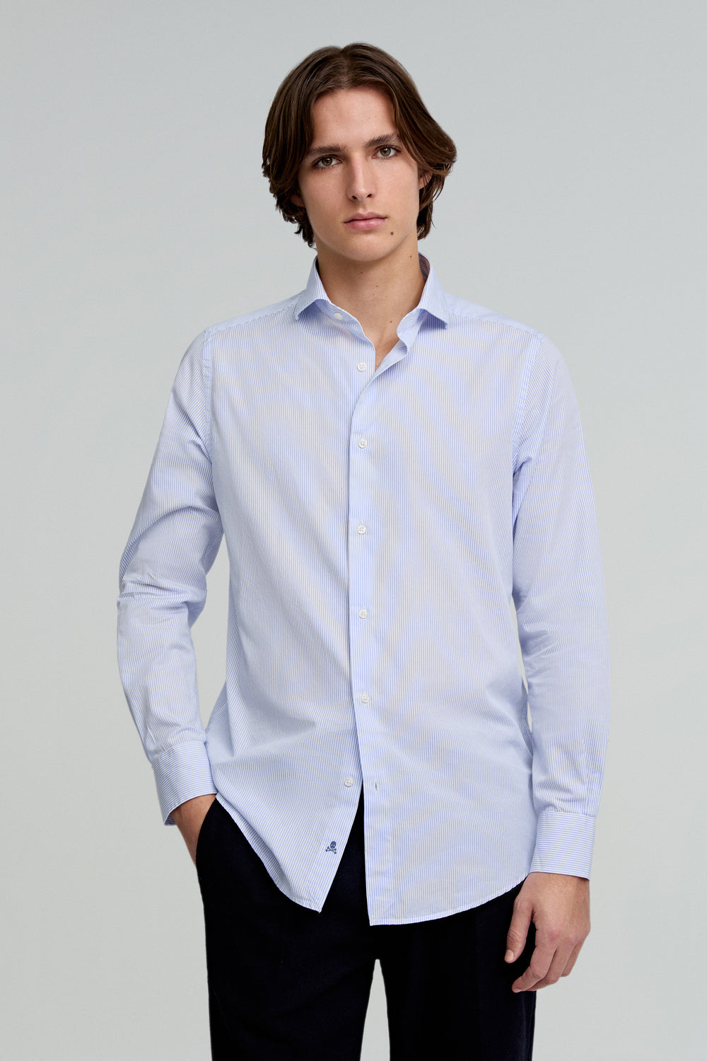 Camisa de vestir confeccionada en 100% algodón. Slim fit, cuello clásico y cierre con botones. Manga larga terminada en puño.