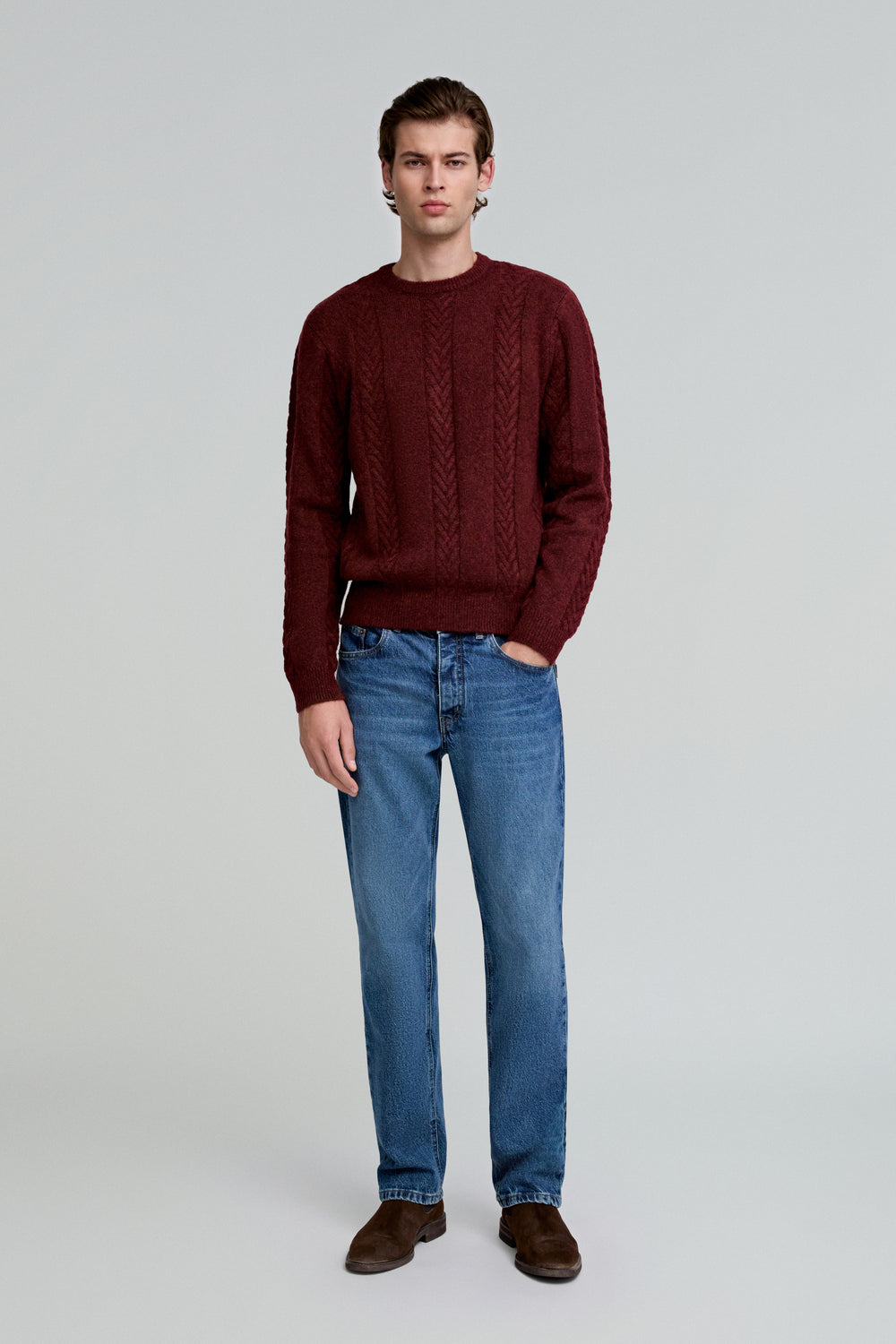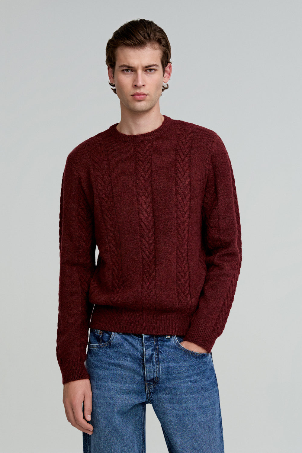 Jersey confeccionado en mezcla de alpaca. Regular fit, cuello redondo y manga larga. Detalles trenzados.