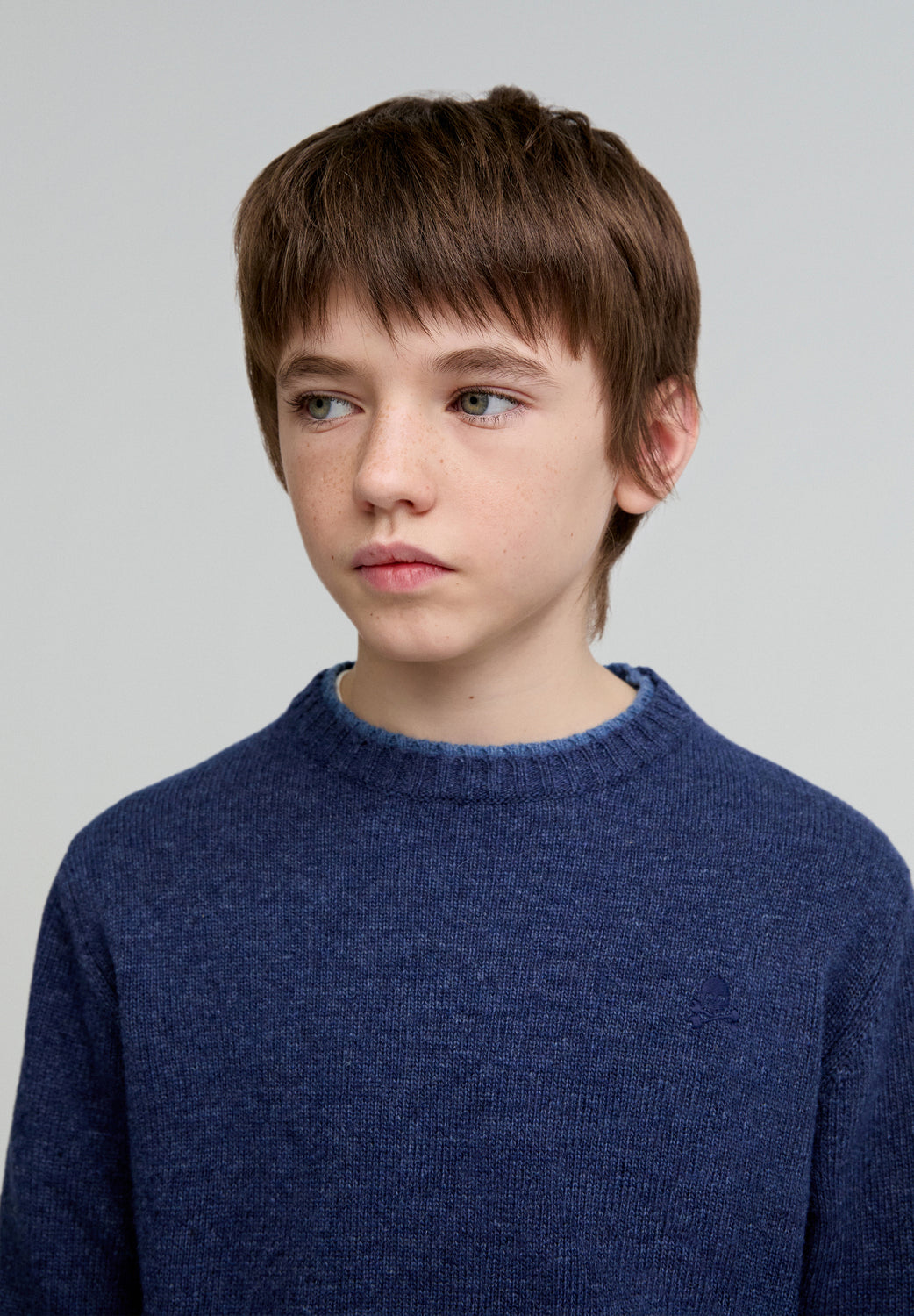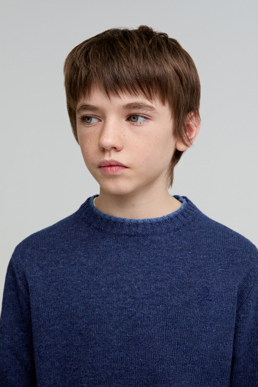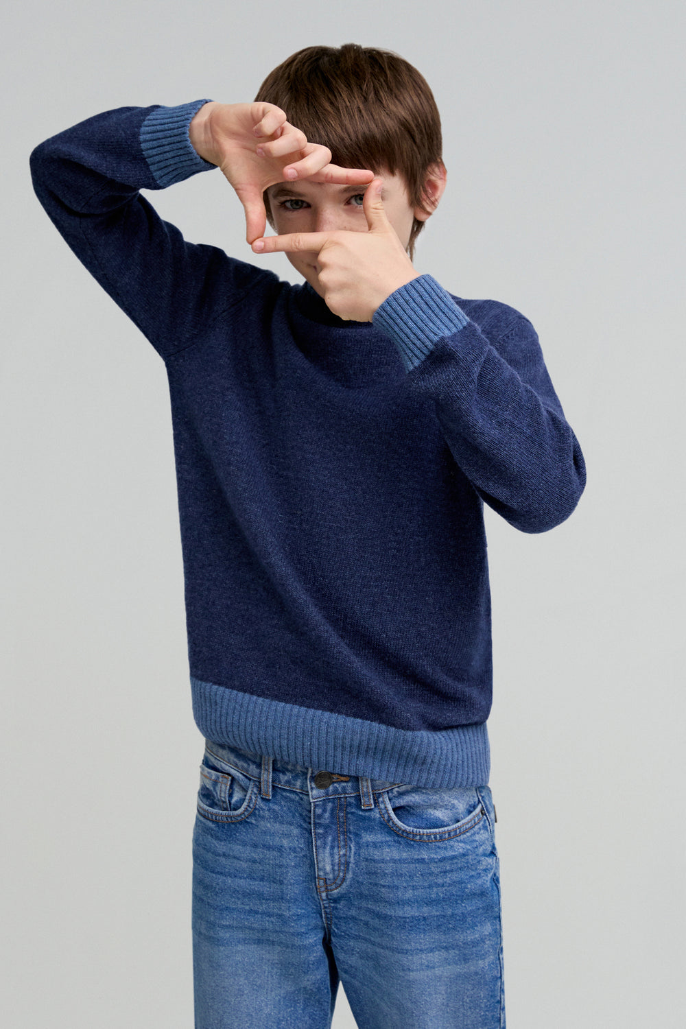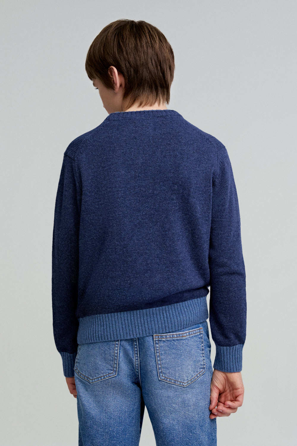 Jersey confeccionado en mezcla de lana. Regular fit, cuello redondo y manga larga. Detalle a contrastes.