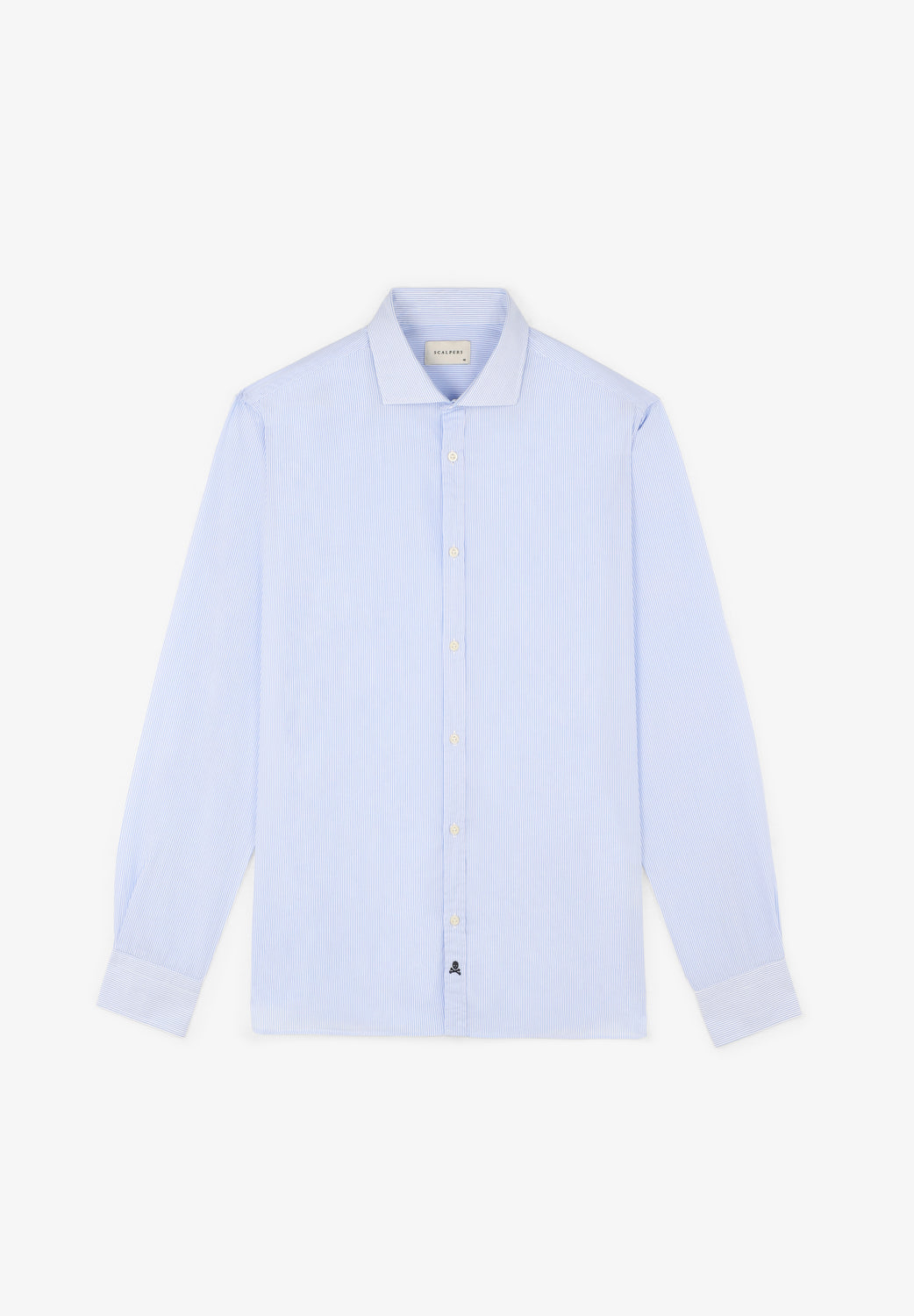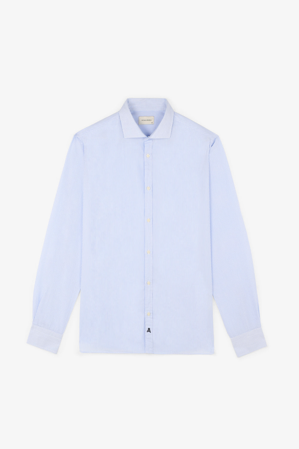 Camisa tejido mil rayas con detalle calavera en la tapeta frontal.