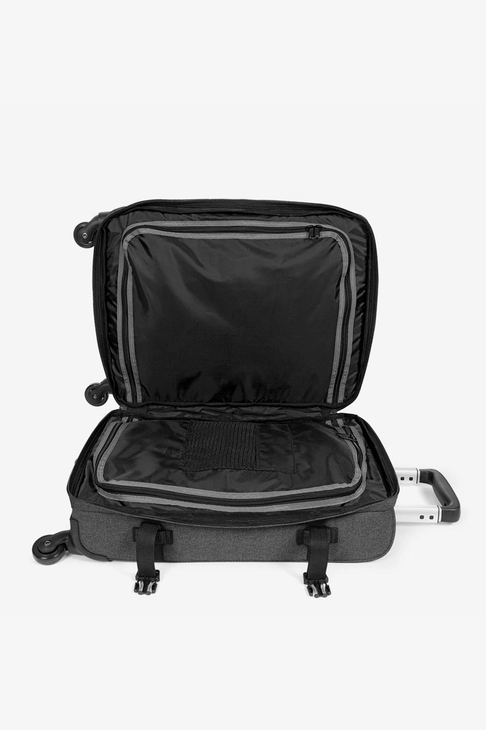 Maleta Eastpak confeccionada tejido 100% poliéster. Presenta múltiples asas de transporte, cierre doble cremallera con candando TSA Lock integrado, interior con dos compartimentos con cremallera. bolsillo exterior y dos correas de compresión. Cuatro ruedas que giran 360º.