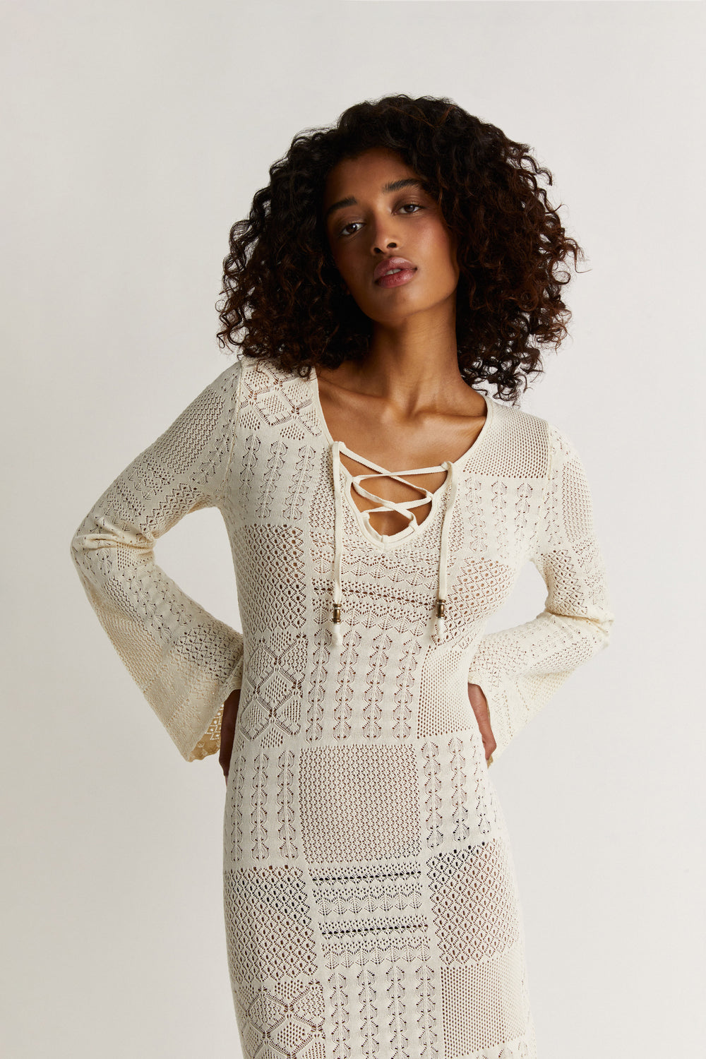 - Mangas largas acampanadas.