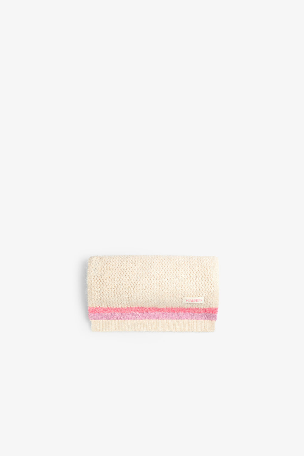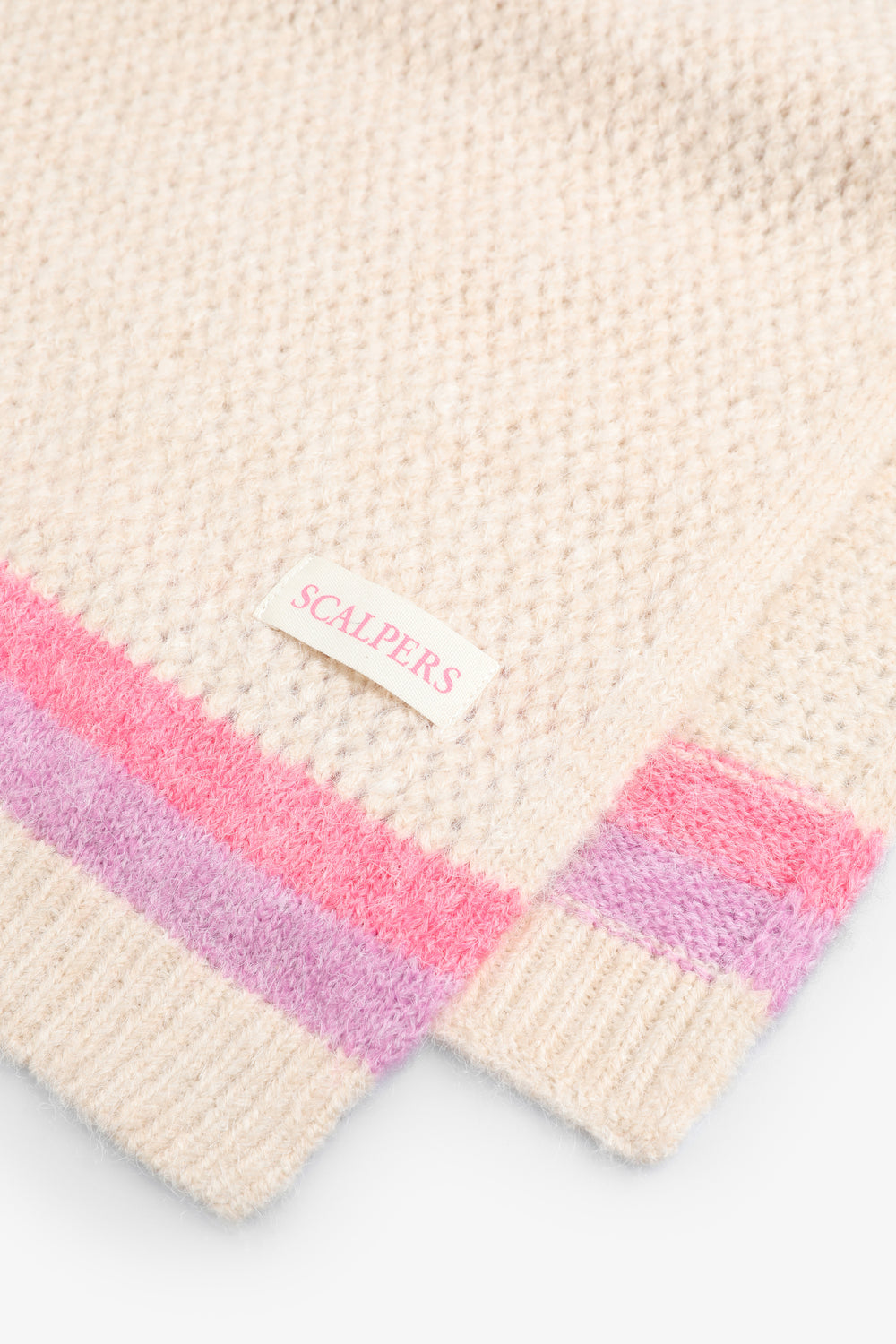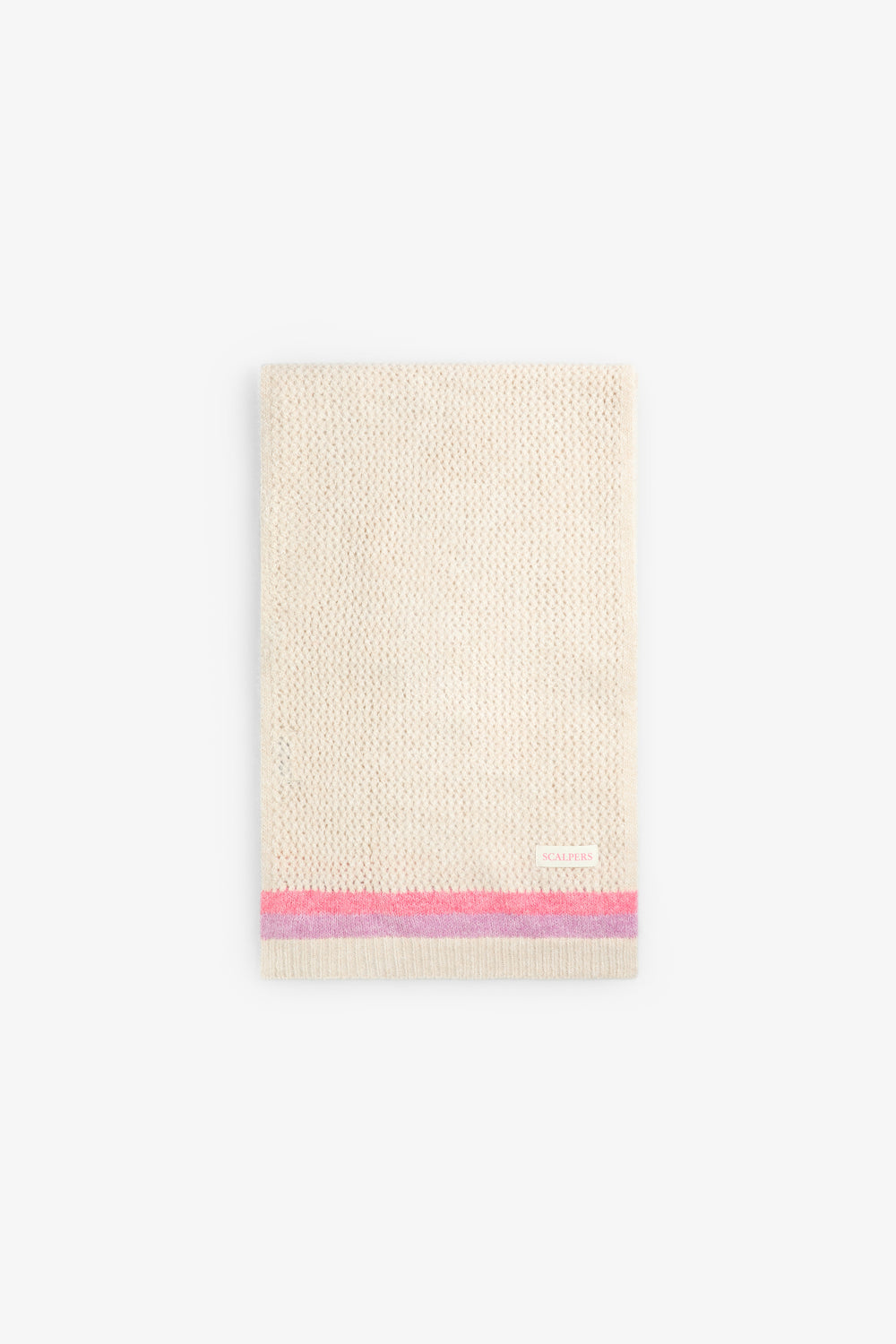 Bufanda de punto con detalle de rayas y etiqueta de logo.