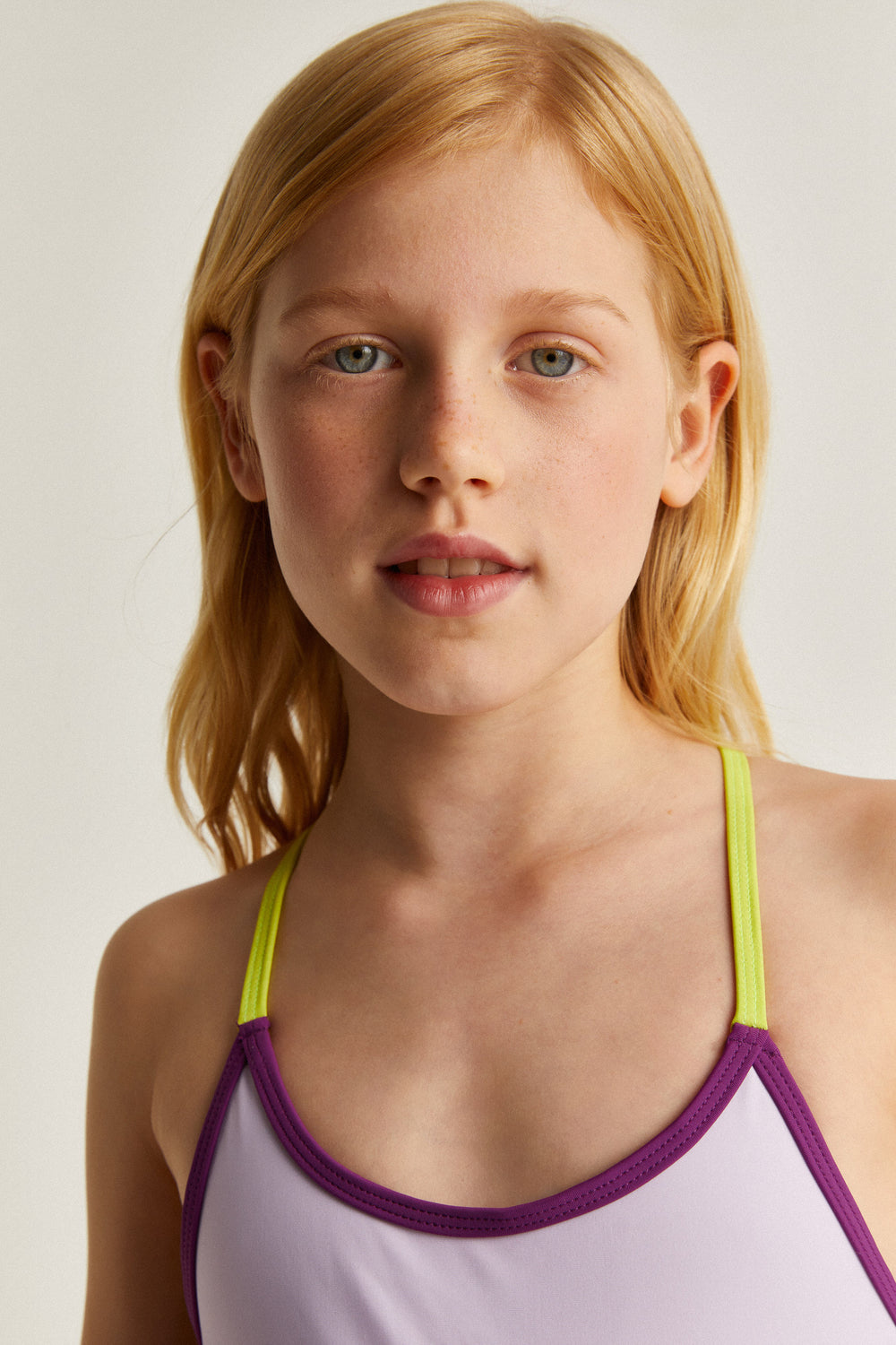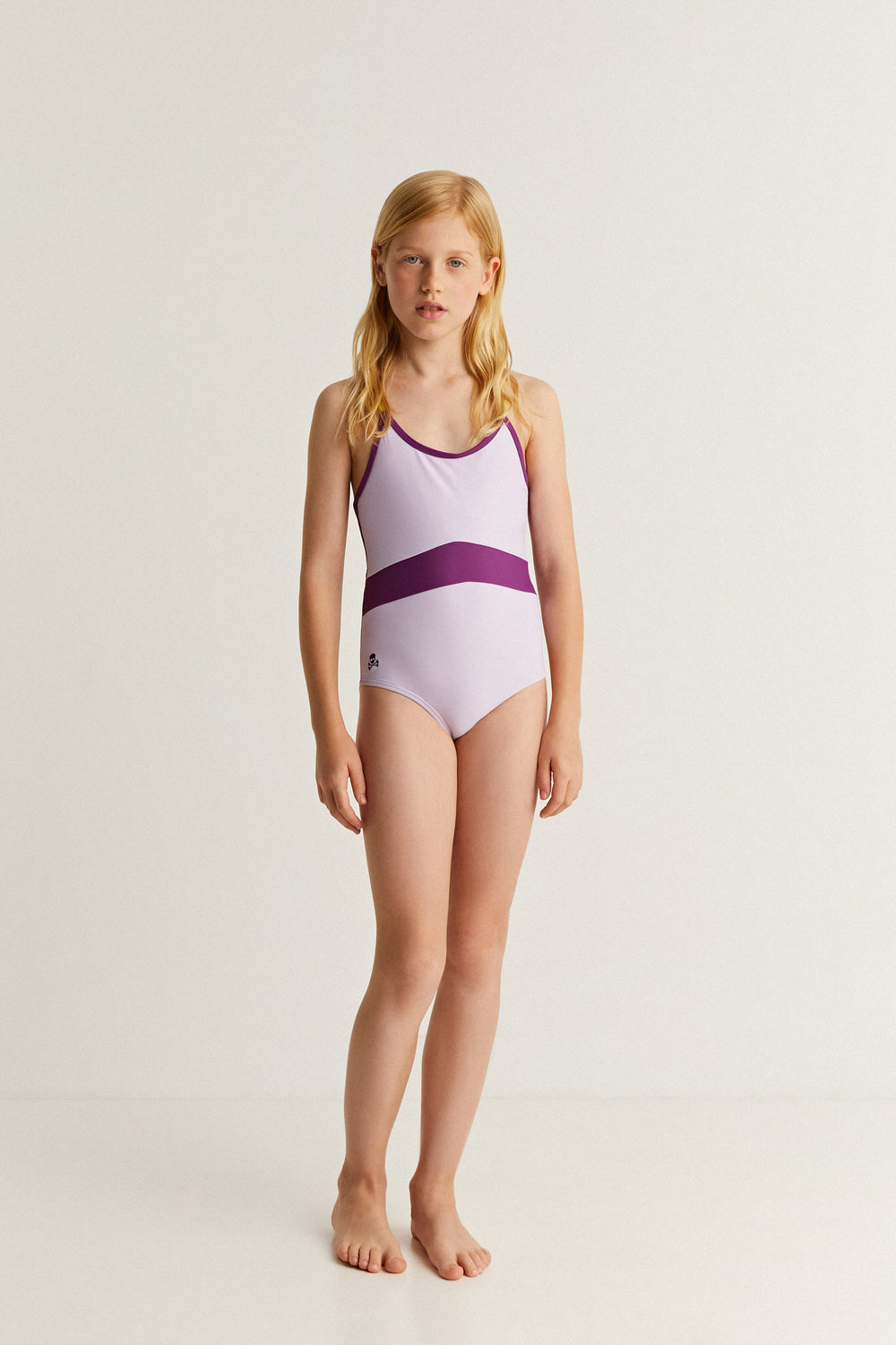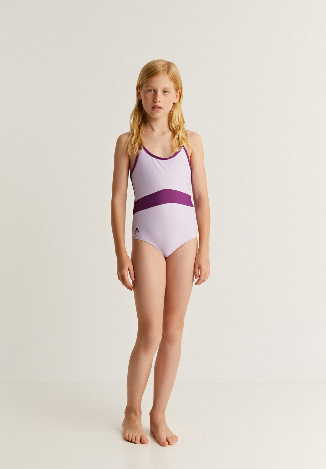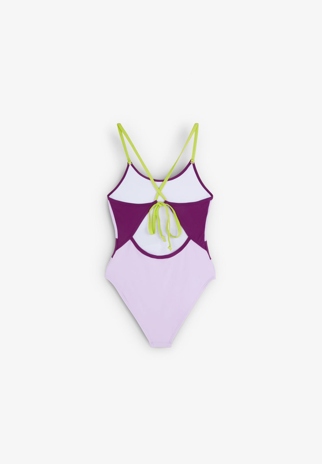 Bañador con detalles a contraste. Confeccionado en nylon ligeramente elástico. Tirantes finos cruzados en espalda. Cierre trasero. Detalle de abertura trasera.