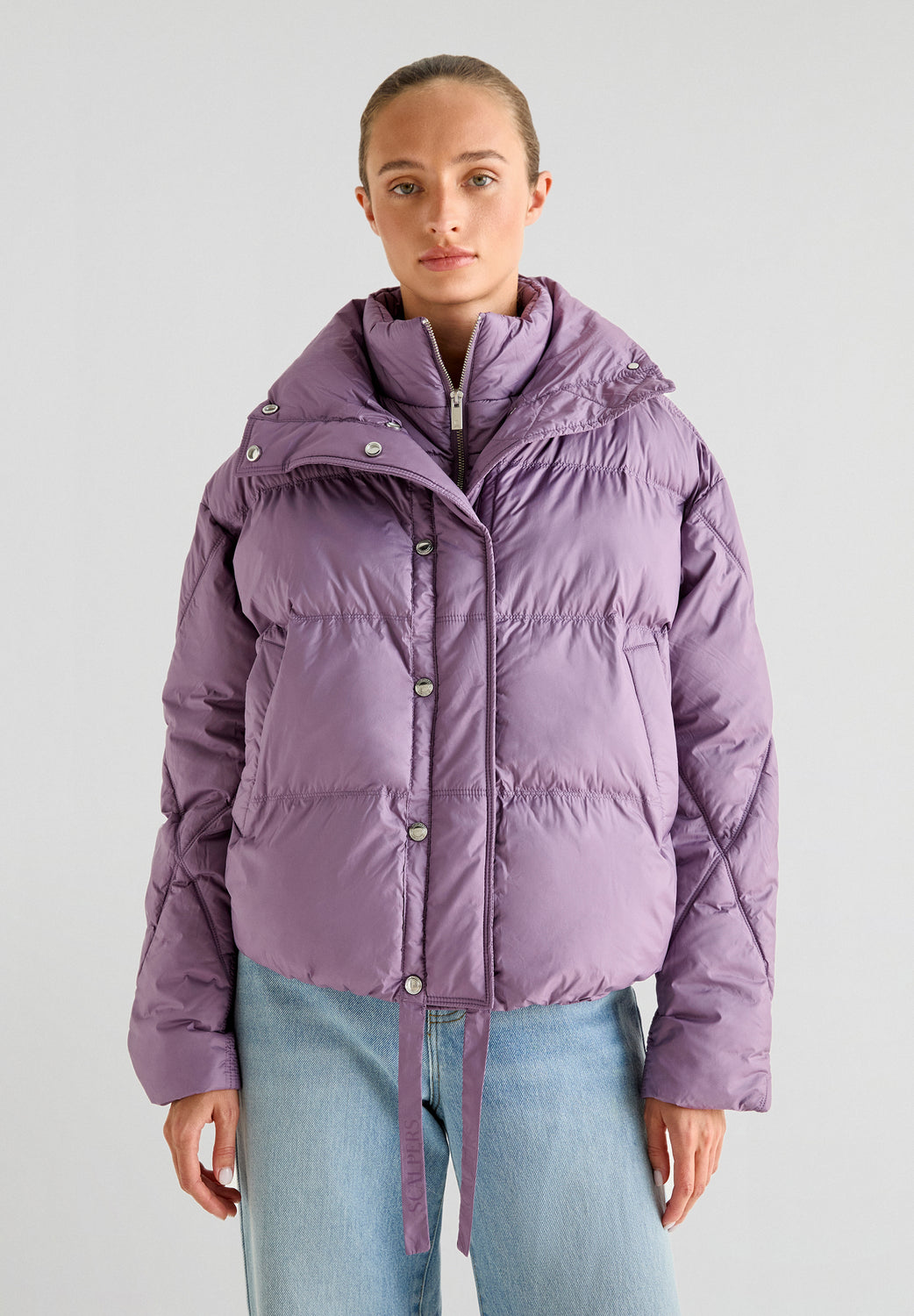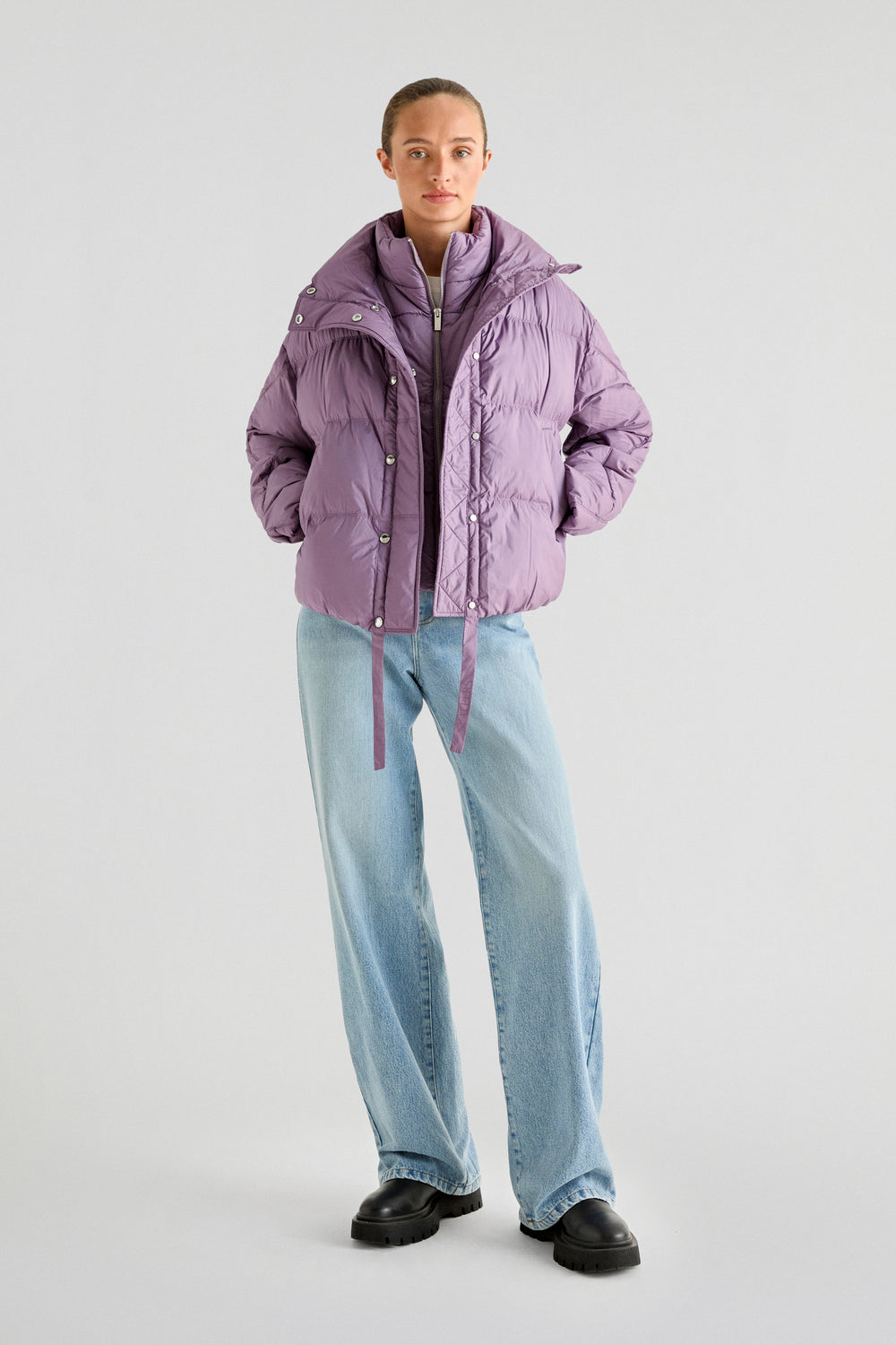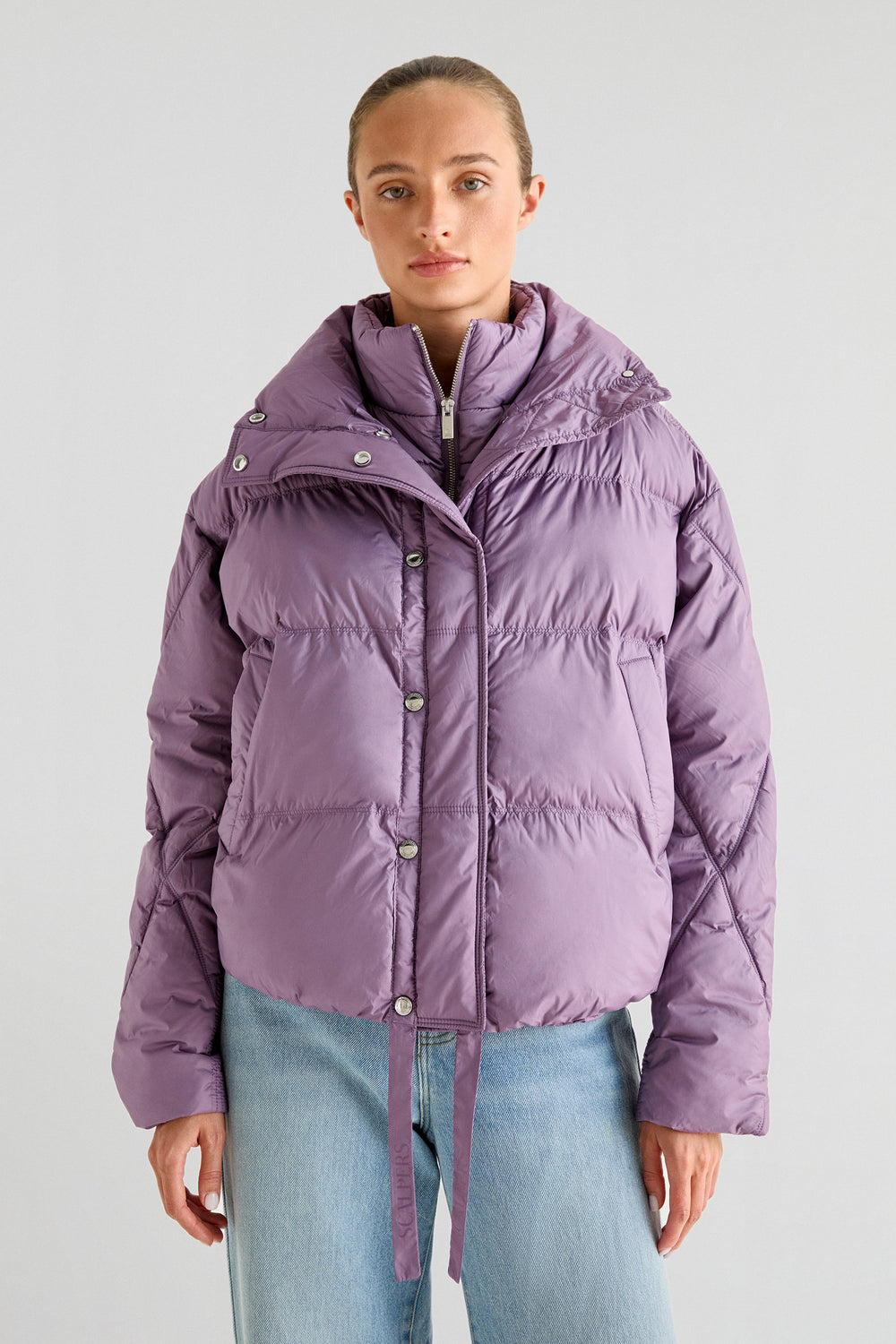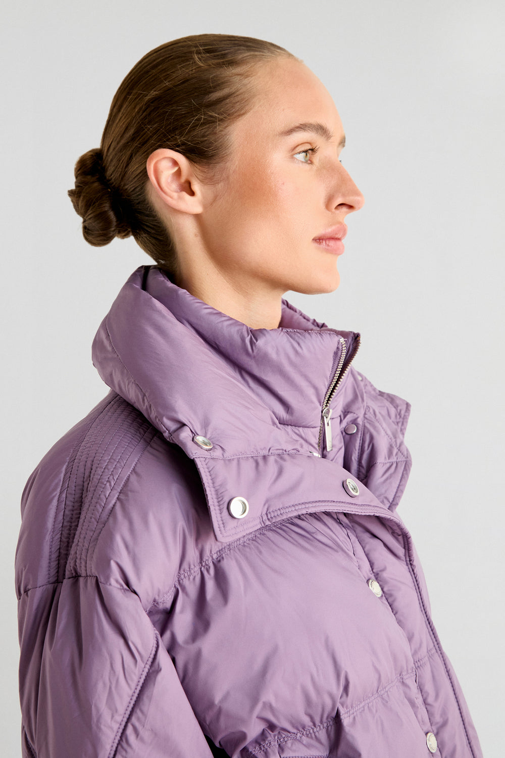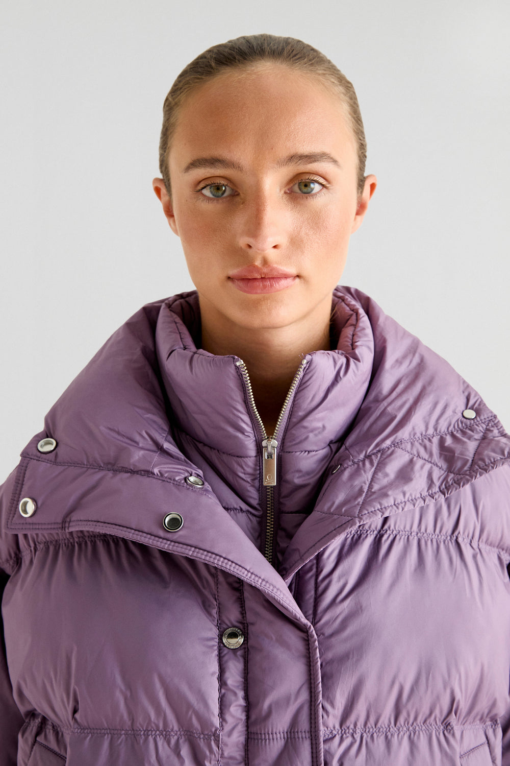 Abrigo corto acolchado confeccionado en tejido técnico. Regular fit, cierre con cremallera y cuello subido. Manga larga y ajustadores en el bajo. Bolsillos laterales.
