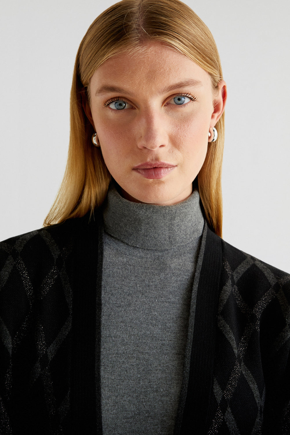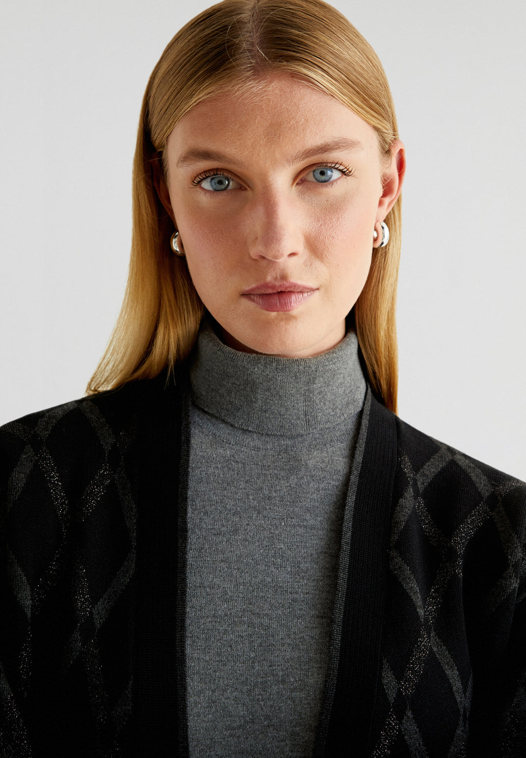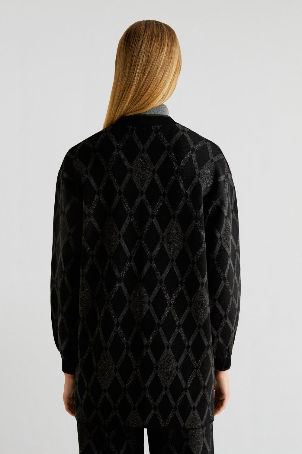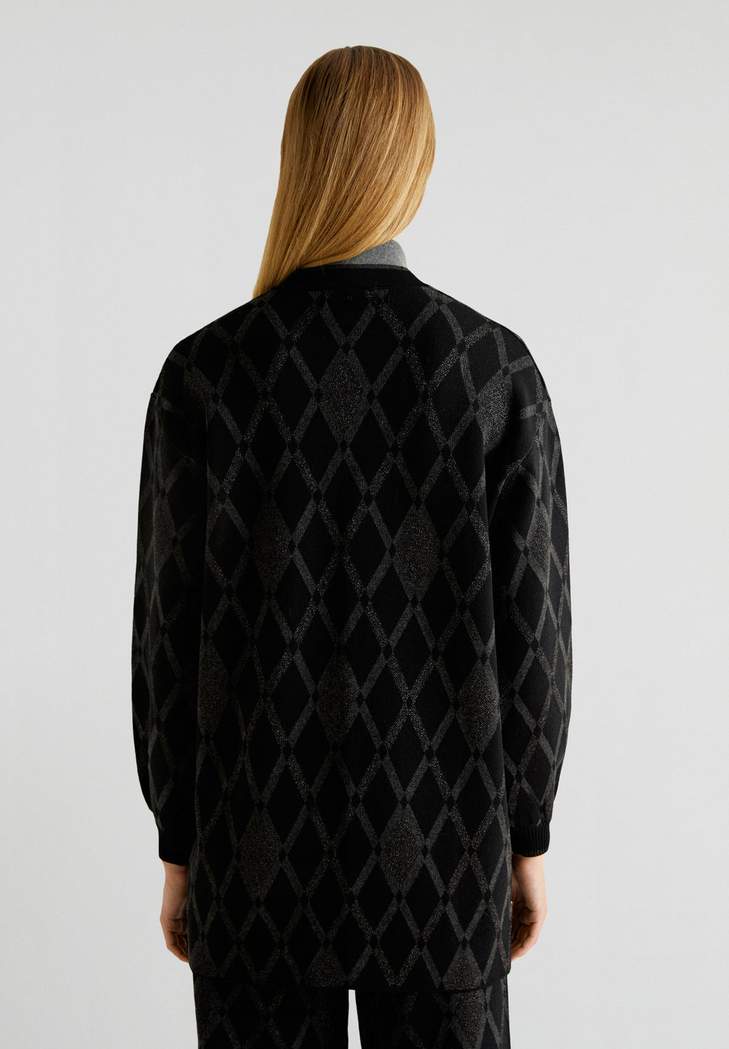 Cárdigan de rombos confeccionado en punto. Regular fit, sin cierre y manga larga.