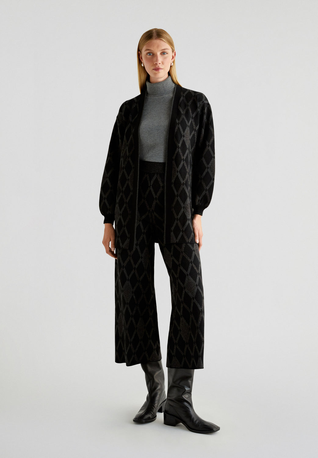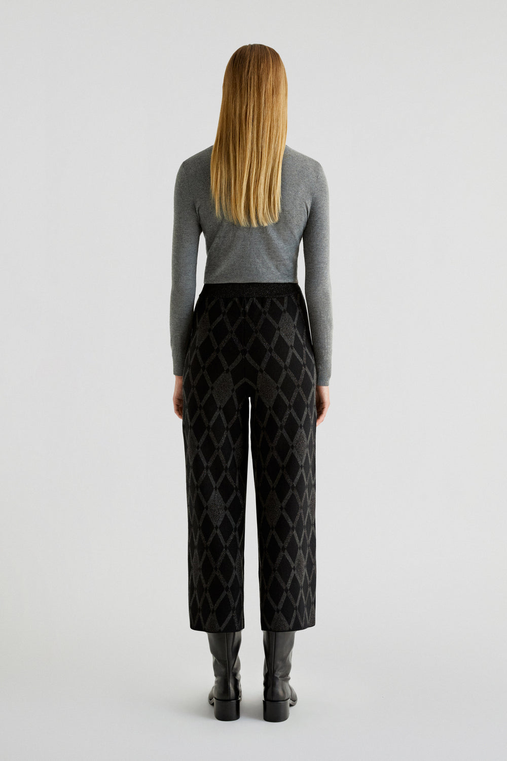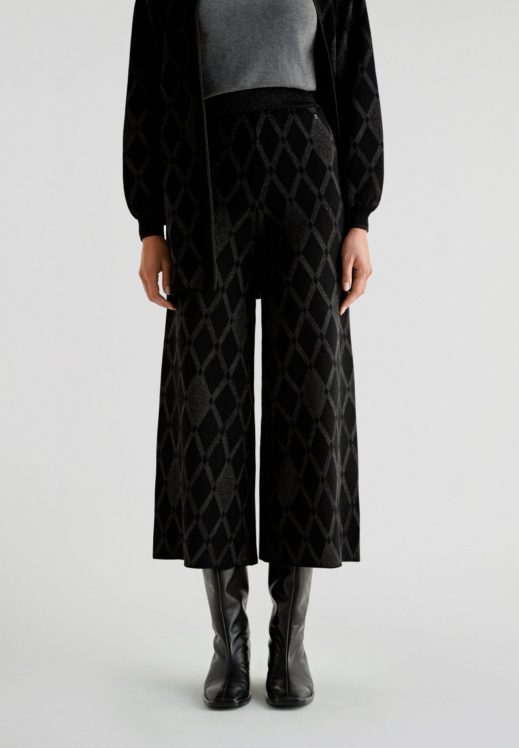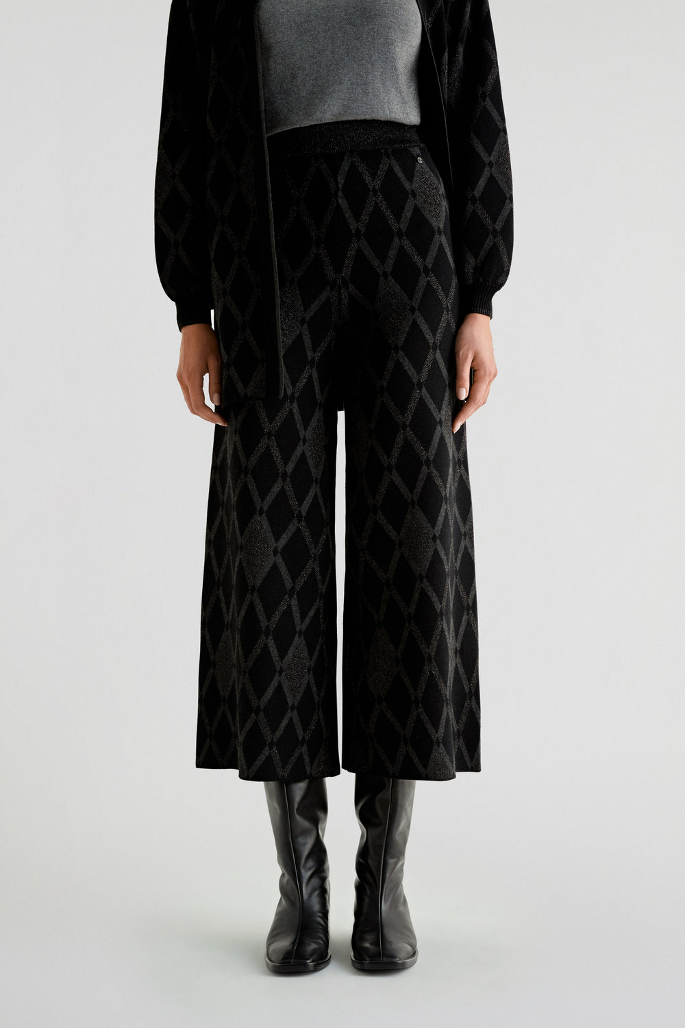 Pantalón de rombos de punto. Culotte regular fit, cinturilla elástica.