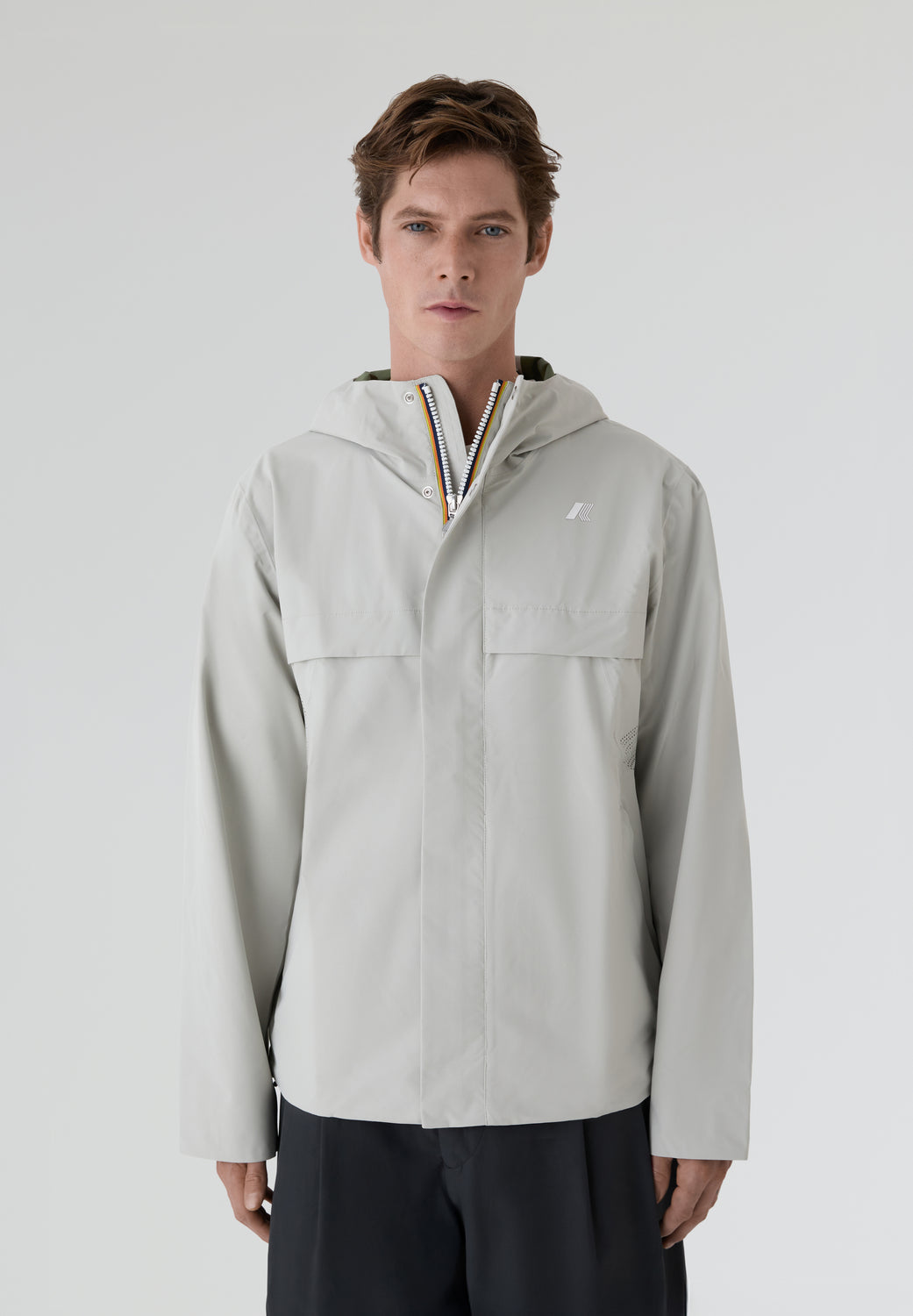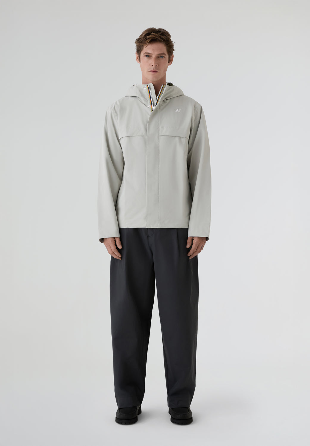 Chaqueta cortavientos e impermeable K-Way confeccionada en tejido 100% poliéster reciclado.