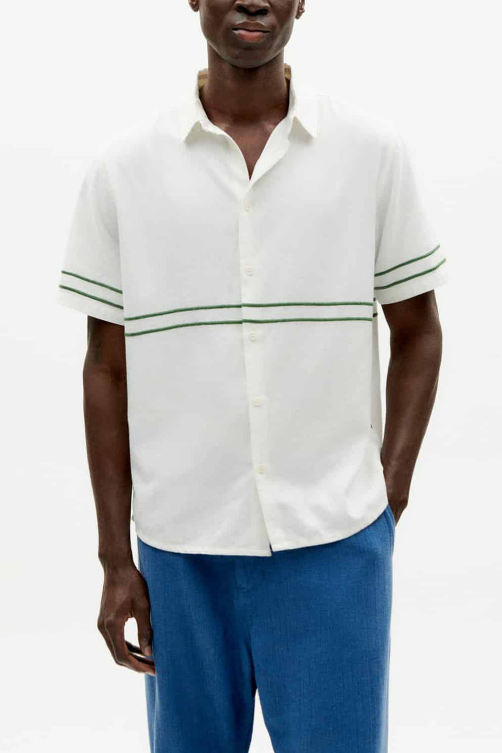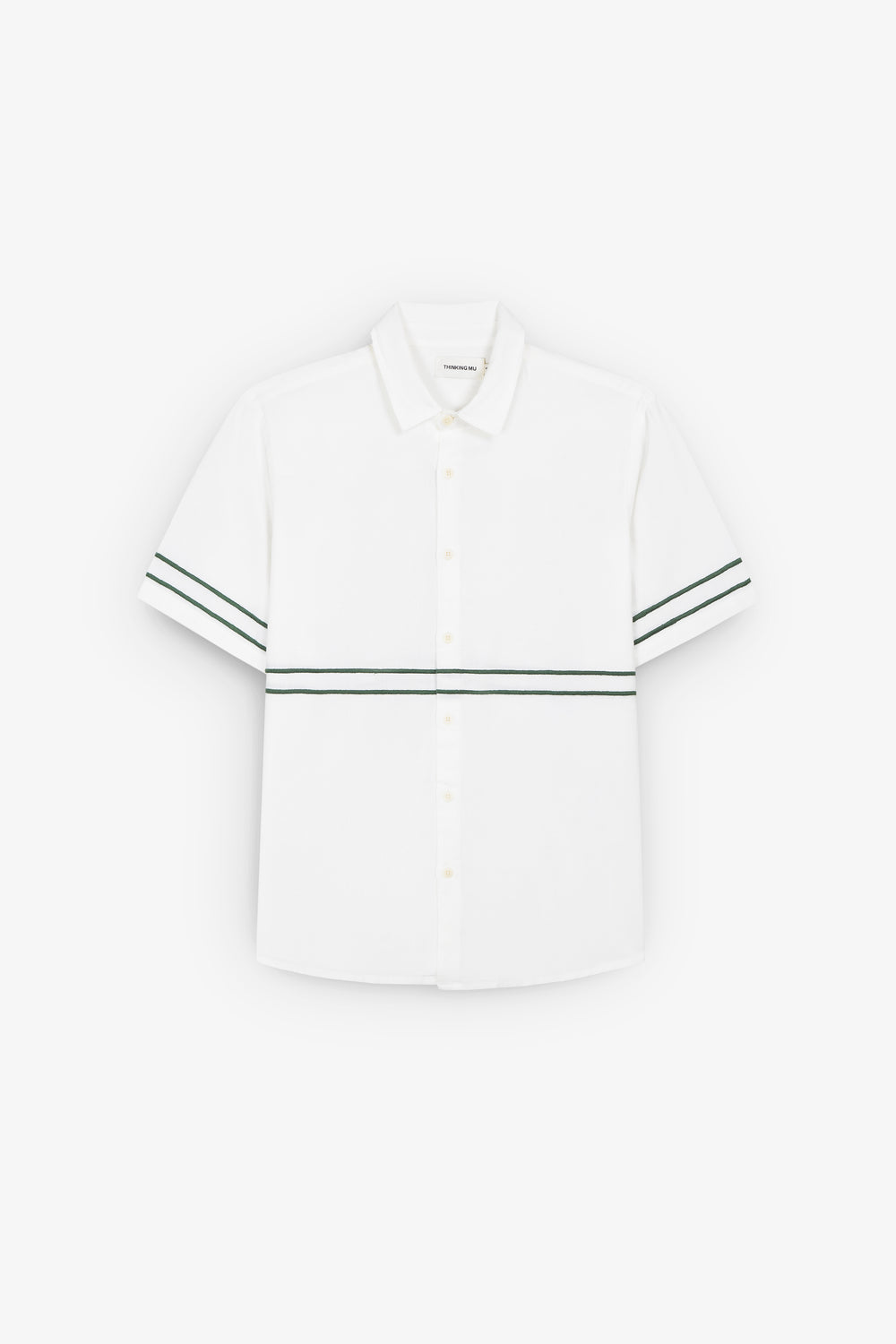 THINKING MU | CAMISA UNDYED EMBROIDERY GREEN TOM
