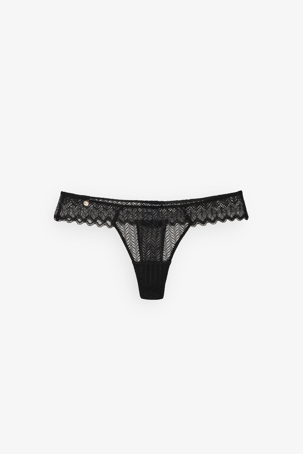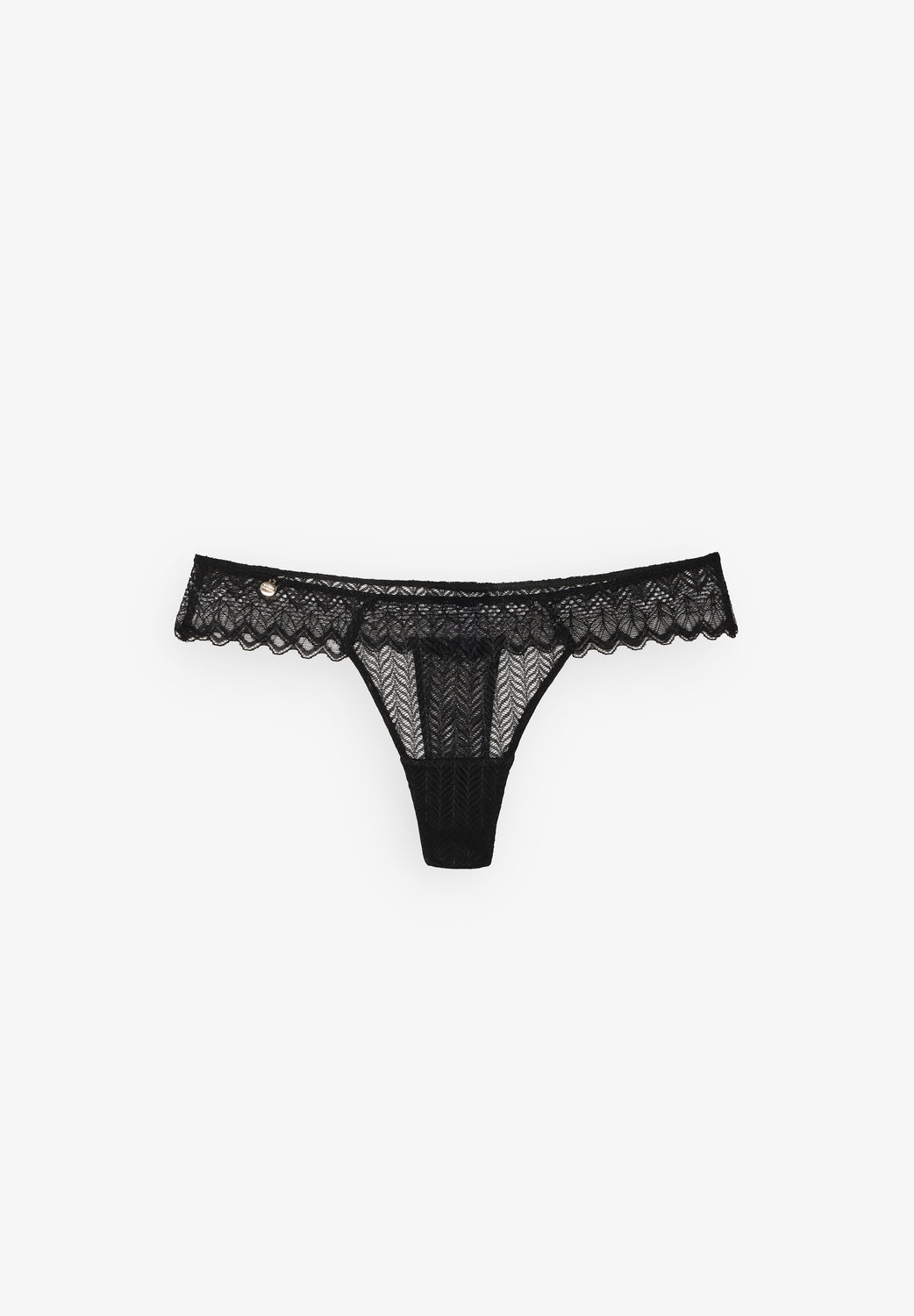 Braguita Black Limba confeccionada en tejido mezcla poliamida y elastano. Diseño de encaje geométrico semitransparente, forro de algodón, blonda inferior y detalle abalorio logo marca.