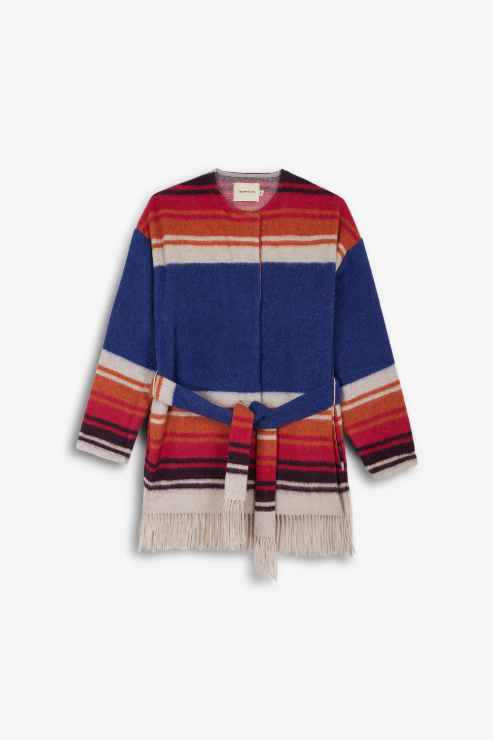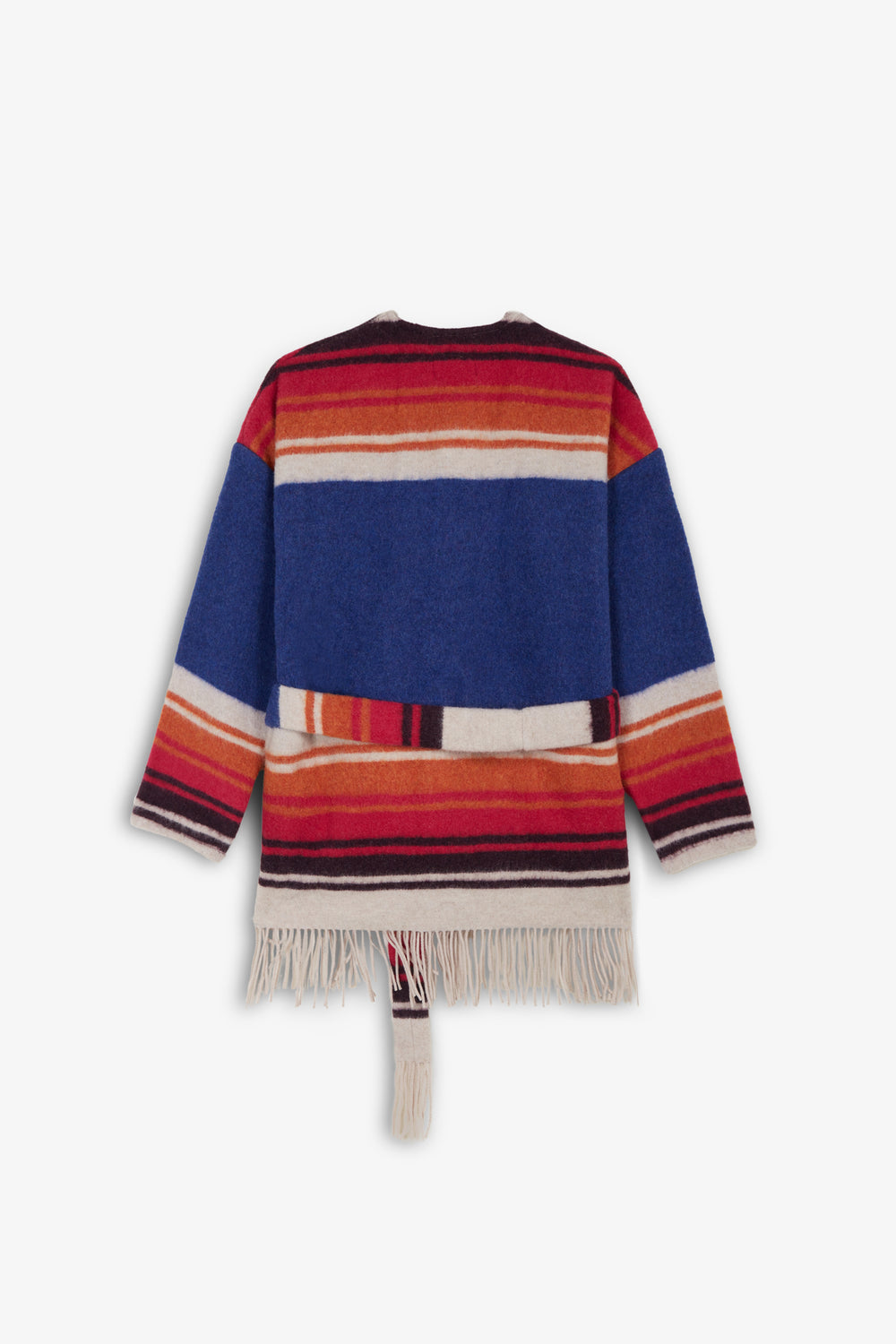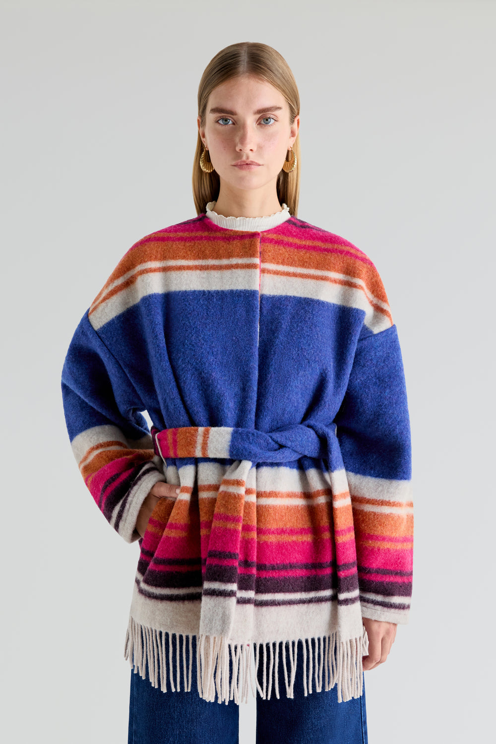 - Detalle flecos en el dobladillo de la chaqueta y cinturón.