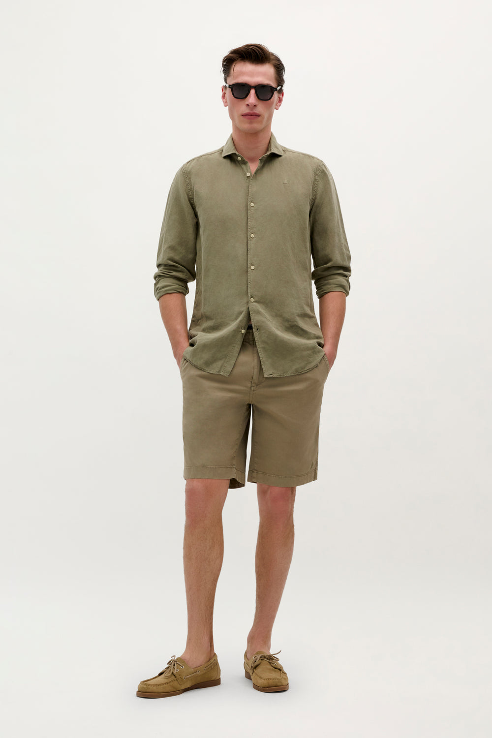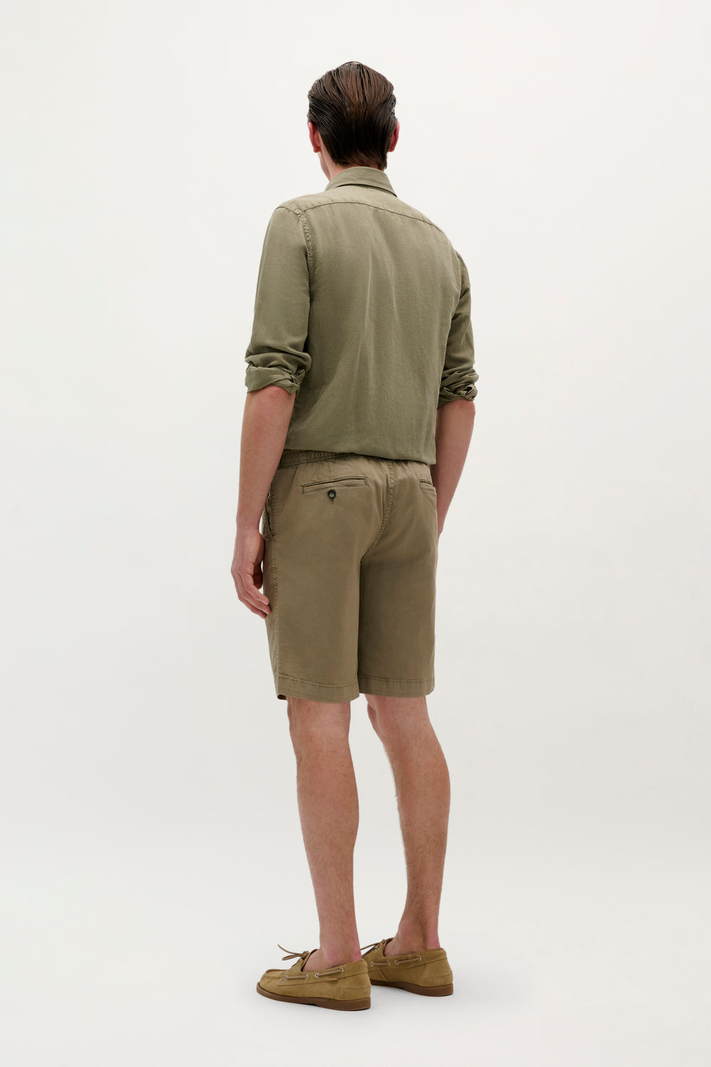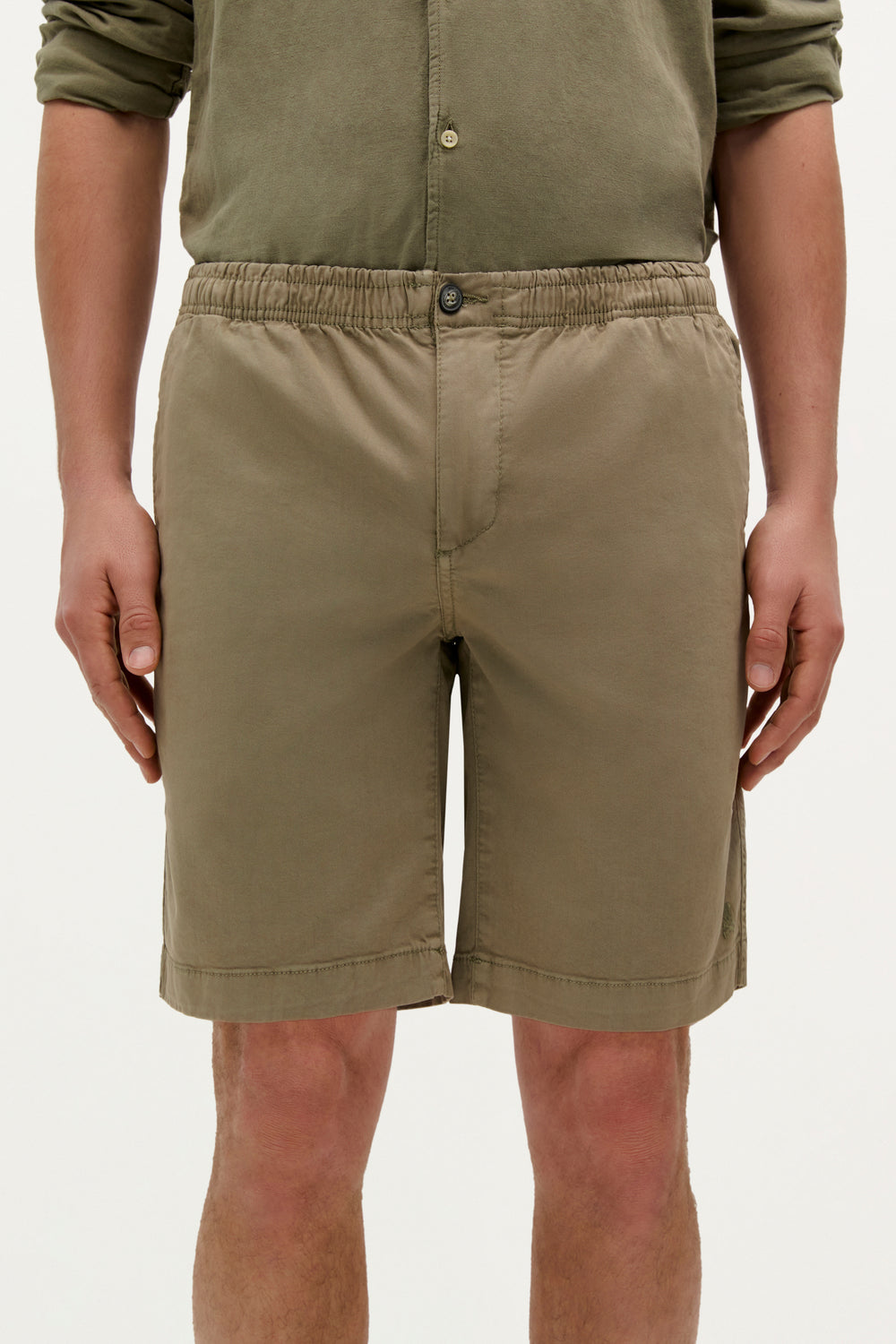 Bermuda confeccionada en Algodón Orgánico. Bolsillos laterales. Bolsillos en espalda con cierre por abotonadura. Cierre en frontal por cremallera y botón. Detalle de logo en espalda.