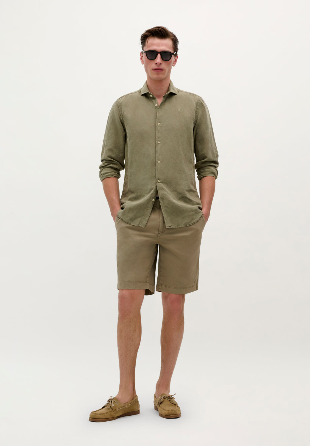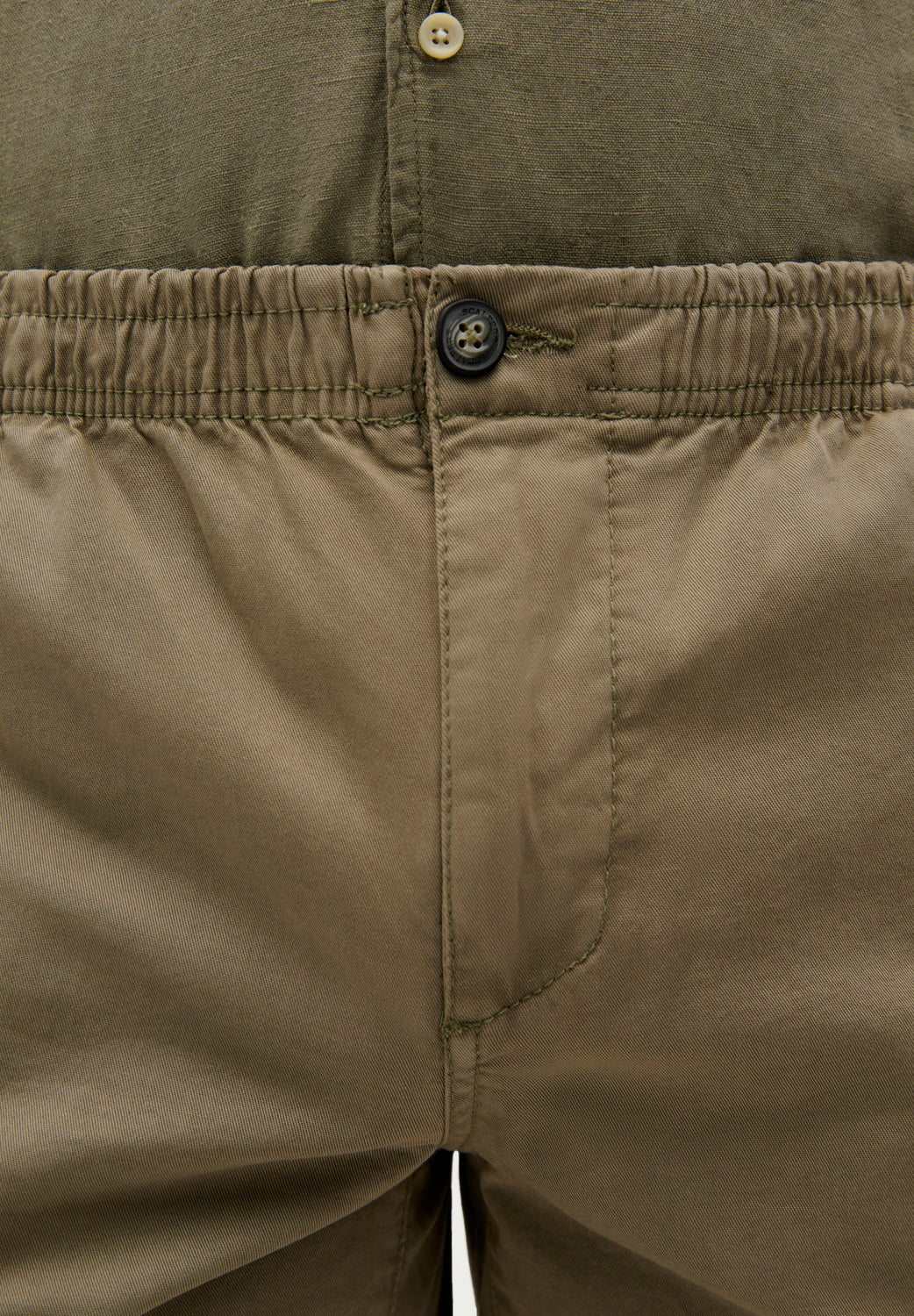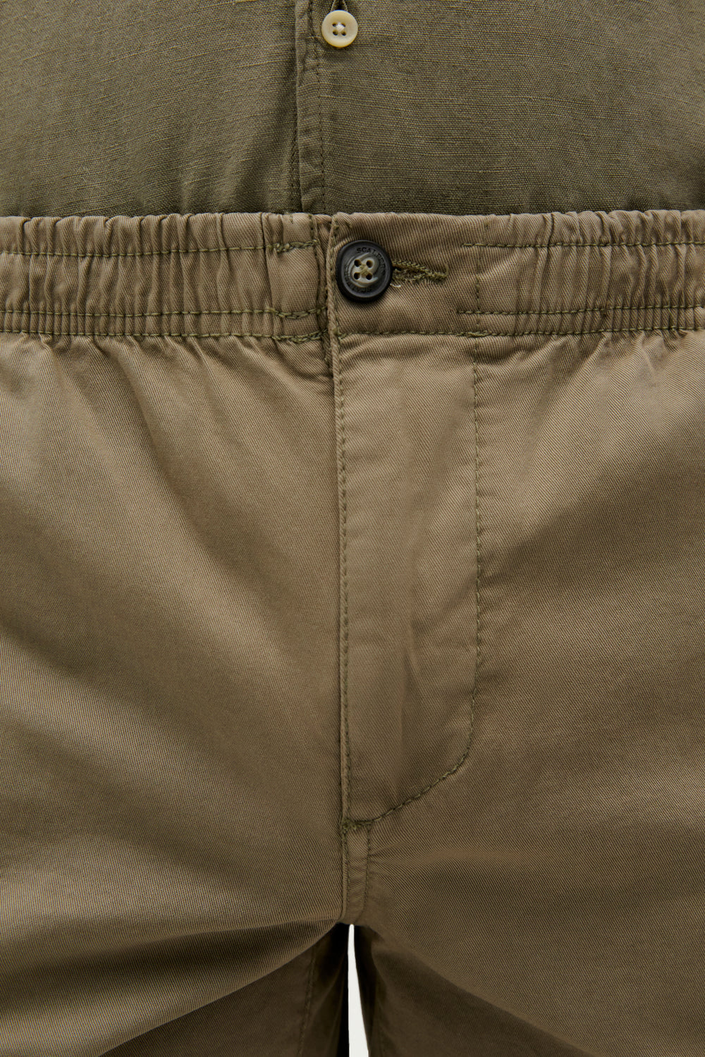 Bermuda confeccionada en Algodón Orgánico. Bolsillos laterales. Bolsillos en espalda con cierre por abotonadura. Cierre en frontal por cremallera y botón. Detalle de logo en espalda.