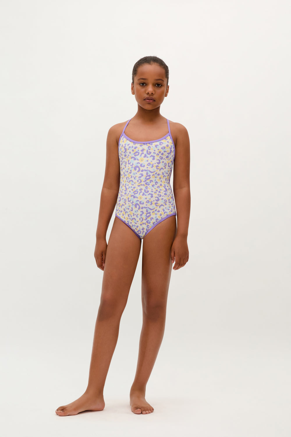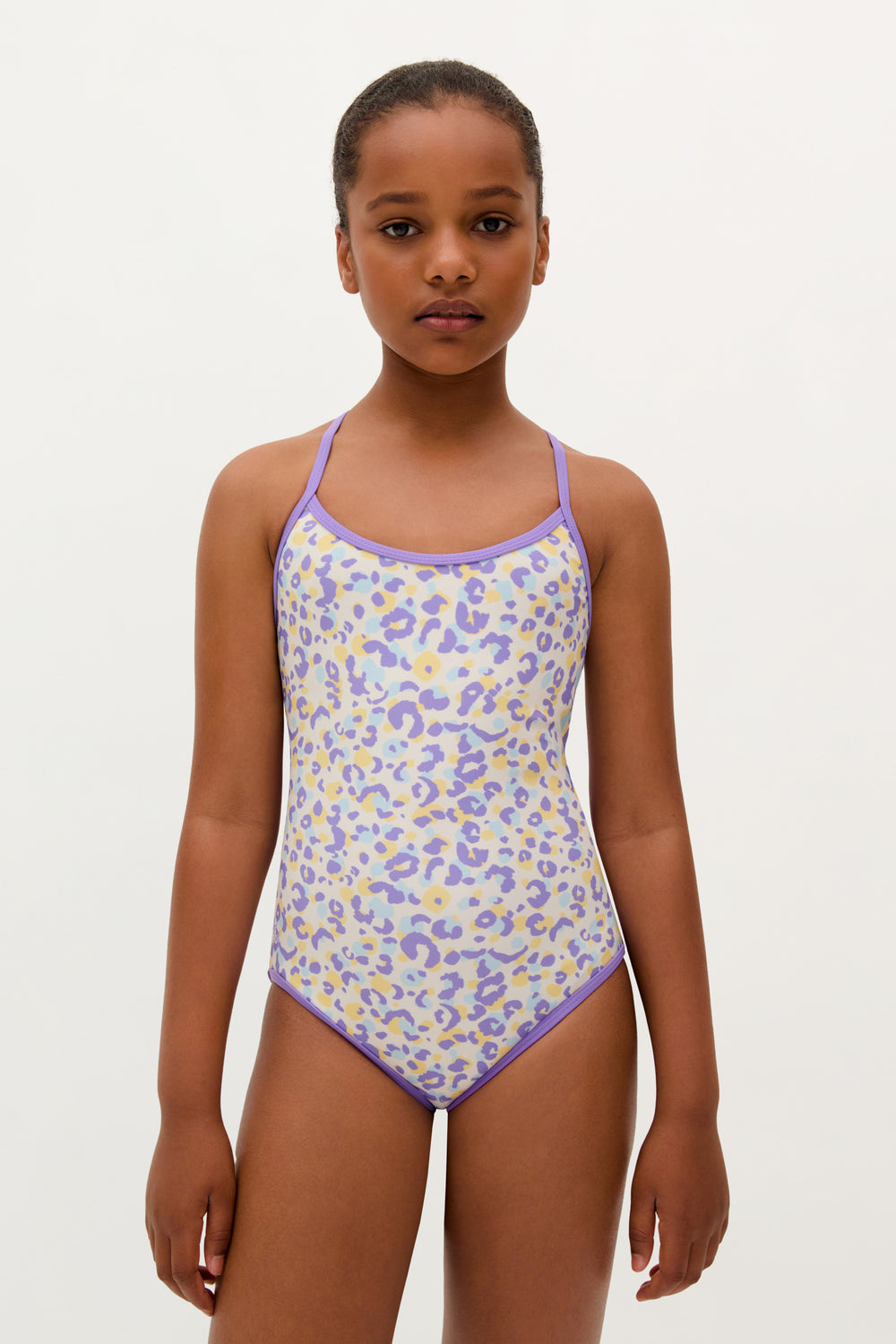 Bañador con estampado de leopardo. Cuello redondo y tirantes.
