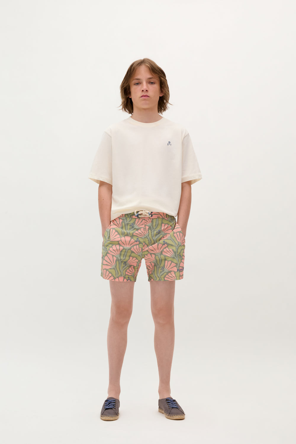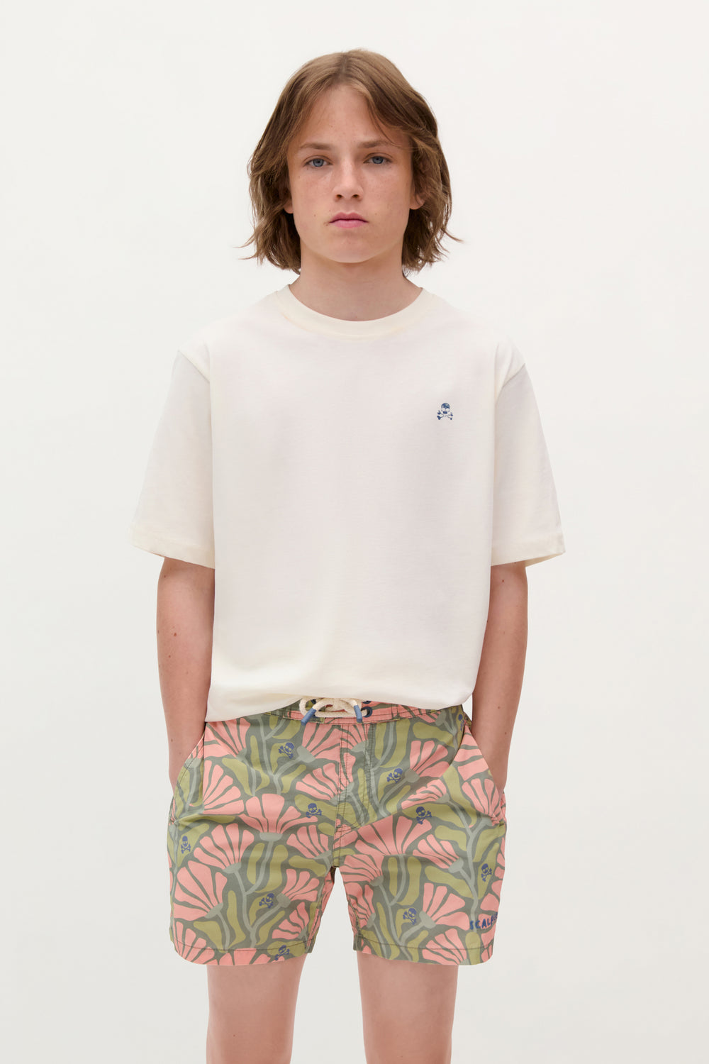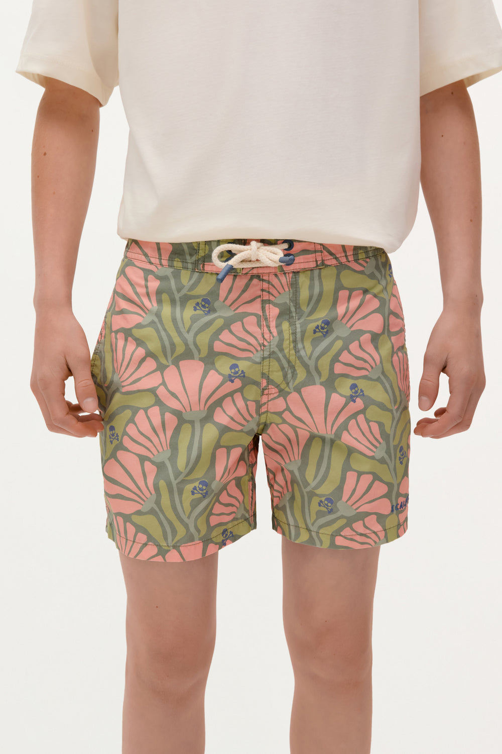 Bañador con cinturilla elástica y cordones ajustables frontal. Bolsillo con detalle vivo en espalda.