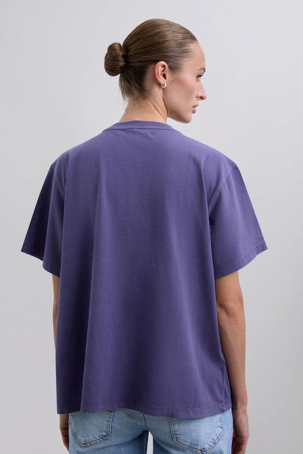 Camiseta confeccionada en algodón 100%. Corte regular fit, cuello redondo y manga corta. Print frontal con logo en pecho.