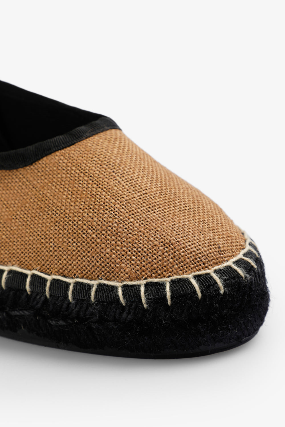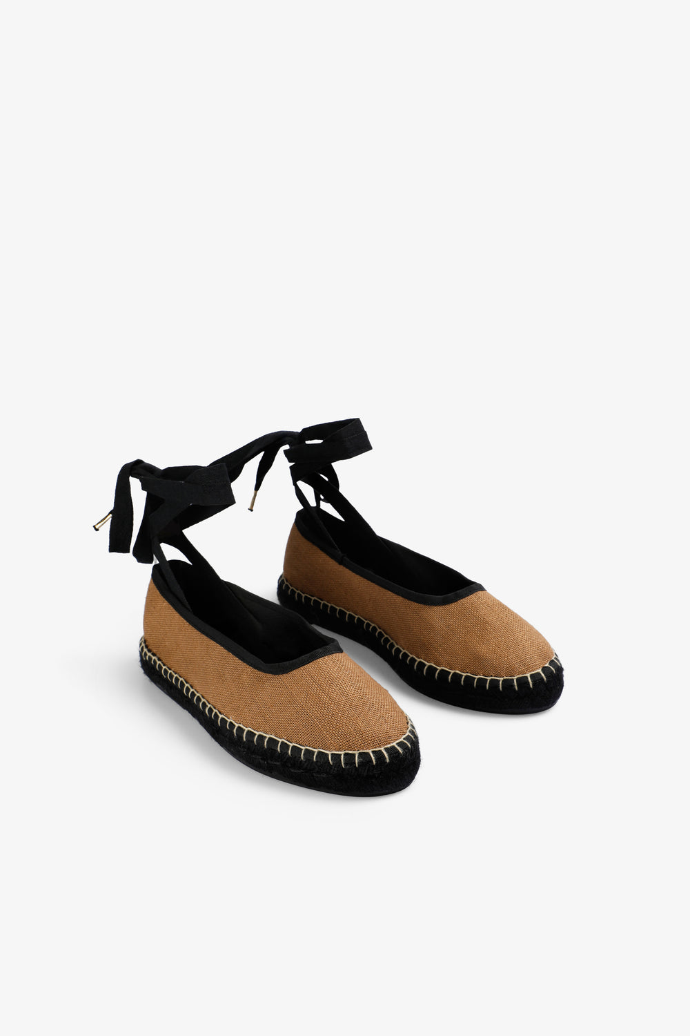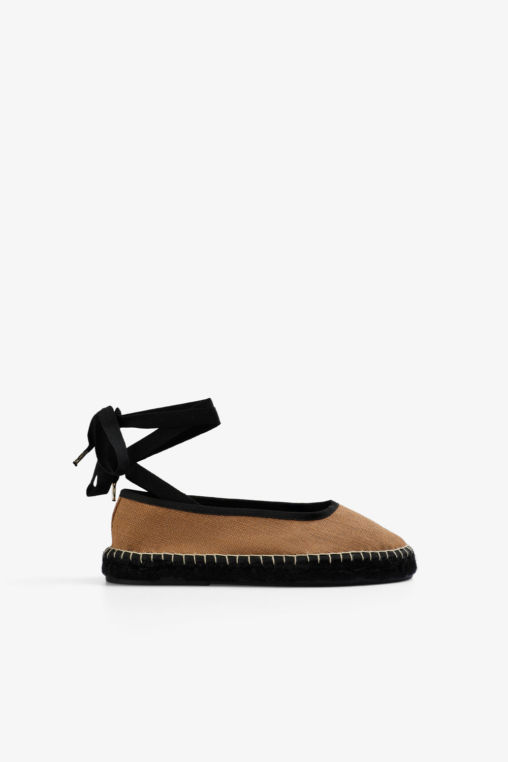 Slipper confeccionada en yute y lino con costuras a contraste y lazada al tobillo. Suela de goma.