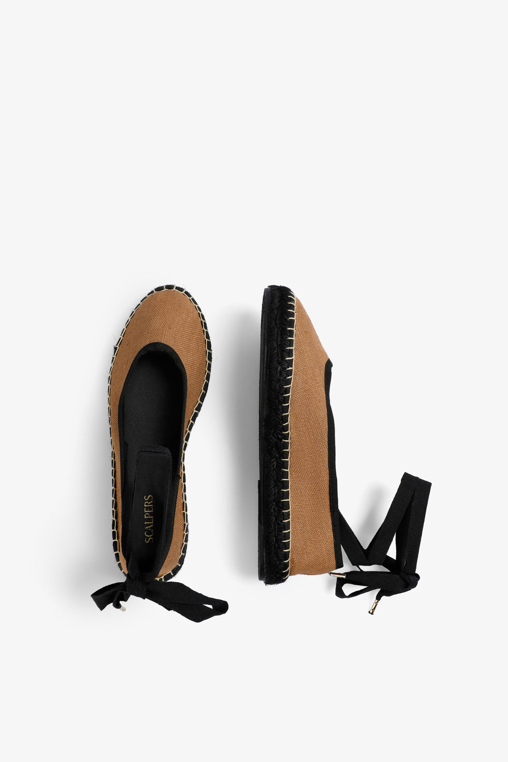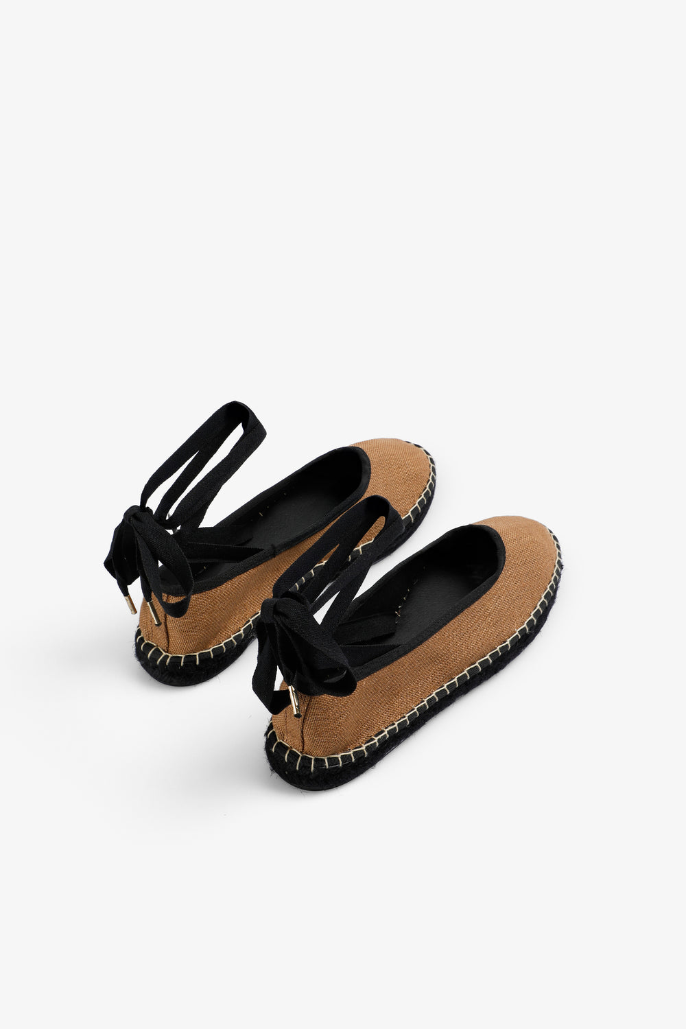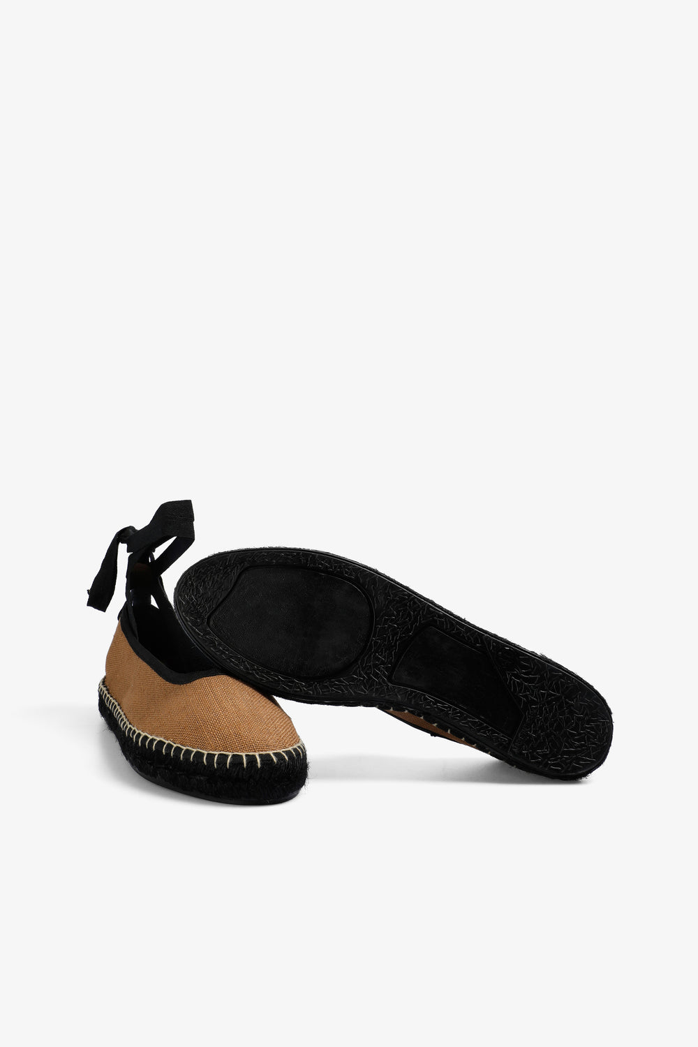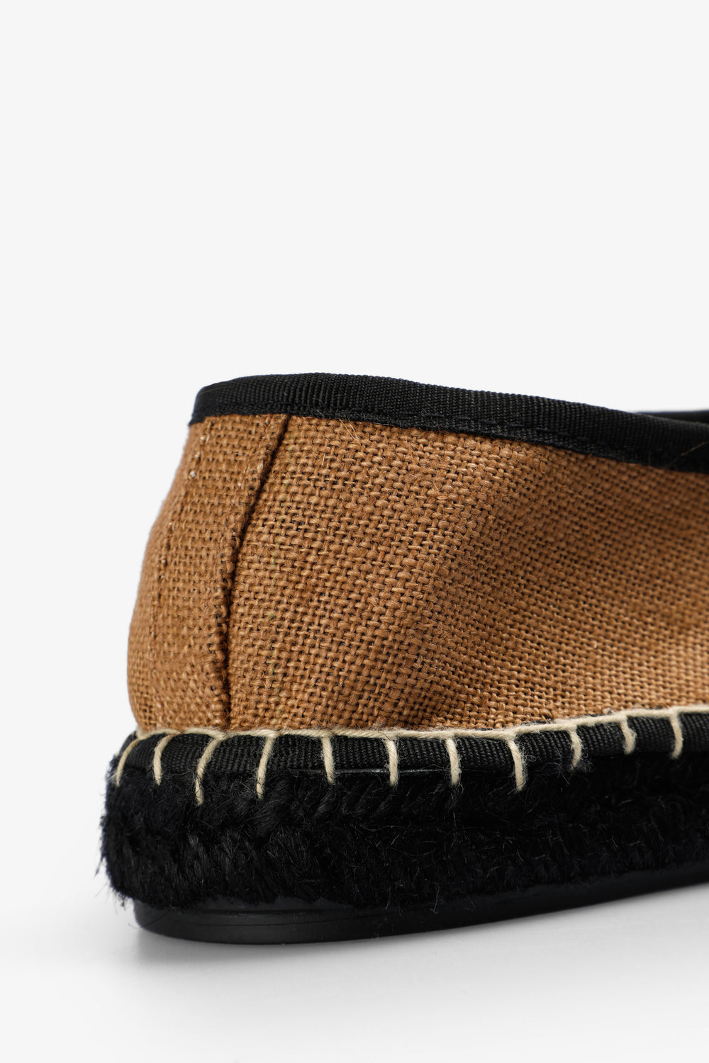 Slipper confeccionada en yute y lino con costuras a contraste y lazada al tobillo. Suela de goma.
