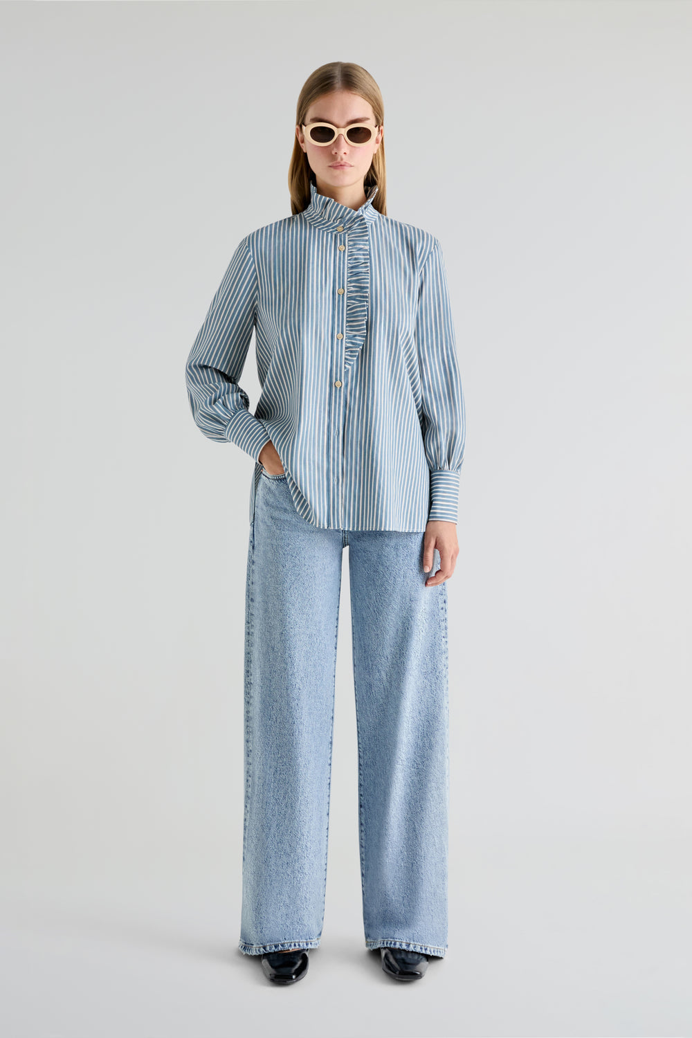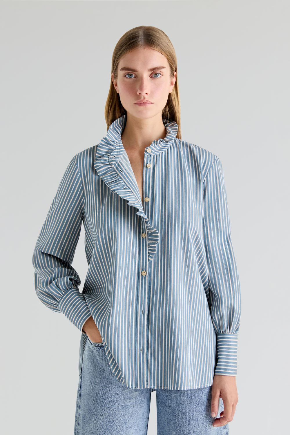 - Puños largos abotonados.