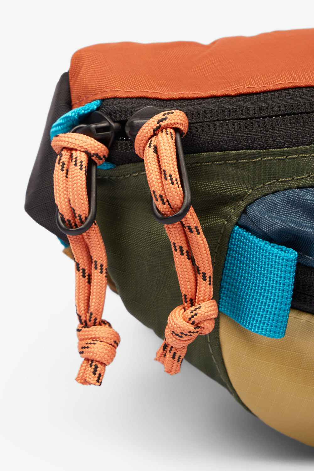 Riñonera Topo Designs confeccionada en nailon reciclado. Presenta dos bolsillos, cremallera YKK de alta resistencia, correa de cinturón de seguridad.