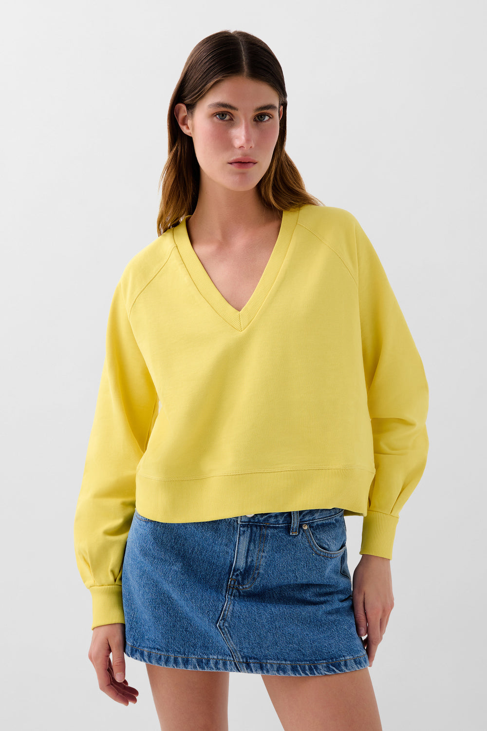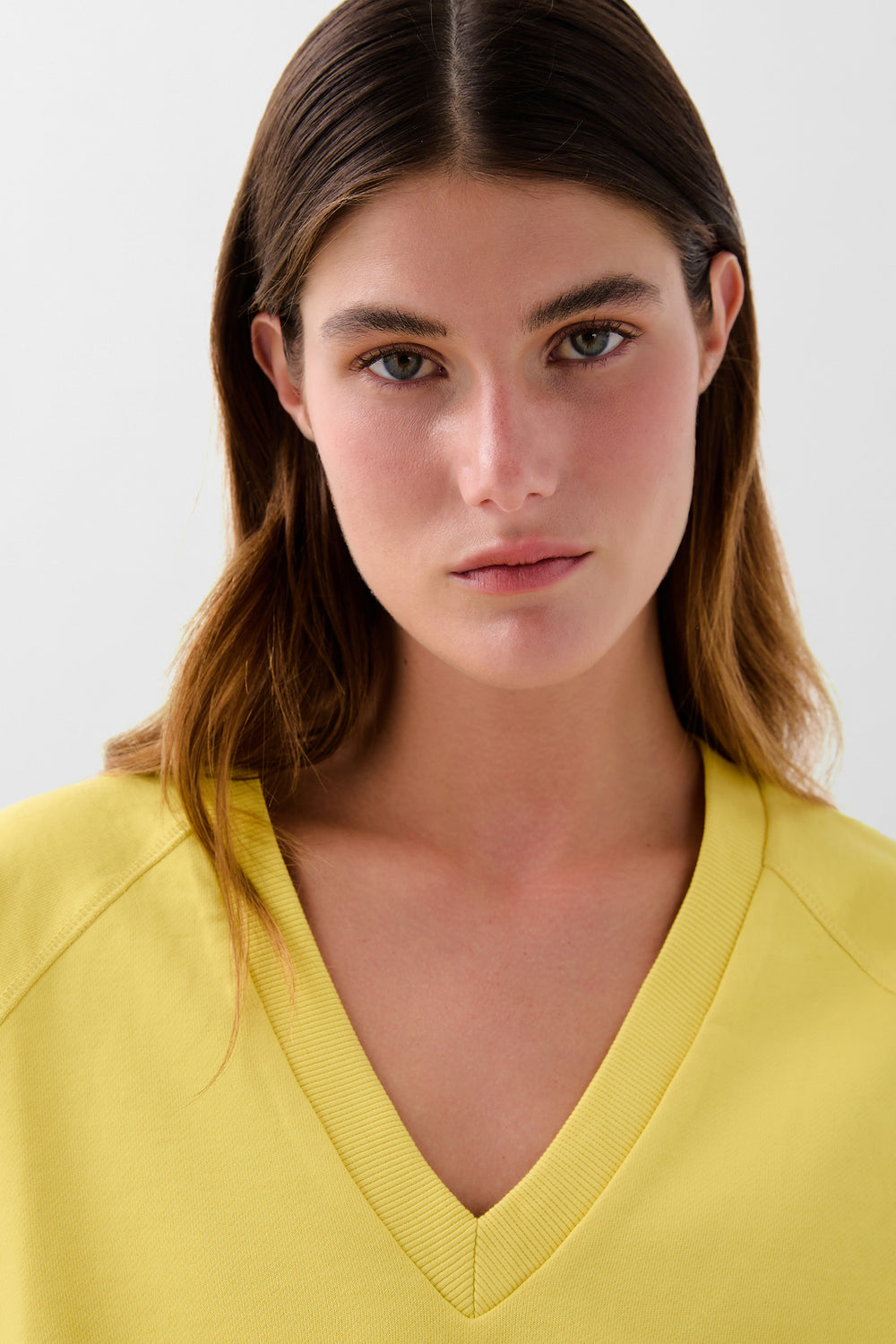 Sudadera confeccionada en algodón 100%. Corte regular fit, escote en V y manga larga acabada en puño con rib.