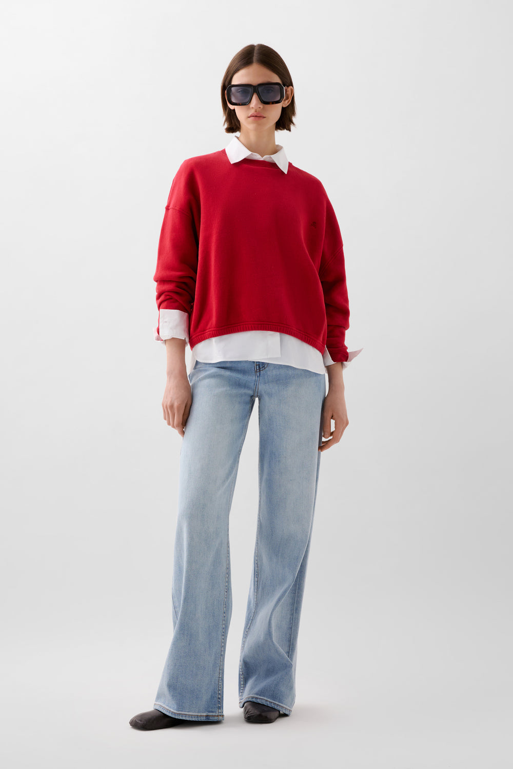 Sudadera confeccionada en 100% algodón BCI. Ligeramente oversize, cuello redondo y manga larga. Detalle de calavera bordada a tono.