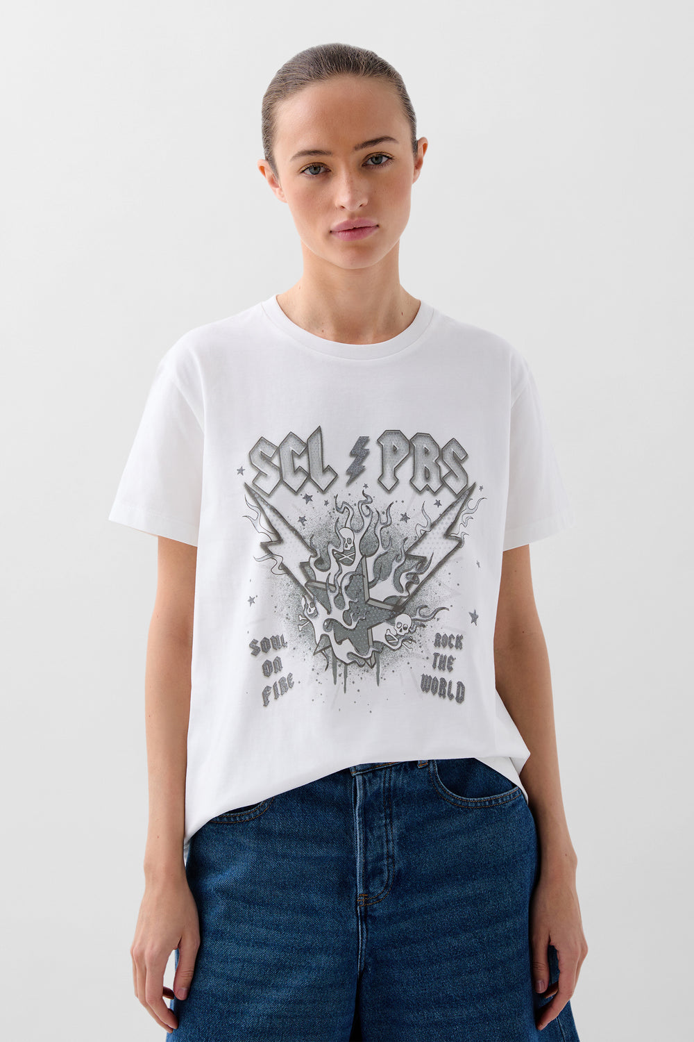 Camiseta confeccionada en 100% algodón BCI. Regular fit, cuello redondo y manga corta. Print frontal con logo.