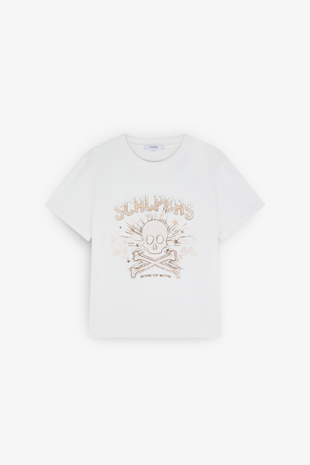 Camiseta confeccionada en 100% algodón BCI. Regular fit, cuello redondo y manga corta. Print frontal de calavera y estrellas.