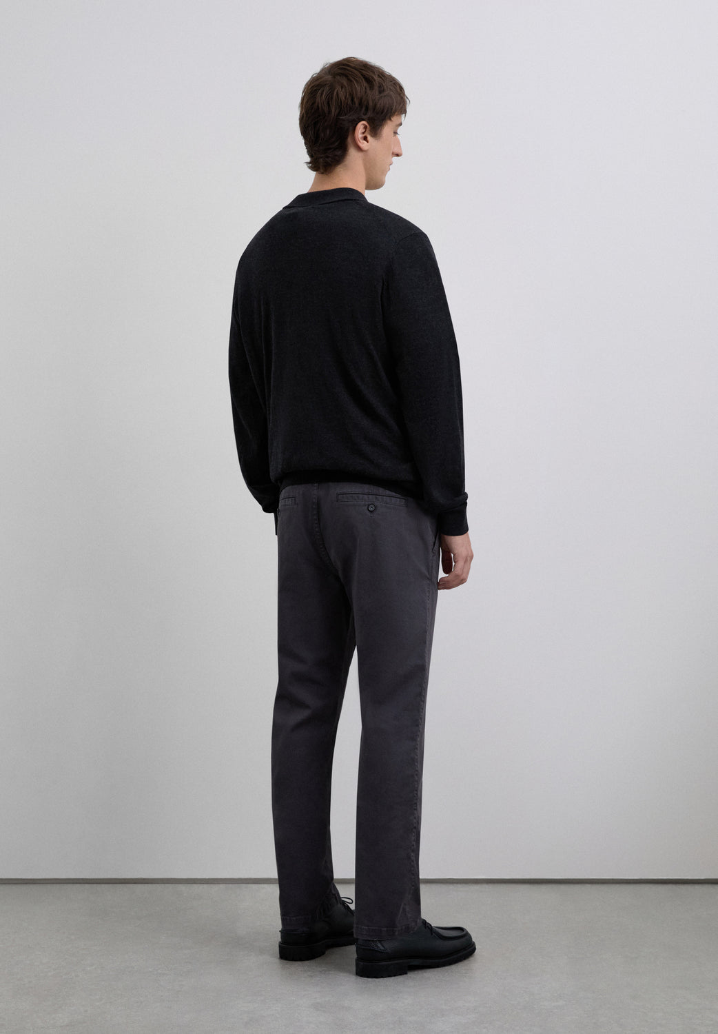 Pantalón chino casual confeccionado en mezcla de algodón ligeramente elástico. Cierre con botón y cremallera . Bolsillos laterales y traseros. Trabillas en cintura. Detalle de etiqueta interior con logo en cintura.