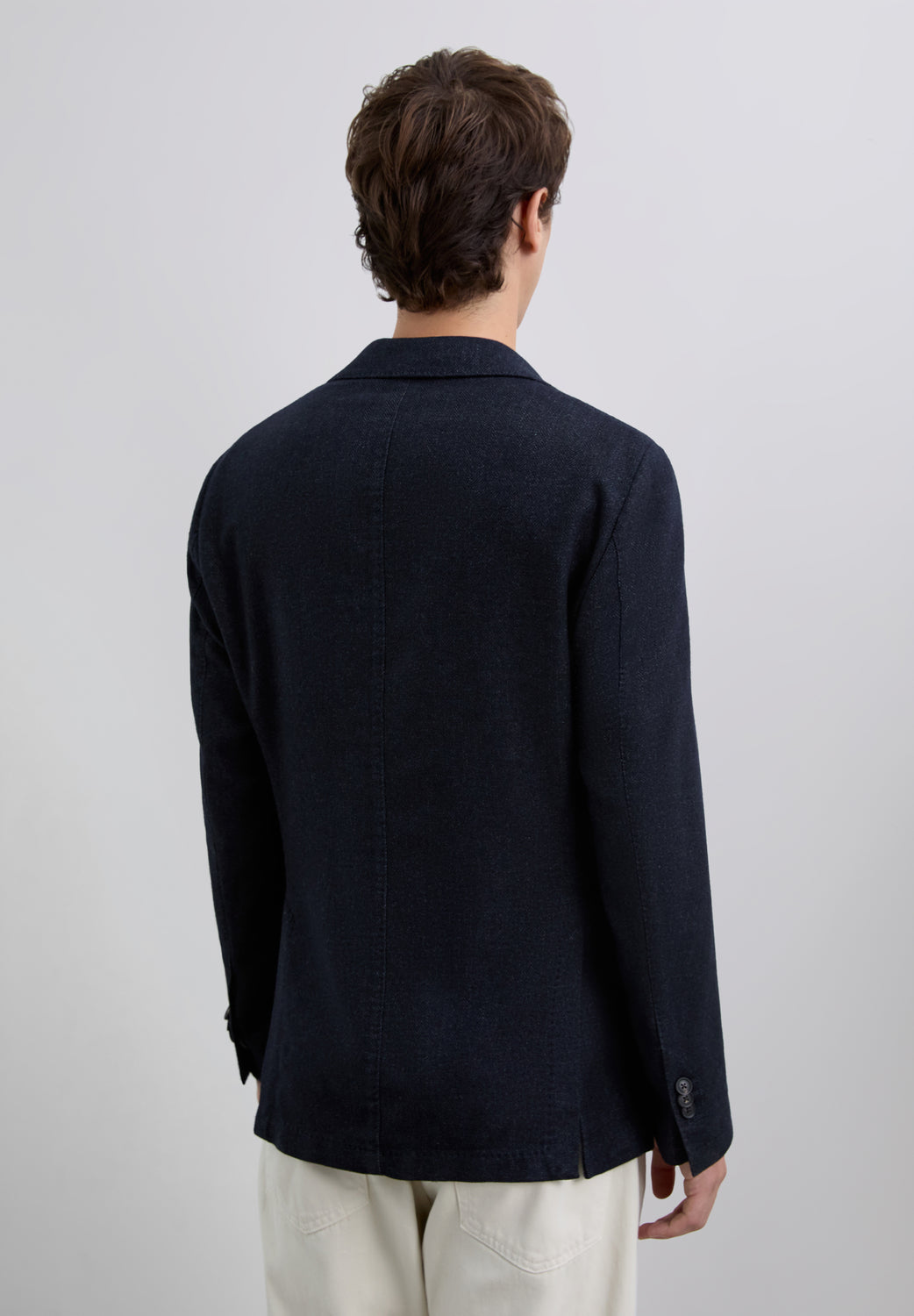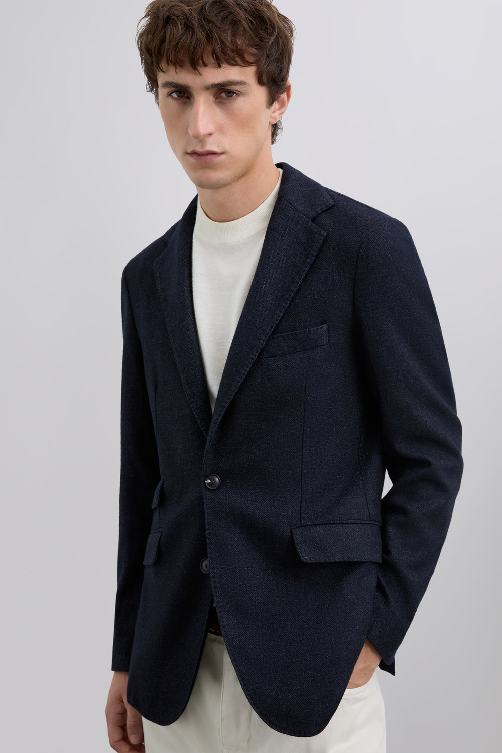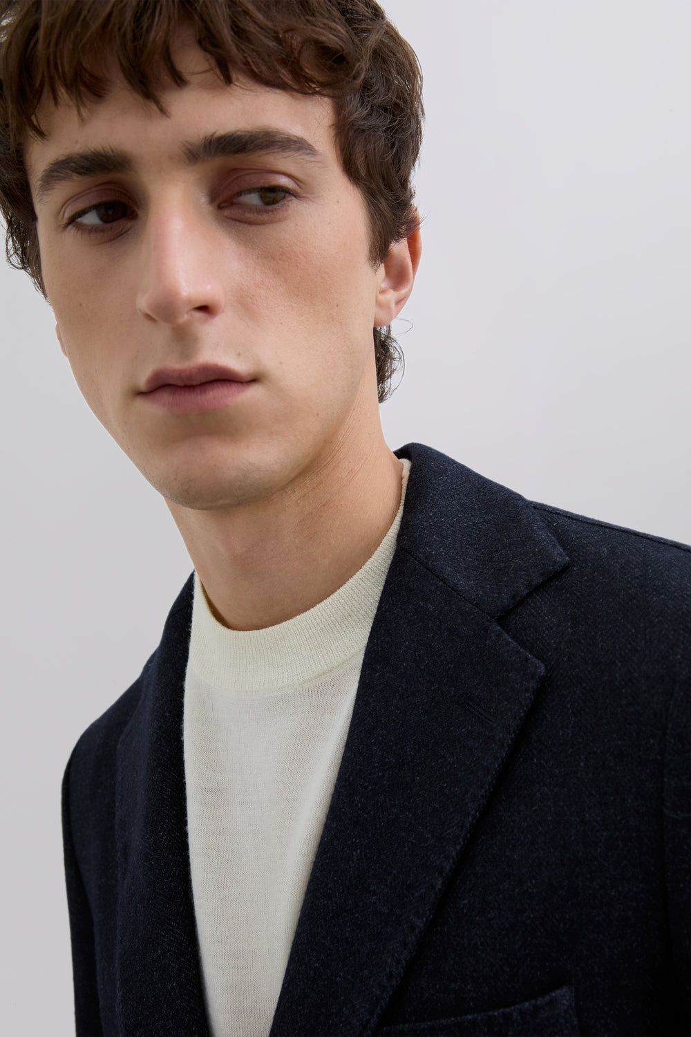Americana confeccionada en lana con tejidos de la casa italiana Bellandi. Diseño en espiga. Tres bolsillos con solapa. Cierre de doble botón. Bolsillo de pecho con ribete. Manga larga.