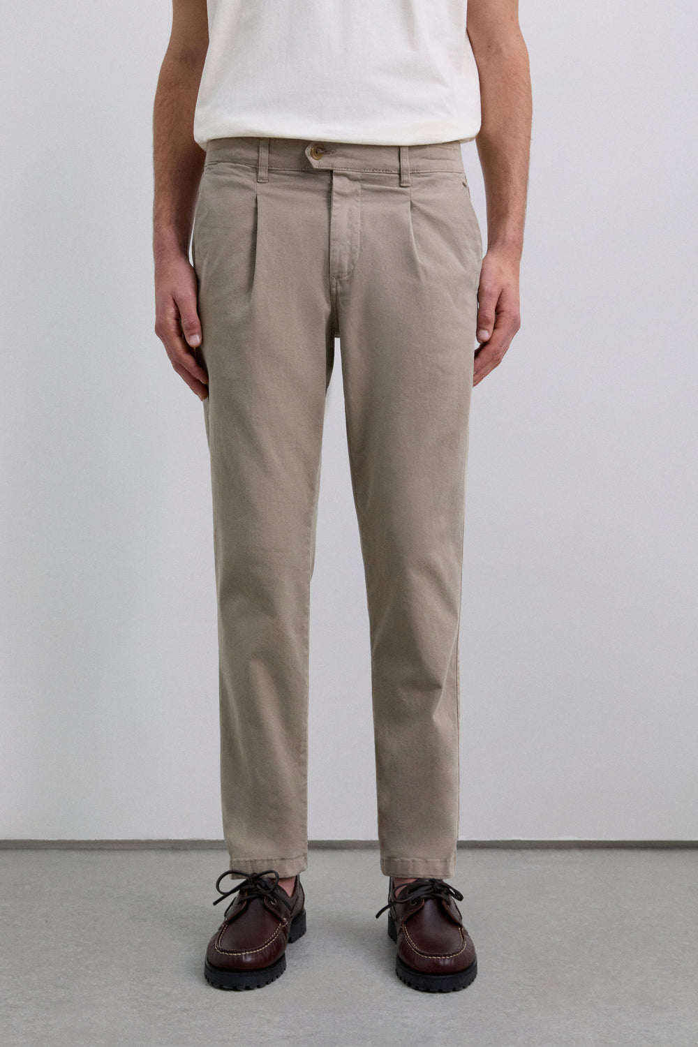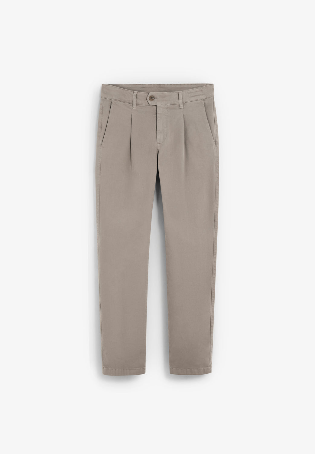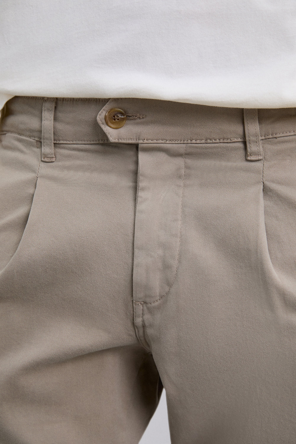Pantalón confeccionado en algodón BCI. Con pinzas. Bolsillos en lateral. Bolsillos en parte trasera. Cierre mediante cremallera y botón frontal.