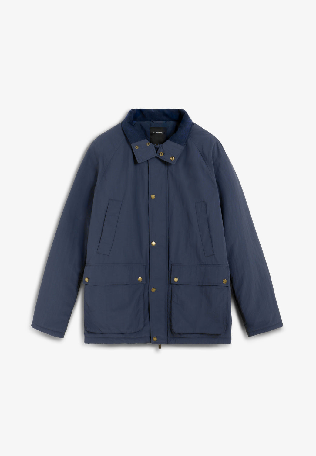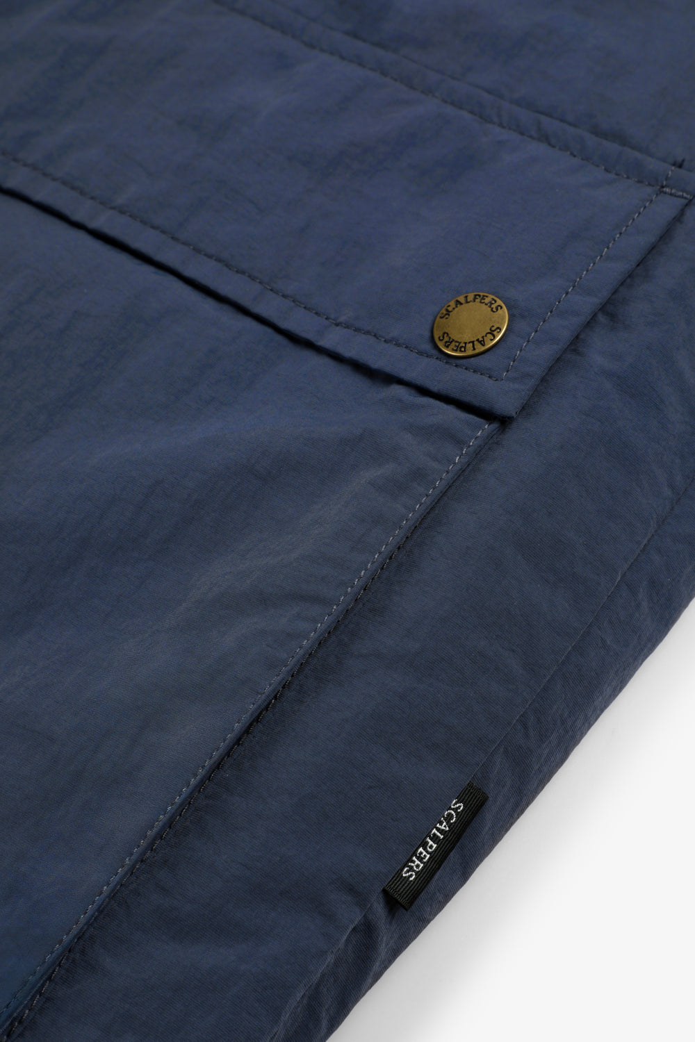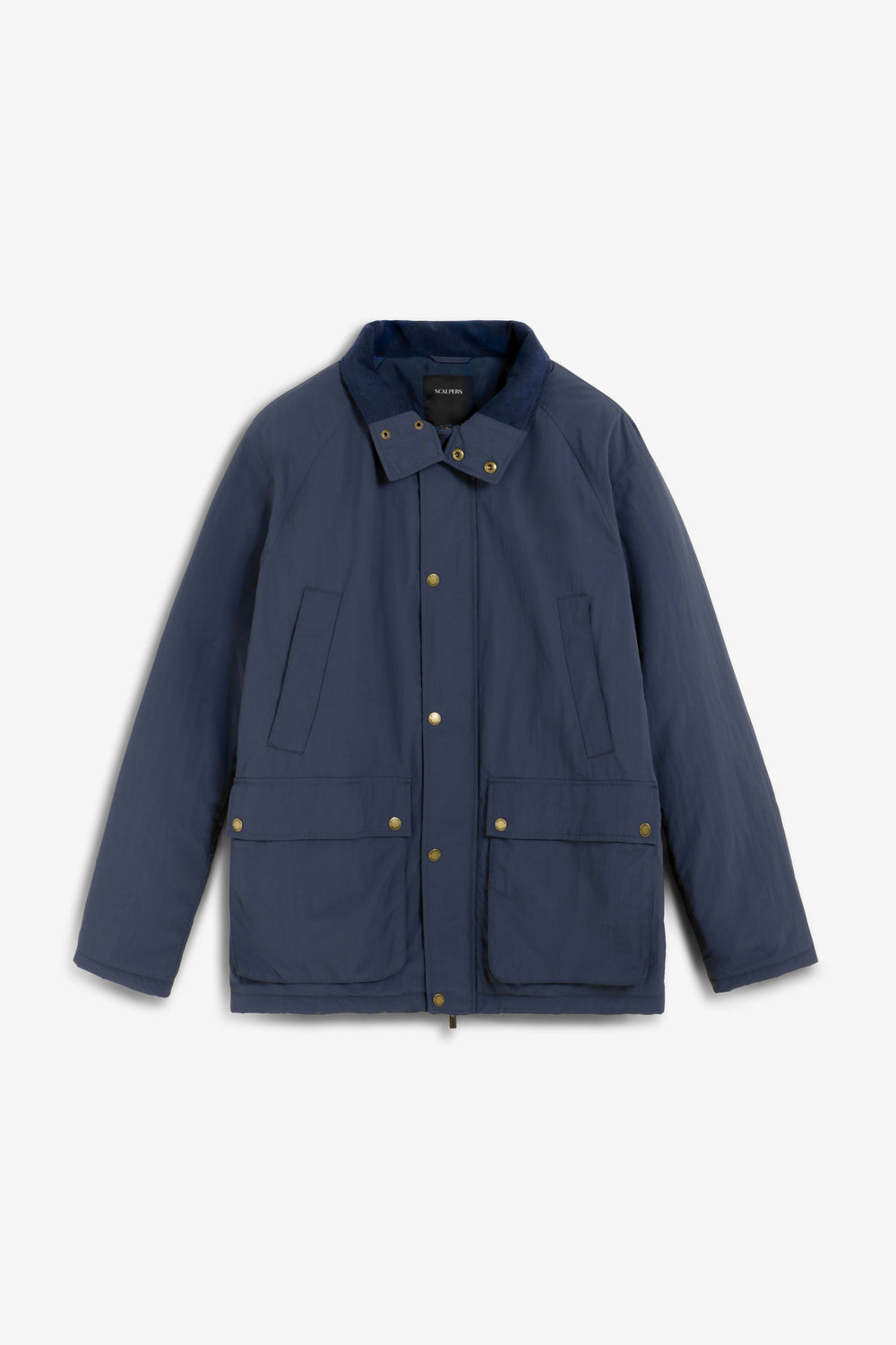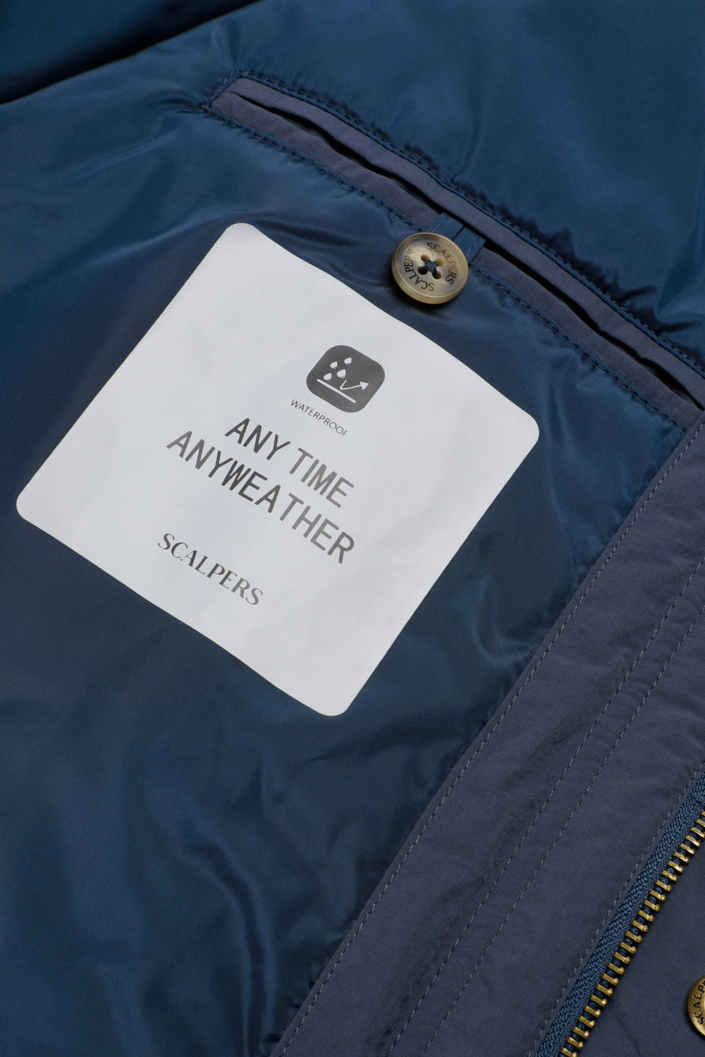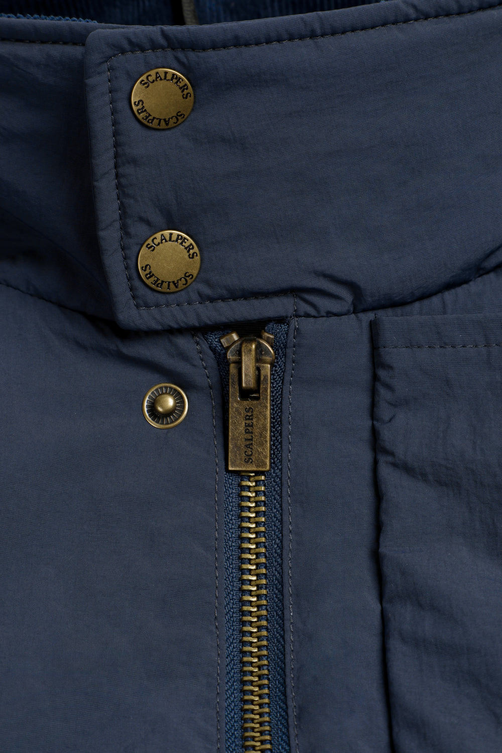 Chaqueta técnica Impermeable con mangas raglán. Cuatro bolsillos frontales. Cierre mediante cremallera y botones a presión. Detalle de etiqueta Scalpers en el lateral y tirador personalizado de Scalpers. Detalle de pana a tono en el interior del cuello.