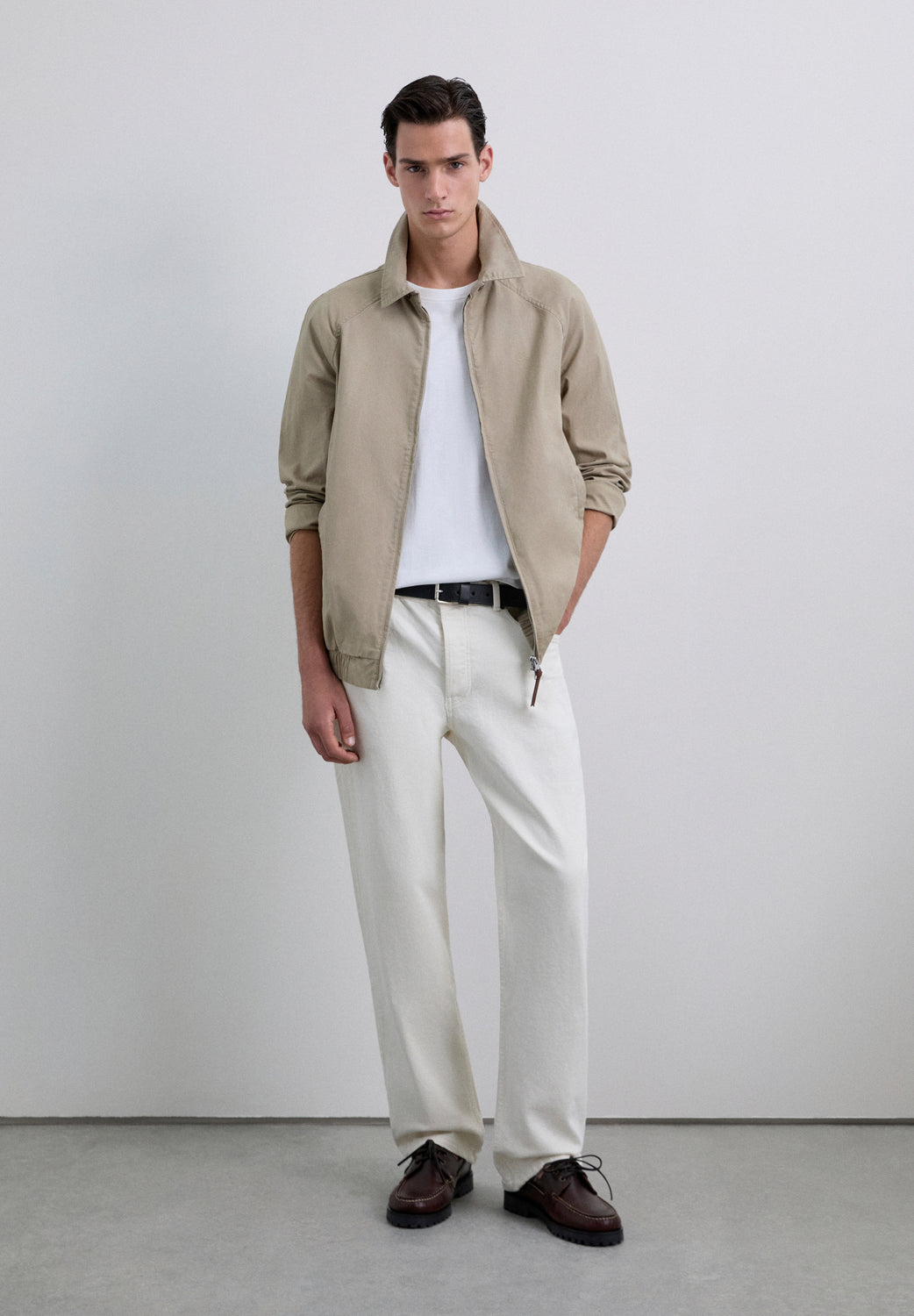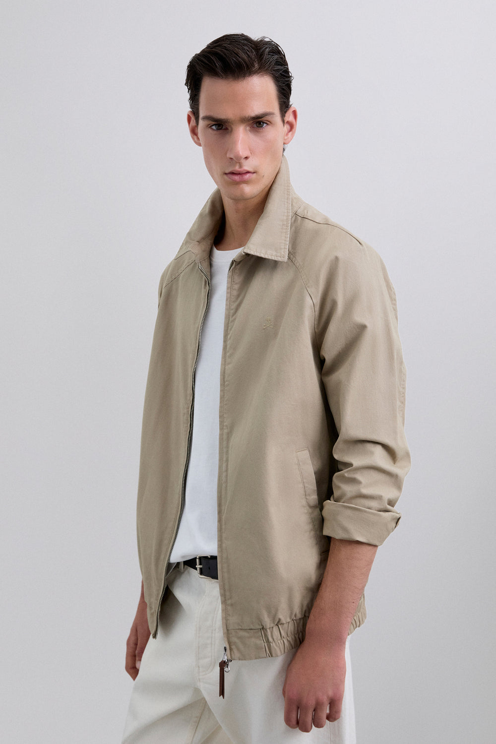 Chaqueta Bomber confeccionada en 100% algodón BCI. Forro interior. Corte regular. Cremallera de dos vías. Dos bolsillos frontales. Puños ajustables mediante botón. Cintura ligeramente elástica. Calavera bordada a tono.