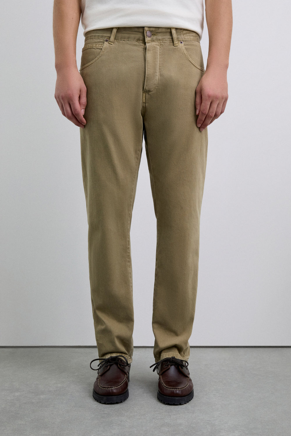 Pantalón confeccionado en 100% algodón. Corte recto. Cierre mediante botón y cremallera. Bolsillos laterales y traseros. Trabillas en cintura.