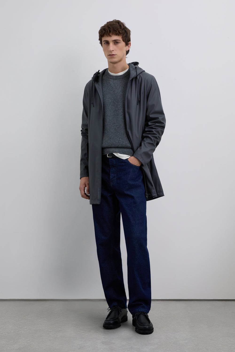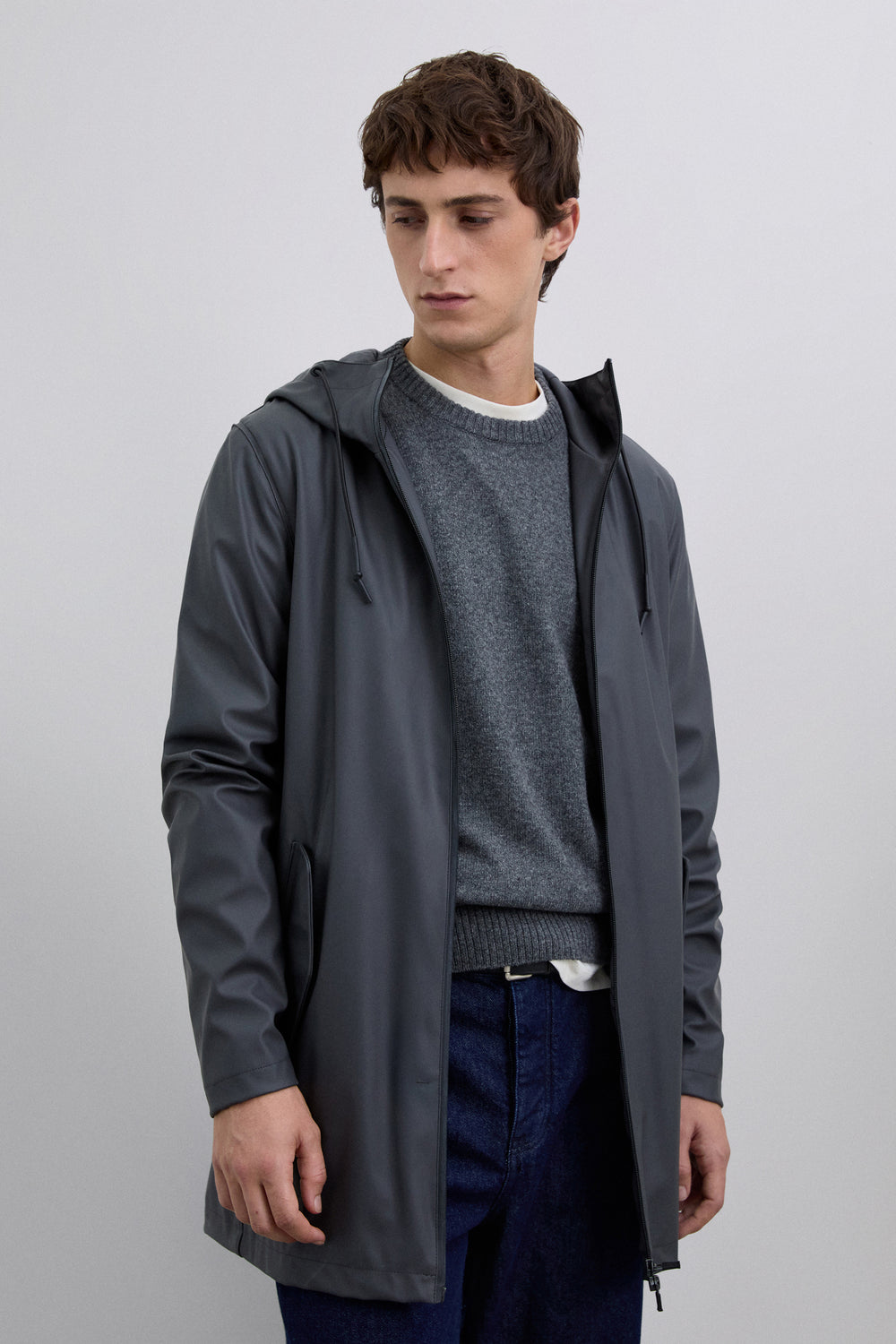 Chaqueta impermeable. Cuello con capucha ajustable con cordón. Cierre con cremallera de doble carro termosellada. Manga larga. Bolsillos laterales con tapeta y snap. Detalle logo engomado a contraste en frontal inferior y calavera a tono en manga.