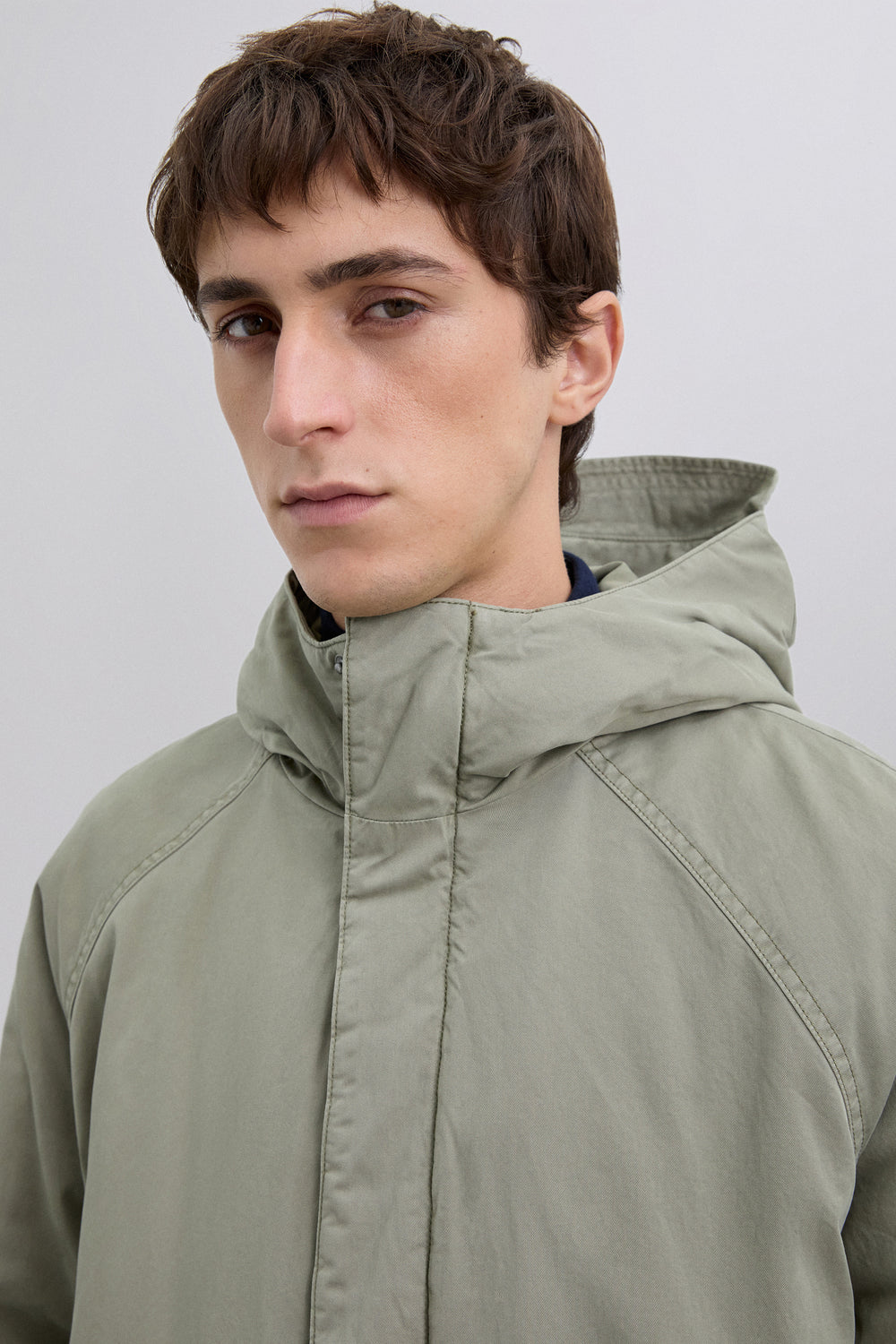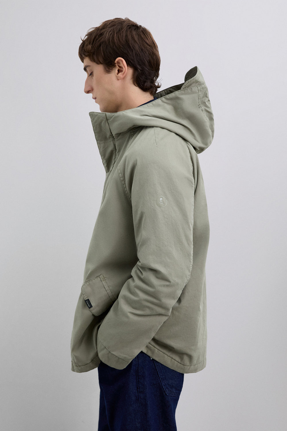 Parka confeccionada en algodón 100% orgánico. Bolsillos con solapa y cierres ocultos. Ajuste de puños con botón a presión. Capucha integrada. Ligeramente acolchada. Estampado en alta densidad con logo en la manga. Manga raglán. Cierre con cremallera de doble tirador.