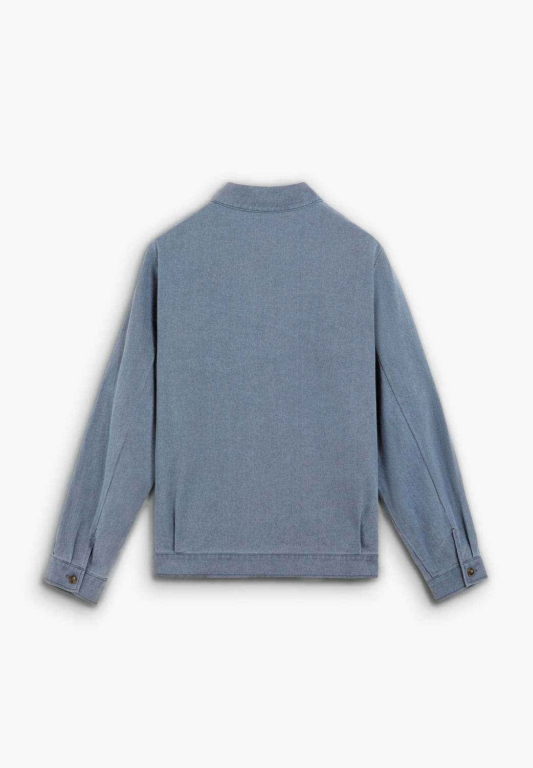 Cazadora confeccionada en 100% algodón reciclado. Efecto lavado. Dos bolsillos de solapa en el pecho con cierre de botón. Cierre delantero mediante abotonadura oculta.