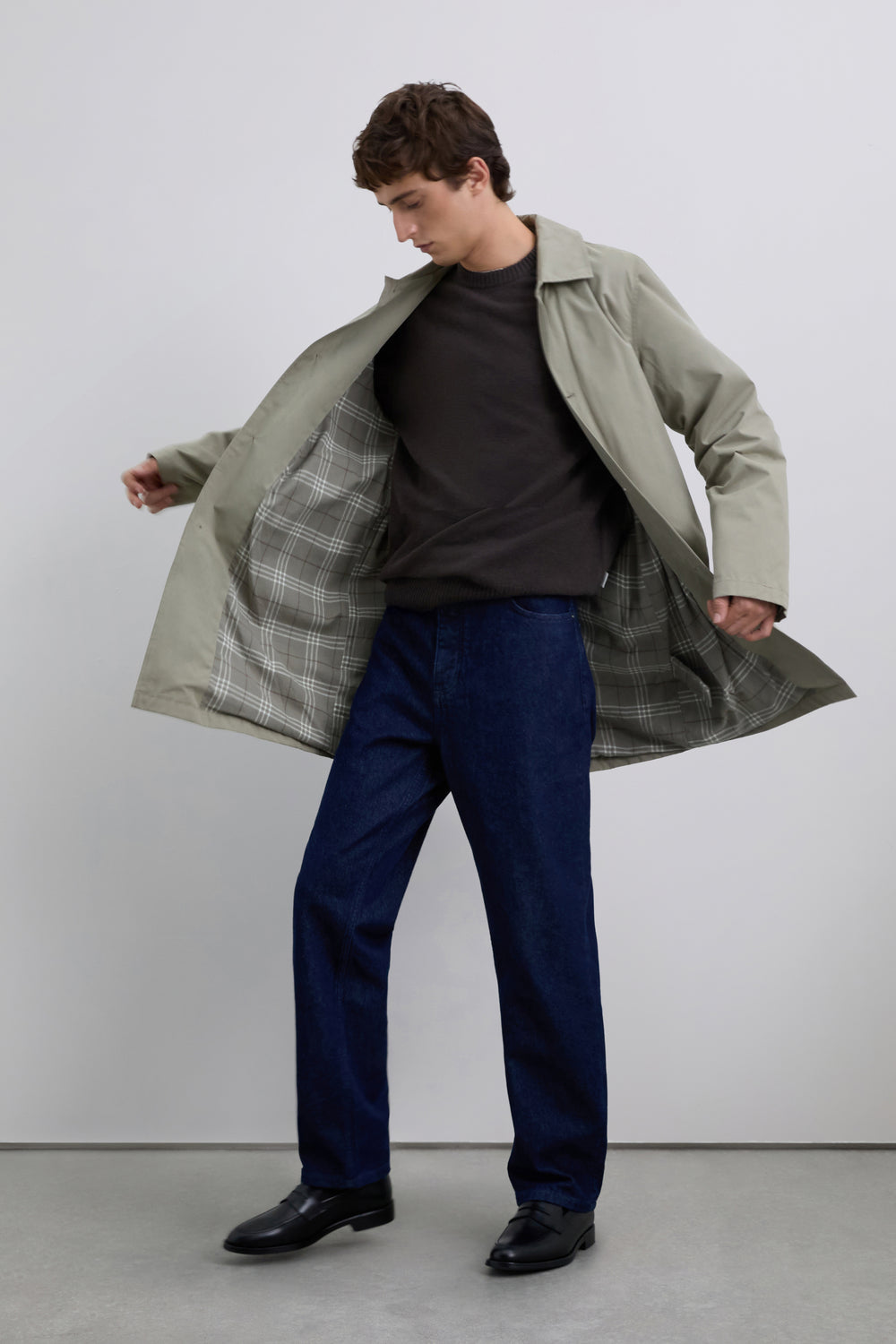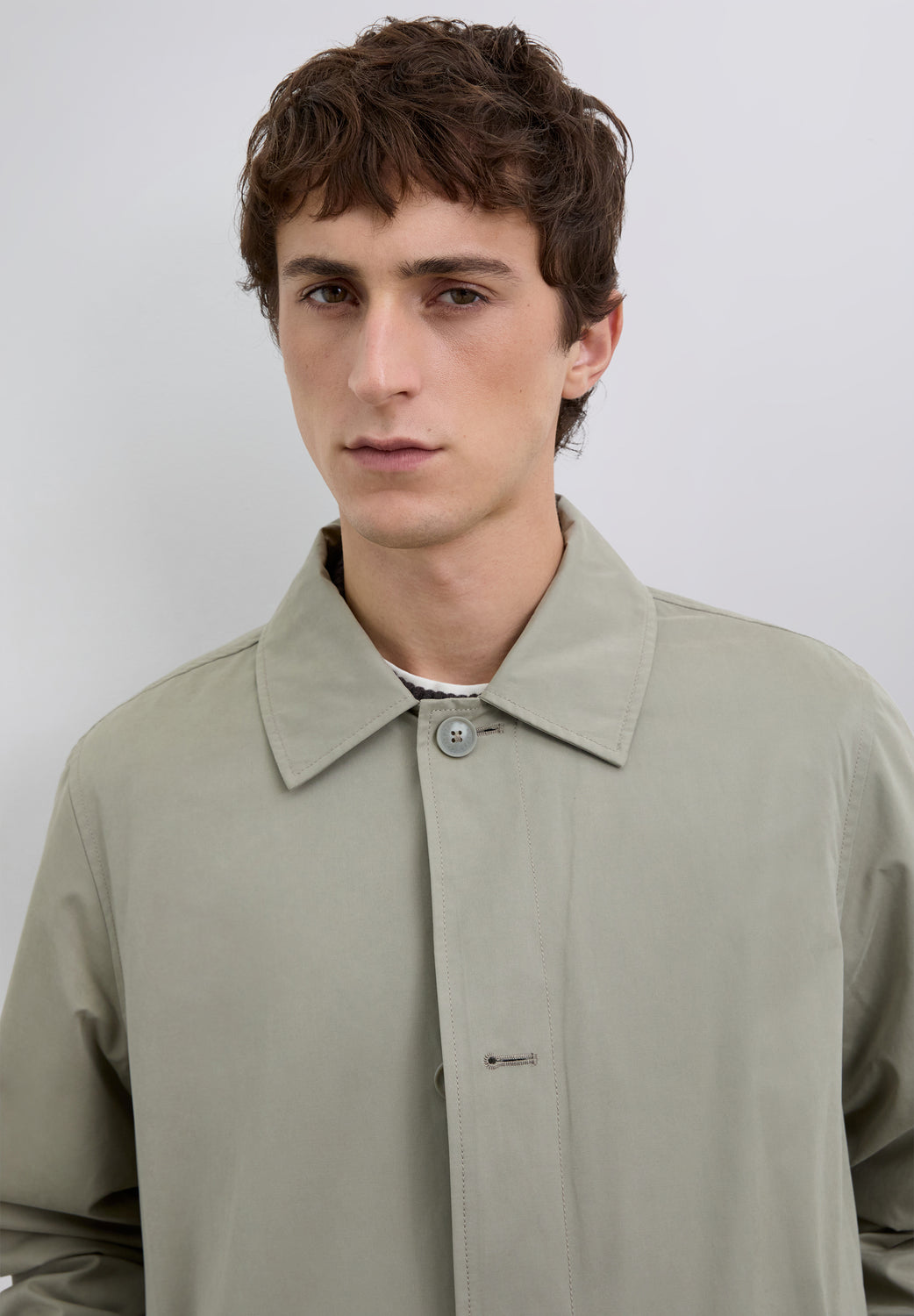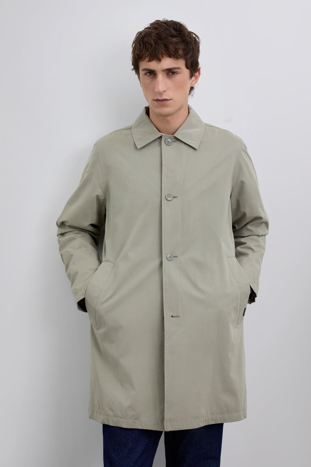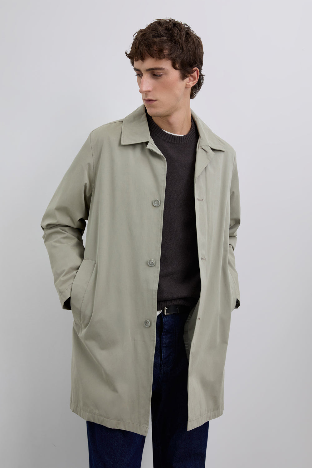 Gabardina con cierre de botones en la parte delantera. Cuello de camisa. Dos bolsillos laterales. Interior forrado con motivo cuadros. Detalle de etiqueta con logo en bolsillo. Print de calavera en manga a tono.