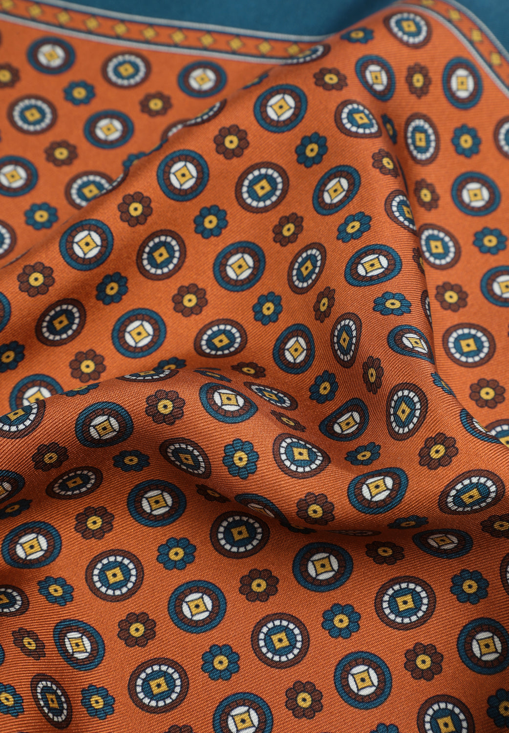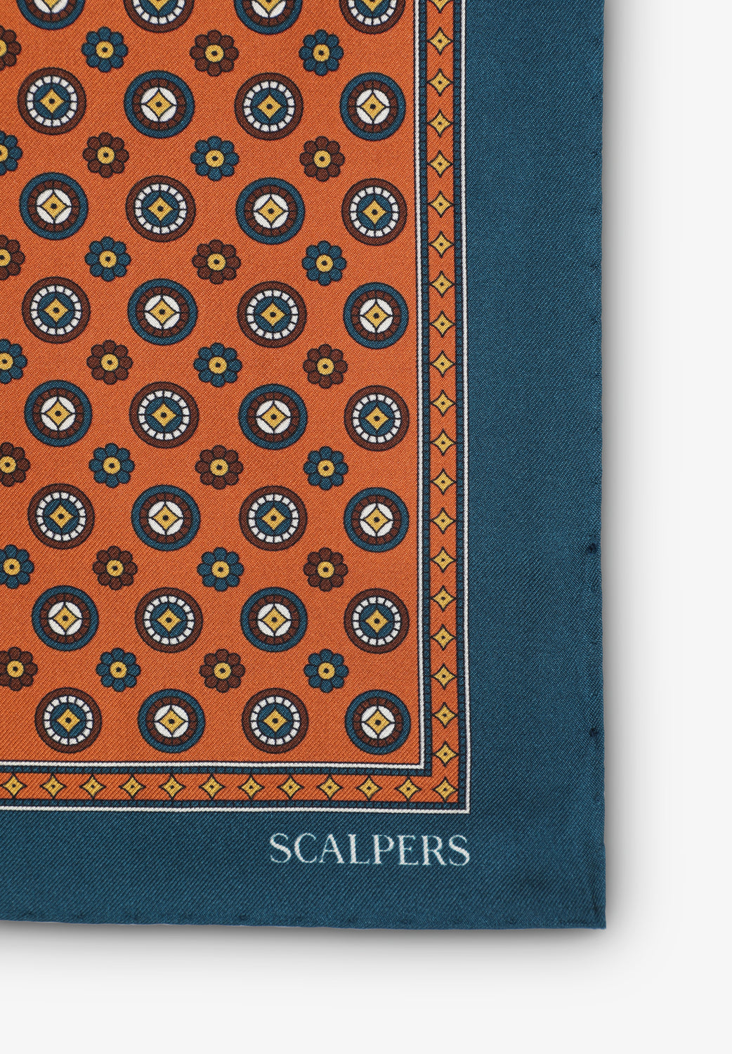 Pañuelo confeccionado 100% en seda. Estampado de flores. Detalle de logo a contraste.